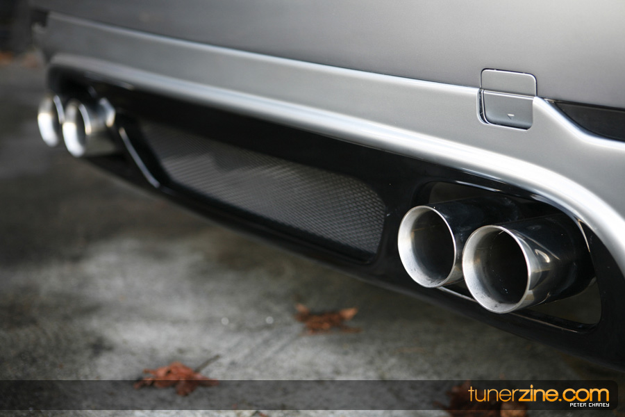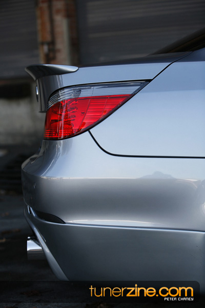 Complementing the beautiful wheel setup on the exterior is a full Rieger body kit. The front bumper was custom fitted to match the OEM M5 fenders. AC Schnitzer styling plays their role in the rear with their roof and trunk spoiler. The rest of the M5 transformation was done with the fenders and grilles.