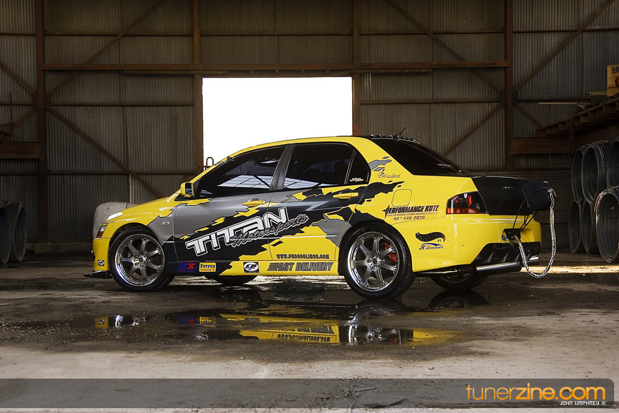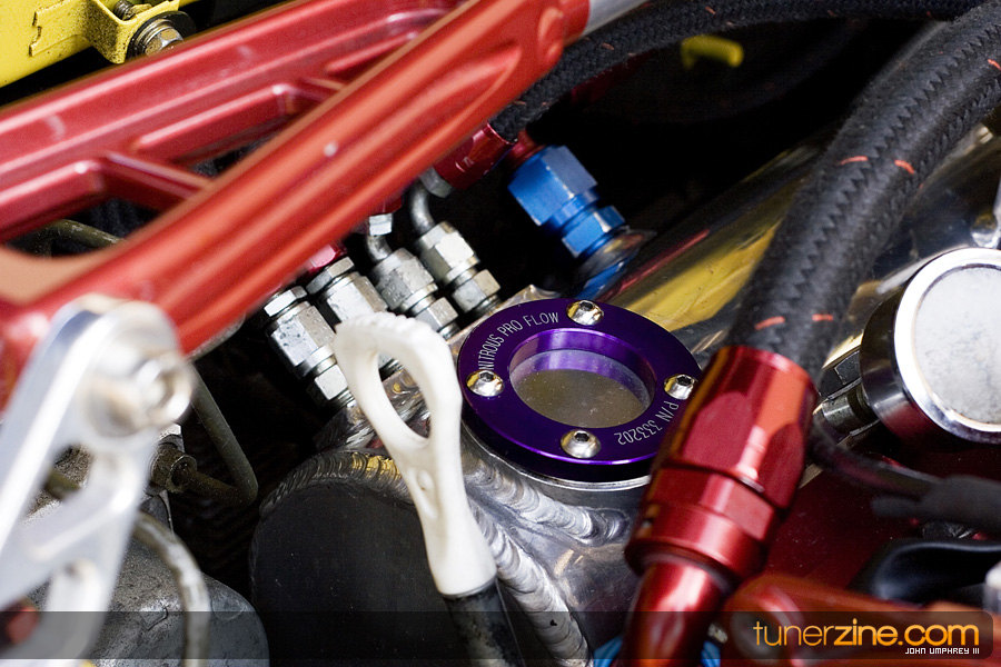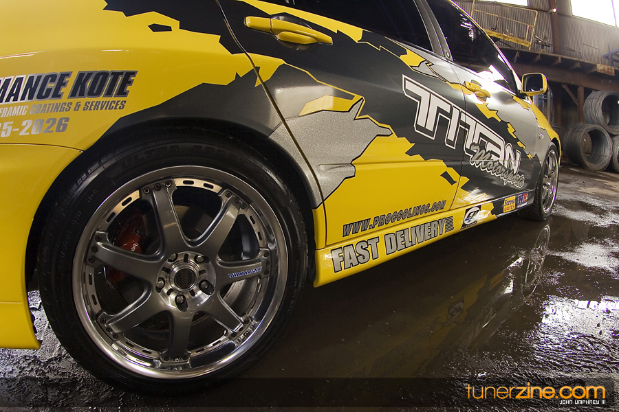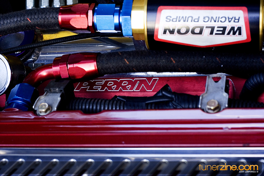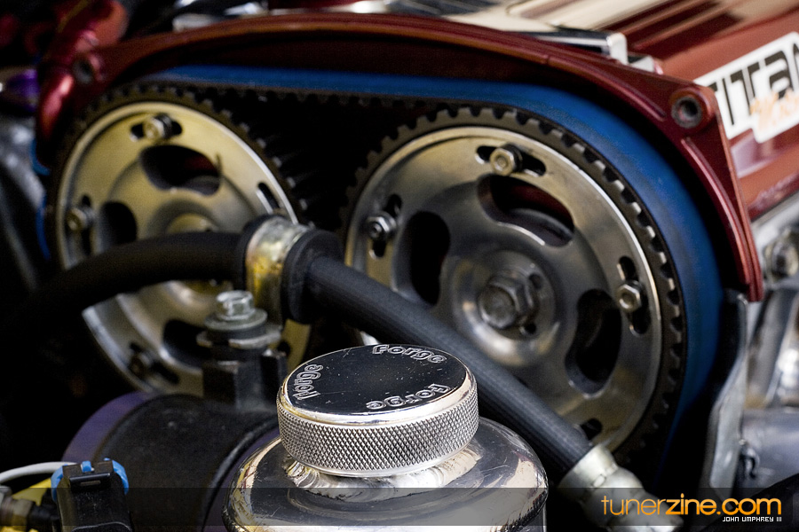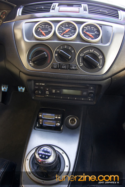 This 4G63 has been completely overhauled thanks to some of Central Florida’s best tuners. Gato Performance finely tuned the performance with their custom fabrication work. Starting with a turbo manifold, 3.5-inch downpipe front mount intercooler and custom intake, Gato Performance prepared this Evo to become a street and track monster. A GT40-R Precision Turbo provides plenty of boost, while the 4G63 received its fair share of rebuild goods with Ferra valves and valve springs, Cosworth custom camshafts and Fidanza cam gears. All of the fuel has been provided by Titan Motorsports’ fuel surge tank, Weldon fuel pump and Walbro fuel pump. Throw on a beefed up transmission from TRE and a 100 shot of NX nitrous and this thing is ready to light up all four wheels with a vengeance. Tuning the car is an AEM EMS.