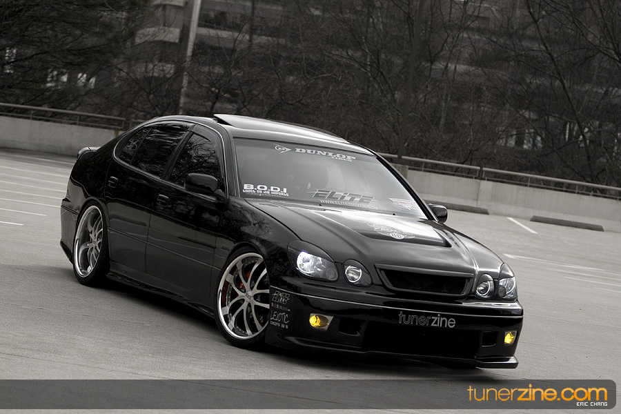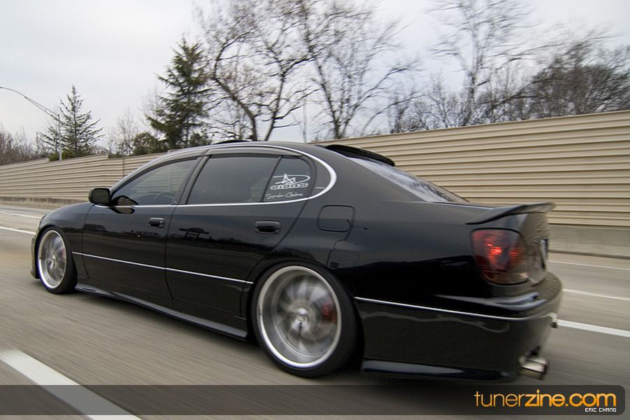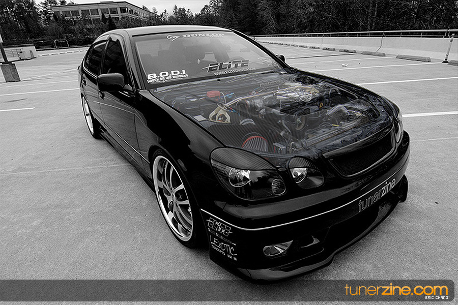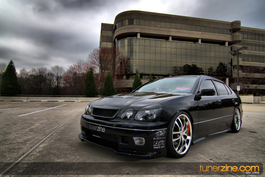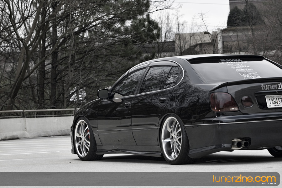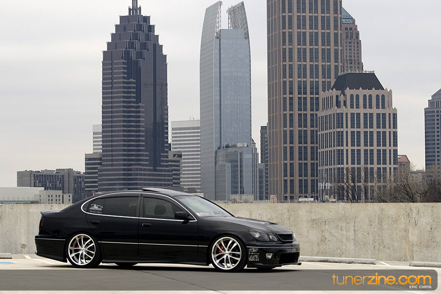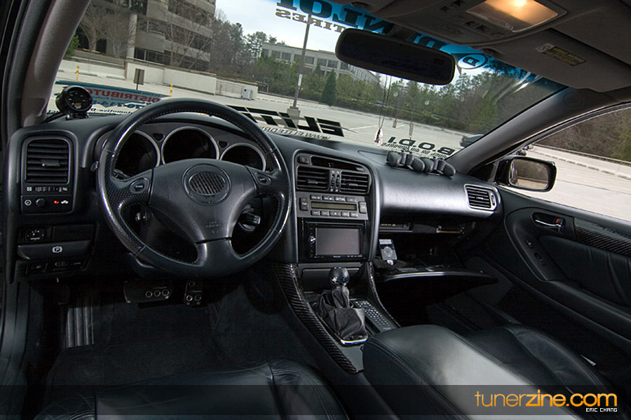 Tony Nguyen started with his GS300 with a couple things in mind: to make a presence at the shows and prowl the streets in style that few can imitate. The exterior of his GS300 has been completely revamped making his GS300 a true one of a kind. A Revolution Modified style front bumper and rear bumper along with VIS Racing side skirts starts the customizing portion of the exterior on his wicked sedan. Then came the fun with all the carbon fiber goods and thus the nickname Nguyen has given his car: CarbonGS. VIS’ carbon fiber DV vented hood along with a Junction Produce replica spoiler that’s been carbon wrapped in the center are the first things to catch our eyes. A UEGO roof spoiler has been wrapped with carbon fiber and installed along with carbon fiber b-pillars and a carbon fiber grille. Nguyen also overhauled all the lighting parts on his GS300 starting with CCFL daytime Demon Eyes, painted black headlight housings and clear turn signals. HIDs were installed along with IS300 fog lamps that were retrofitted for his GS300.