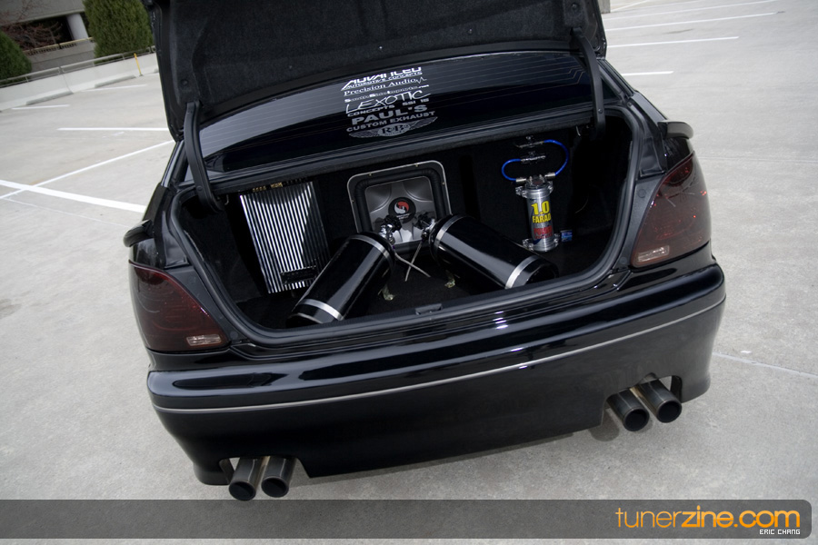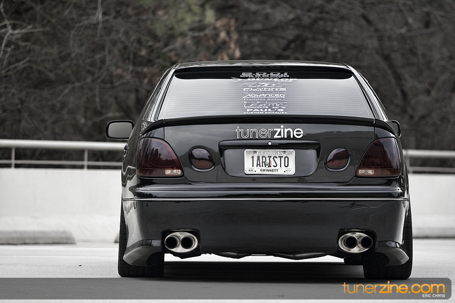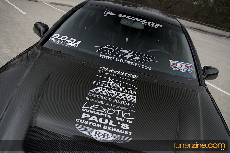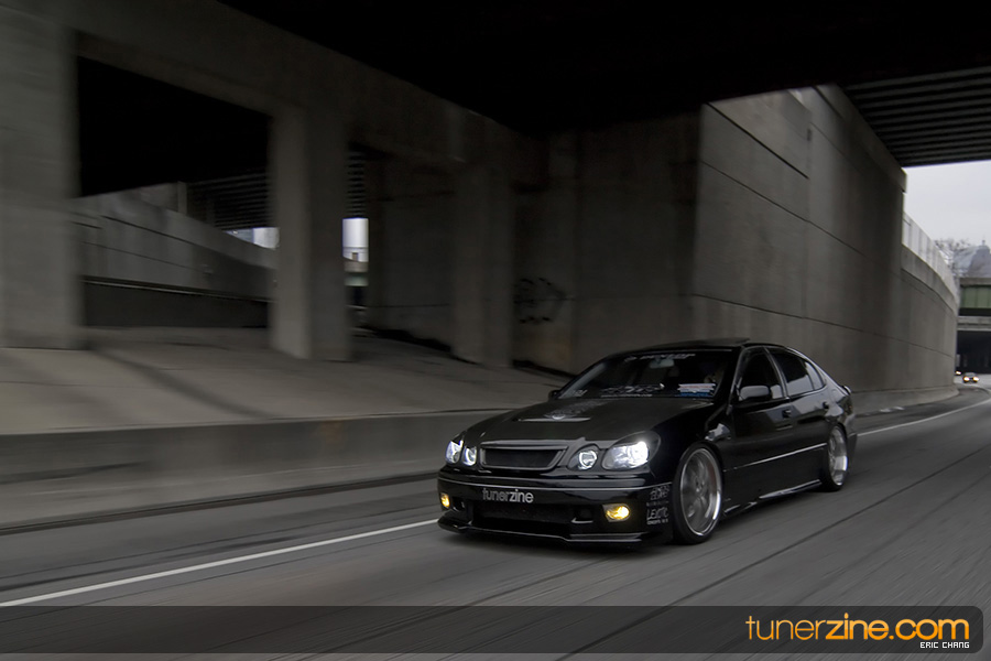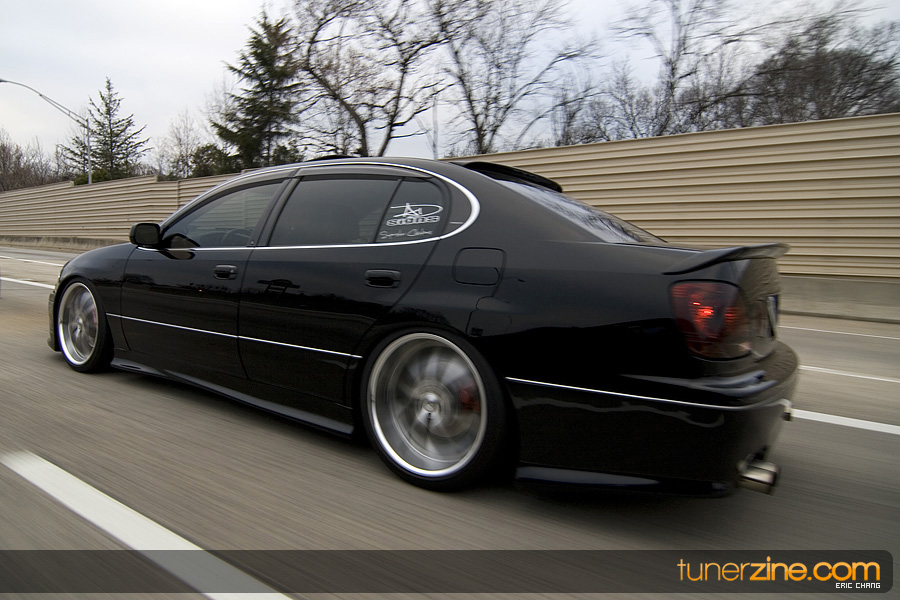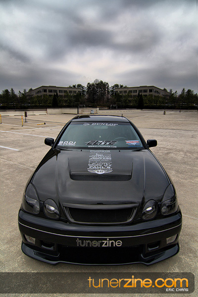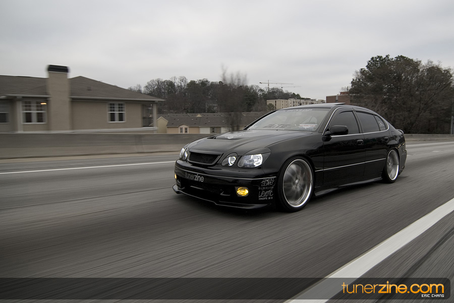 Tony Nguyen started with his GS300 with a couple things in mind: to make a presence at the shows and prowl the streets in style that few can imitate. The exterior of his GS300 has been completely revamped making his GS300 a true one of a kind. A Revolution Modified style front bumper and rear bumper along with VIS Racing side skirts starts the customizing portion of the exterior on his wicked sedan. Then came the fun with all the carbon fiber goods and thus the nickname Nguyen has given his car: CarbonGS. VIS’ carbon fiber DV vented hood along with a Junction Produce replica spoiler that’s been carbon wrapped in the center are the first things to catch our eyes. A UEGO roof spoiler has been wrapped with carbon fiber and installed along with carbon fiber b-pillars and a carbon fiber grille. Nguyen also overhauled all the lighting parts on his GS300 starting with CCFL daytime Demon Eyes, painted black headlight housings and clear turn signals. HIDs were installed along with IS300 fog lamps that were retrofitted for his GS300.