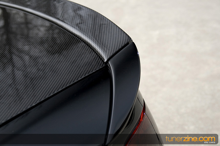 Last but not least, the interior has received its fair share of goods so that Nguyen can enjoy the car himself. The rear seats have been converted to black along with more carbon fiber goods. Hayame carbon fiber pedals accent the custom carbon fiber wrapped trim and Pilot carbon weave shift boot and knob. This GS packs quite a punch in the in car electronics department as well with a Pioneer AVIC-D3 head unit, Power Acoustics amplifier and a 12-inch Kicker L7 subwoofer.