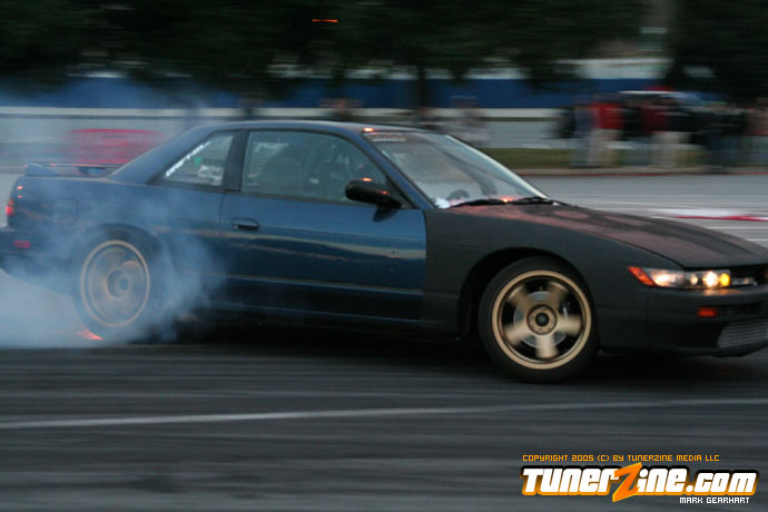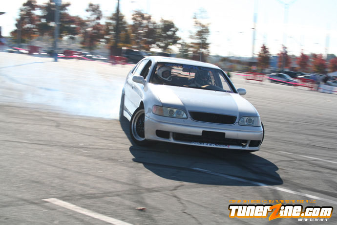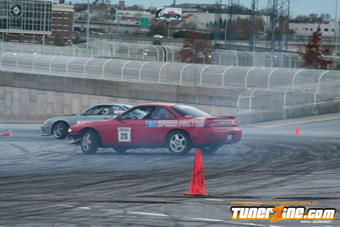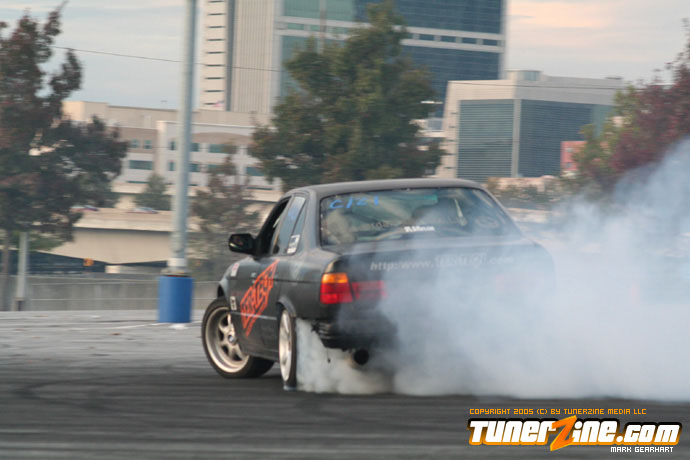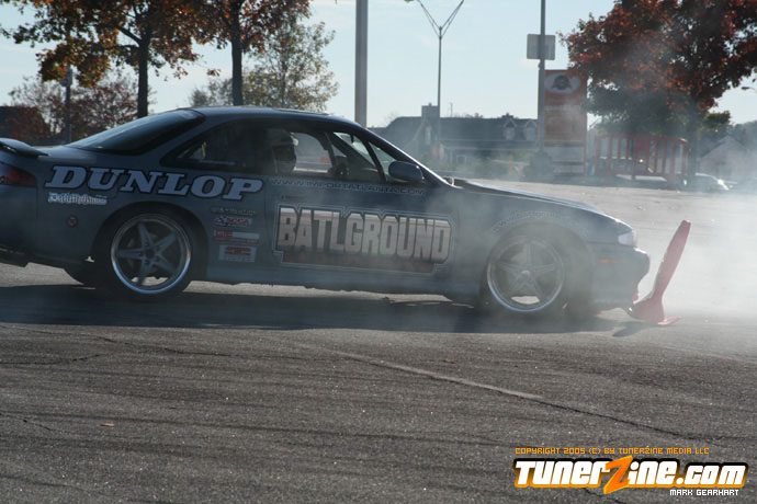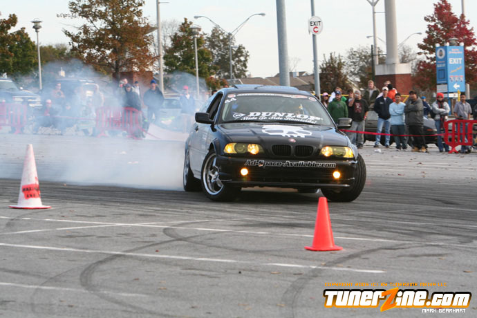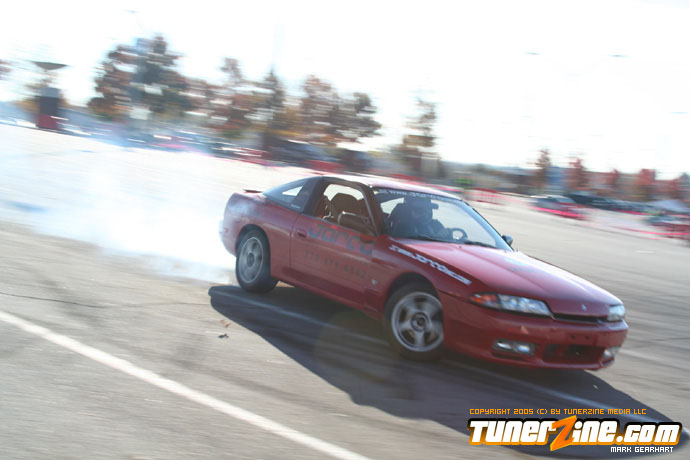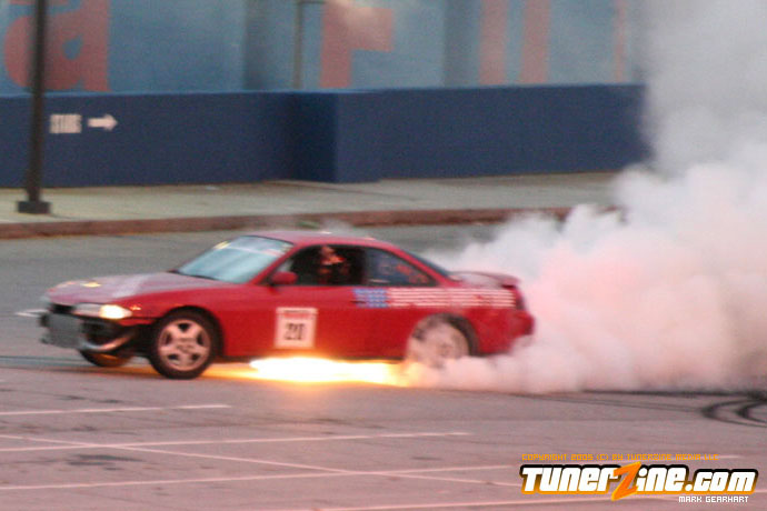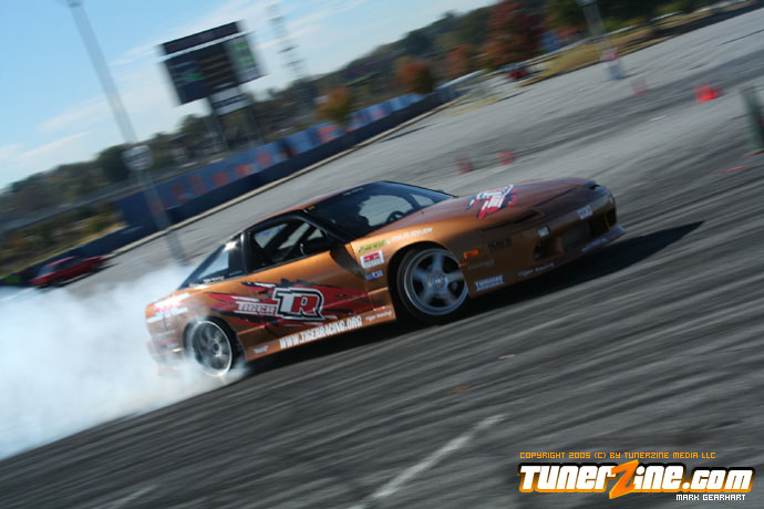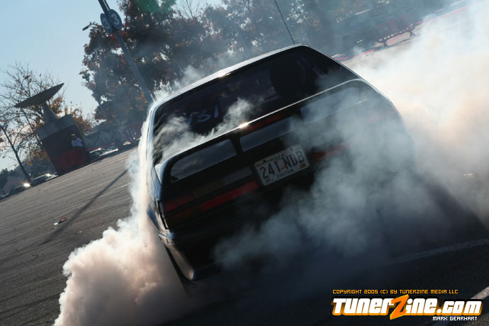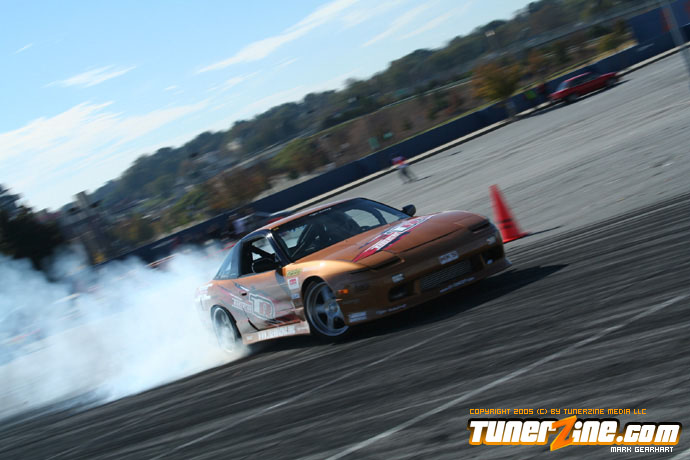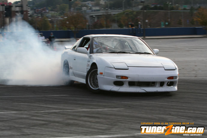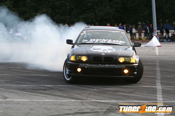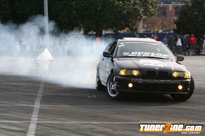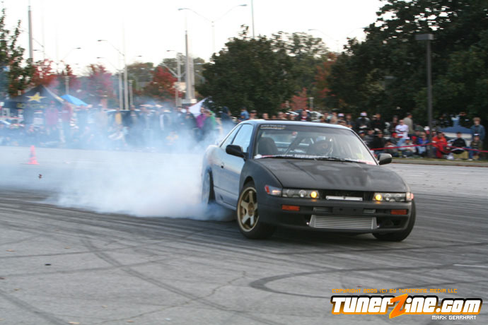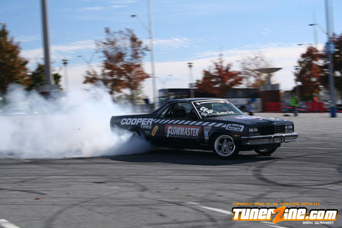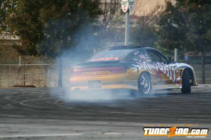 More tire smoke and plenty more rubber is burnt as the grassroots drifting action continues at the Atlanta Drift Expo.