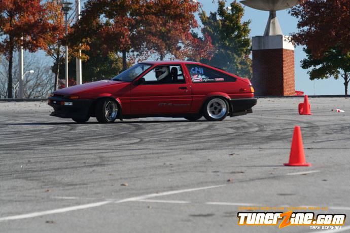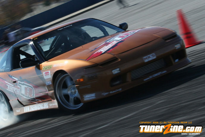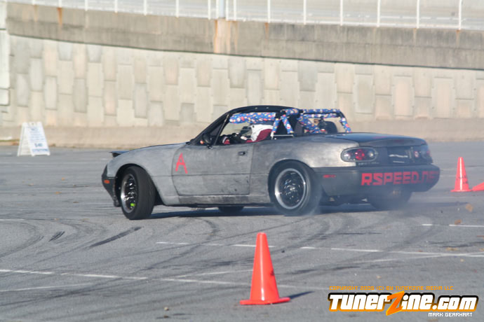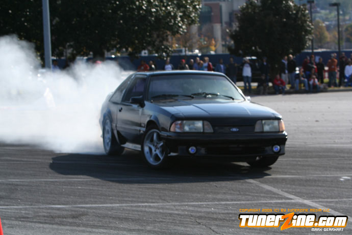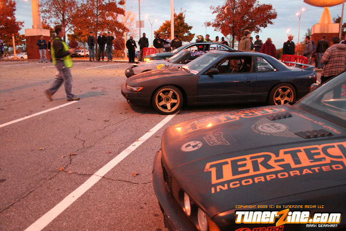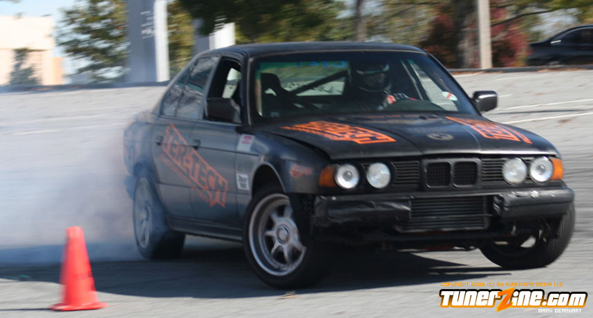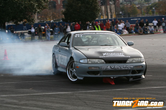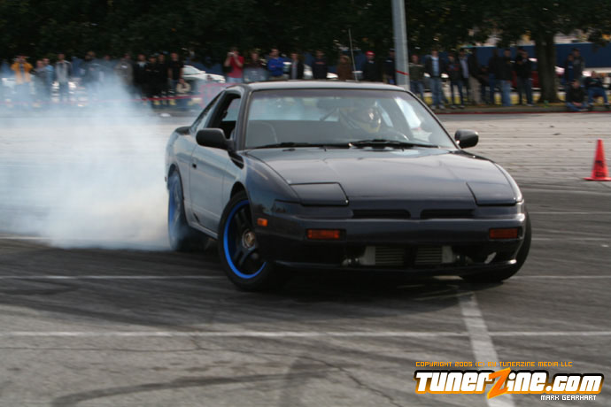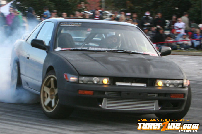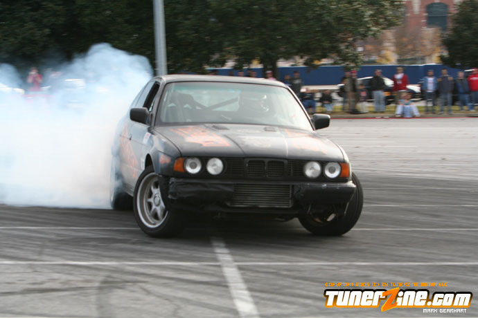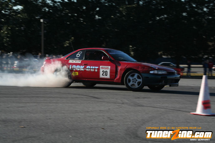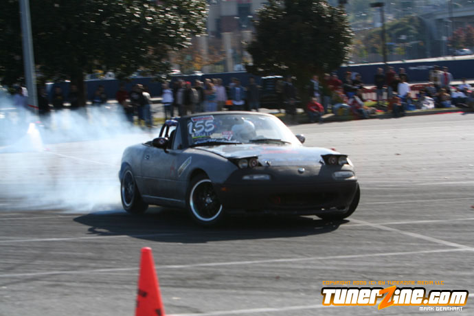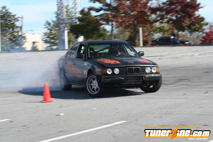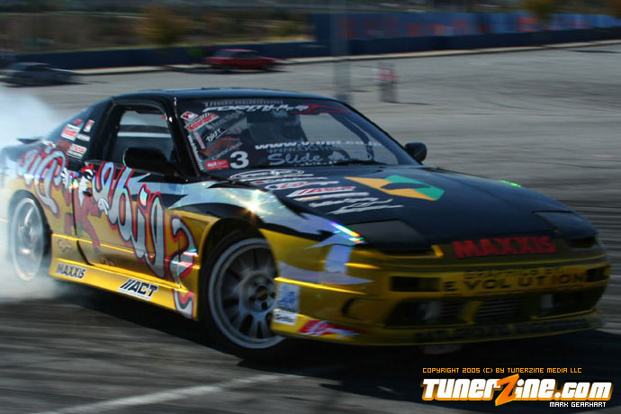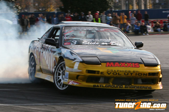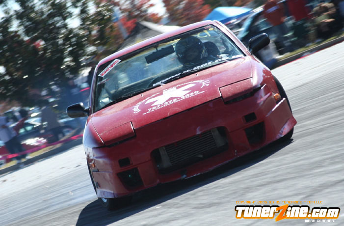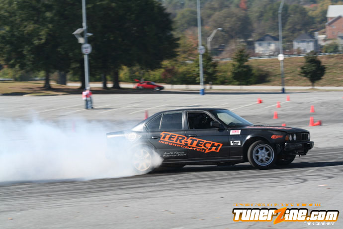 More tire smoke and plenty more rubber is burnt as the grassroots drifting action continues at the Atlanta Drift Expo.