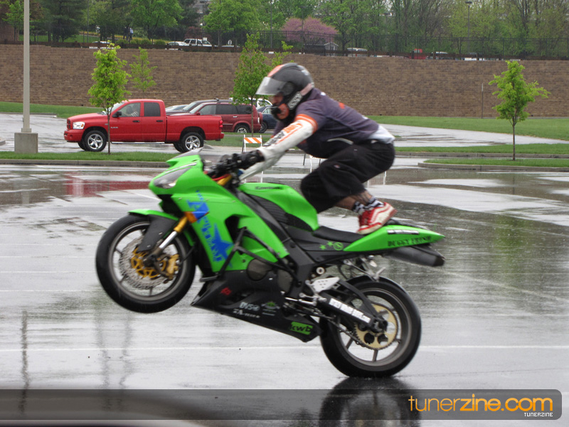 Once the weather cleared up, the motorcycle stunt drivers came out and put on quite a show for the spectators and car competitors.