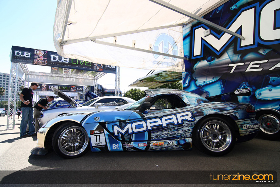 The 4th annual Chrysler Dodge Festival proved that American tuners and enthusiasts are far from abandoning their domestic manufacturers. Held right across the street from the Daimler Chrysler office in Irvine, CA, the festival brought out hundreds of 300Cs, Chargers and Challengers. One of the things that really caught our eye and appealed to us was Samuel Hubinette and his crew of drift vehicles. Check out the photos and enjoy – we can’t wait to see his new drift machine in action!