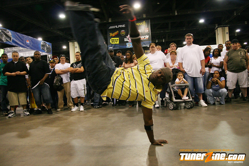 Grand Central Entertainment, working both the Pepsi stage and the Falken Tire booth with DJ Ez and DJ Emwhy kept the crowd moving to the beat, informed by the announcements and rocking the mic, as well and bringing everyone a show from the BBoys who put on an excellent show all day long. They were all over the place, spinning, popping and locking, and just basically keeping everyone with their jaw on the floor as they were stunned by the dance moves they watched! The vendors really kept things moving at the event as well, including All Around Motorsports/DLG Promotions which had their booth on lock. Falken Tires was off the chain too with 2 of the nicest cars of the day, a Turbocharged Celica and an amazing force fed 350z with enough paint to spread around a car lot!
