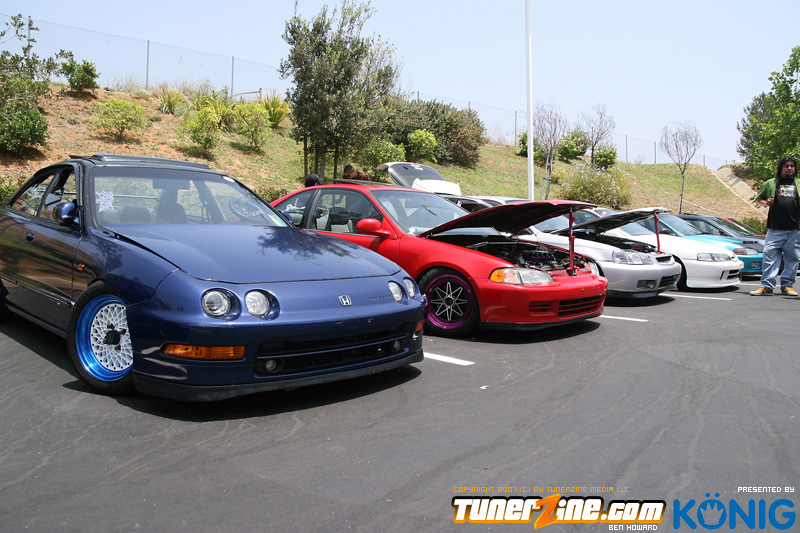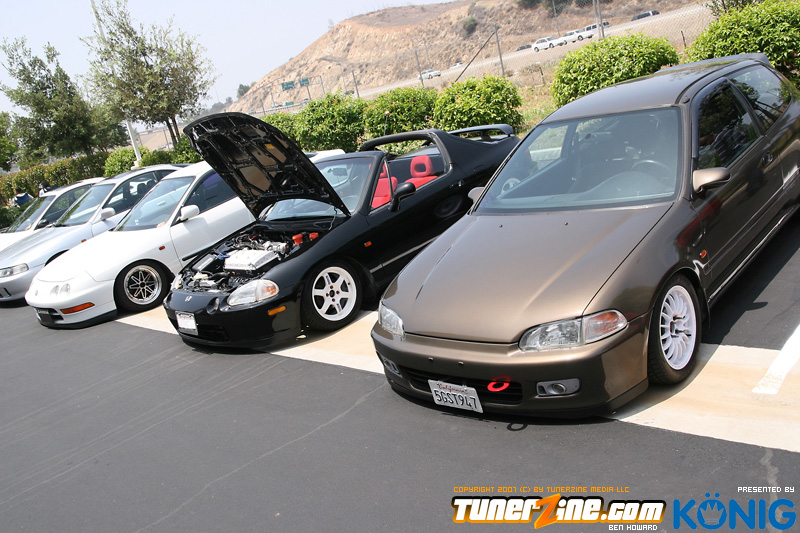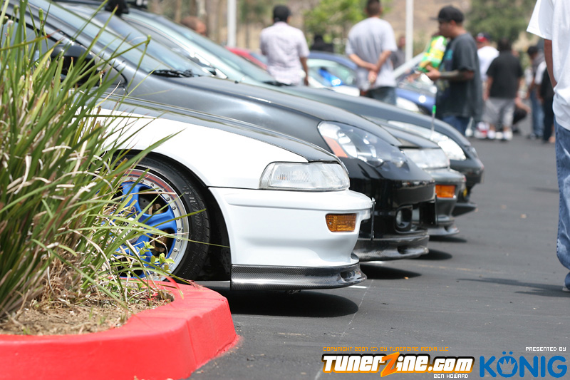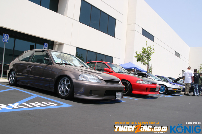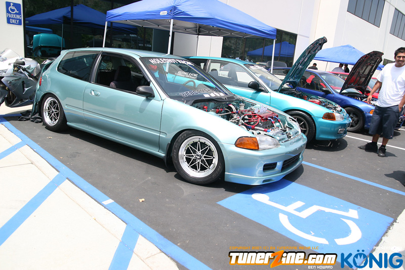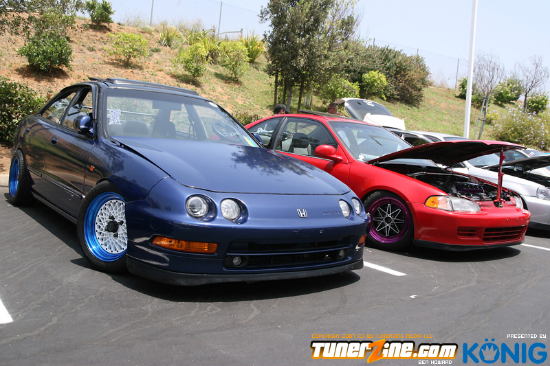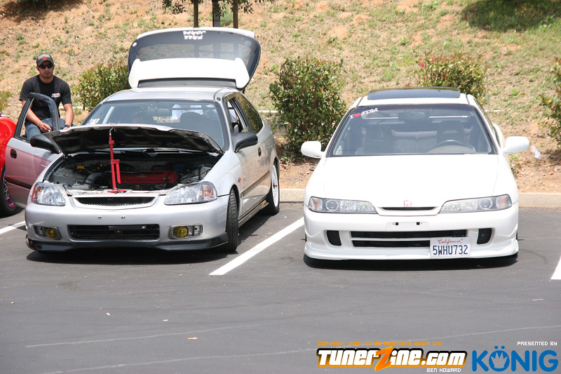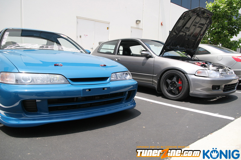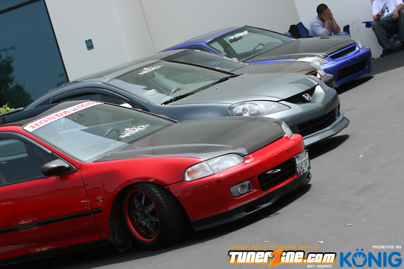Eibach is back again! Ryan (Vtecvoodoo), Matt (Rodrez), and Ben (Stunnaben) brought the walls down with another killer meet planned 100% on the internet forums. For the 4th straight year, Eibach of North America has opened its doors to the largest Honda/Acura only meet in the country. This year was such a success from both the standpoint of planning the meet and from the standpoint of attending the meet. This year we charged for parking, but in the words of Rodrez “Because we charged for parking this year, many of the disinterested didn’t bother showing up. Yes, this means a smaller meet in general, but the people that did in fact attend, were people that truly wanted to be there. This is probably the most important aspect of the Eibach meet, and the Honda community in general IMO.” In the morning when i rolled out of bed at 5am with only 1 hour of sleep, i knew that this would be a task to make sure this meet goes down as smooth as possible. To my surprise, there were no issues at all, not one, and we parked every single car within 2 hours. Thats over 3 hundred cars parked! Thats record time for our event, compared to last year where we think parking was a nightmare! Last years event had more of a turnout, but thats because we were Honda/Acura only this year, and also because of us charging. One thing i want to hit on is the fact that there was a strong attendance from both out of state people and the nor cal crews as well. Out of state heads came from as far as North Carolina, South Carolina, Ohio, and Florida to check the event. To ask these people all what they thought of the event, they will all have mostly the same type of answer of “simply amazing” put into short words. A few highlights of the day had to be seeing some of the wild cars you see on most of the popular forums in person. Biggest congrats goes to seeing Dave Dunn’s RWD h22 powered Integra in the R&D section of the Eibach building bay. Its a true marvel. Also seeing Danny’s 4door K powered civic from AM7, All of the cars that Redzone brought from Norcal including their 4 door boosted JDM itr and their super clean CTR. My jaw dropped at the sight of the cars as they rolled to my feet for check in. With an event going down with this magnitude, its hard to imagine the So Cal car scene and event list without the Eibach meet in 2008. This is a meet, not a show, and its truly for the enthusiast. We want to bring back the meeting and companionship aspect to the scene. Anyone can go and pay to get into a car show, but to come, walk around, pay as a donation to park, enjoy free pizza that we supply, meet the vendors who you buy from in person, and get to know the people you talk to on forums and see their hard work go down is truly a special occasion and we want to bring that to you every year. Enjoy the pictures and we hope to see you at next years Eibach Meet.