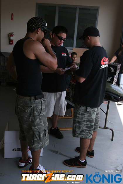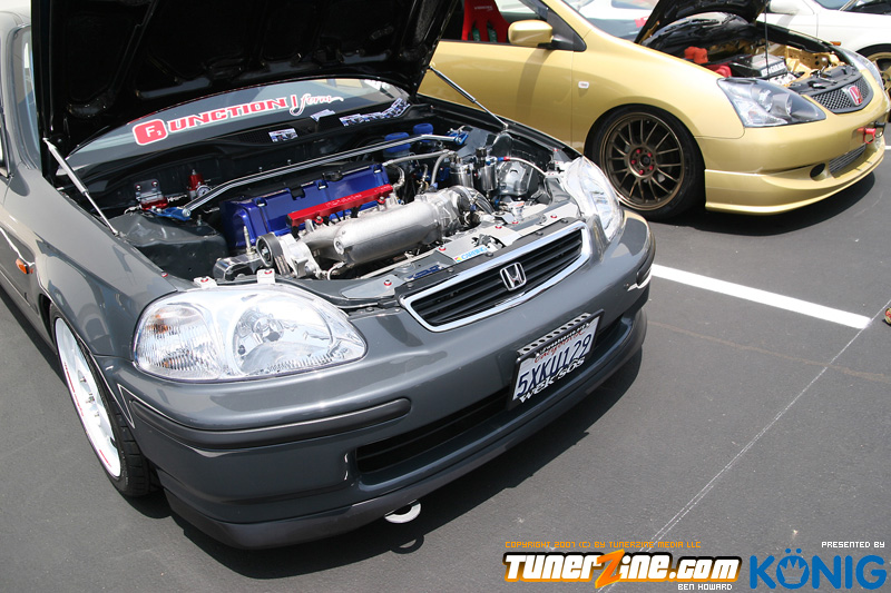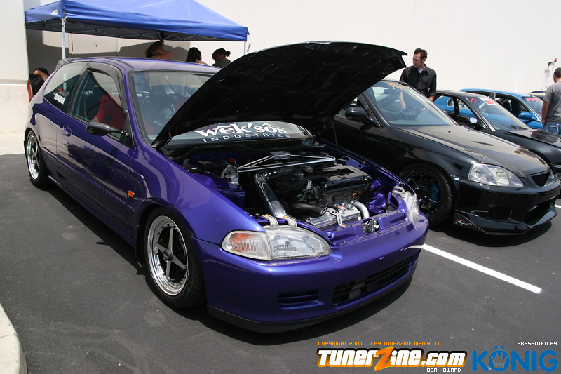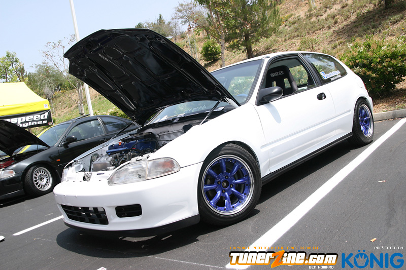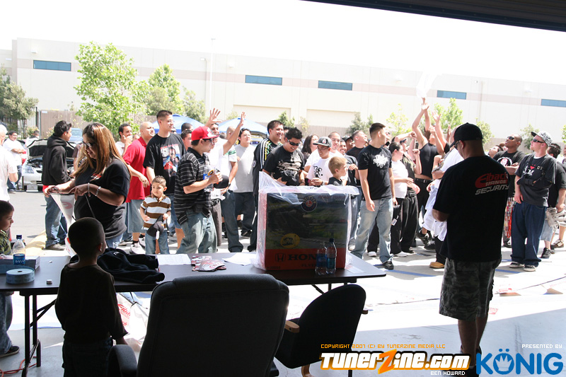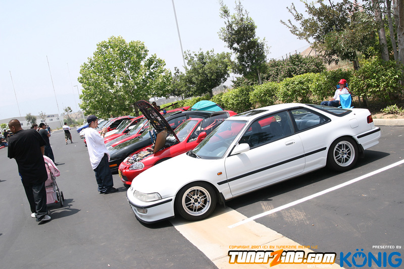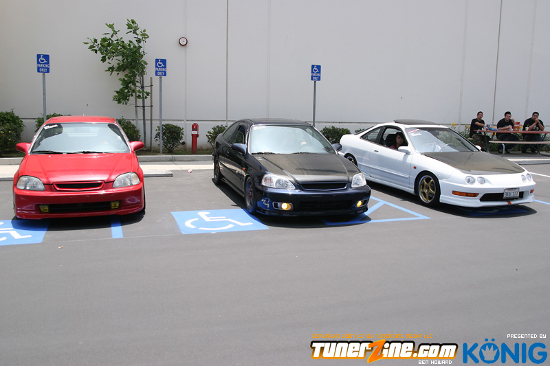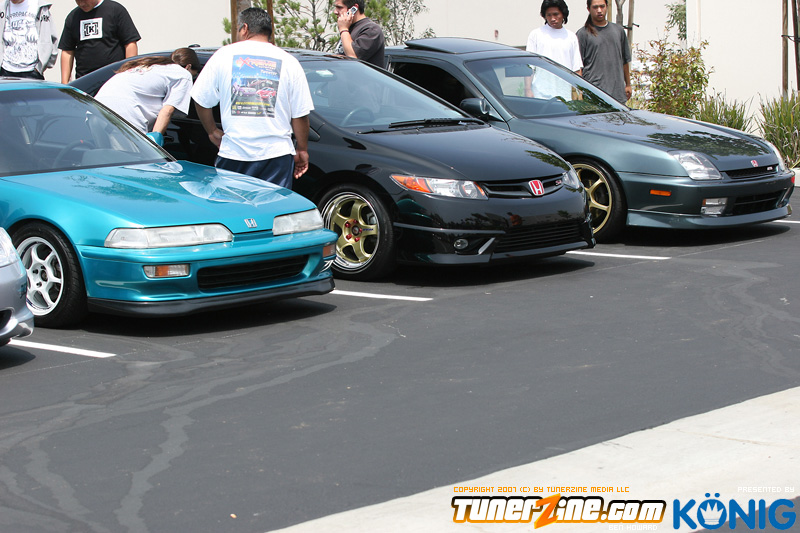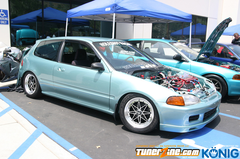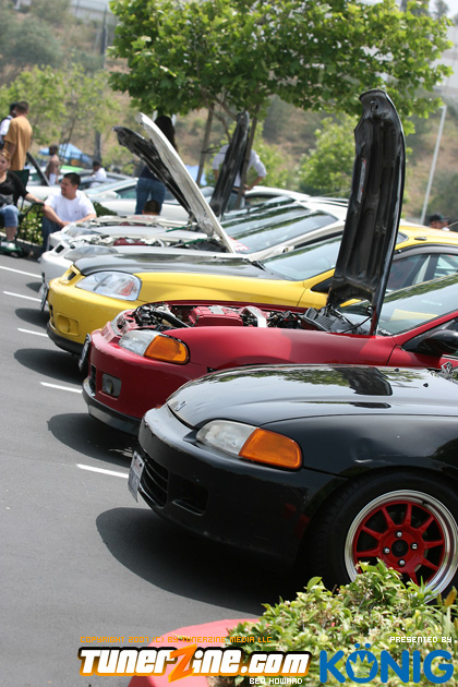 Eibach is back again! Ryan (Vtecvoodoo), Matt (Rodrez), and Ben (Stunnaben) brought the walls down with another killer meet planned 100% on the internet forums. For the 4th straight year, Eibach of North America has opened its doors to the largest Honda/Acura only meet in the country. This year was such a success from both the standpoint of planning the meet and from the standpoint of attending the meet. This year we charged for parking, but in the words of Rodrez “Because we charged for parking this year, many of the disinterested didn’t bother showing up. Yes, this means a smaller meet in general, but the people that did in fact attend, were people that truly wanted to be there. This is probably the most important aspect of the Eibach meet, and the Honda community in general IMO.” In the morning when i rolled out of bed at 5am with only 1 hour of sleep, i knew that this would be a task to make sure this meet goes down as smooth as possible. To my surprise, there were no issues at all, not one, and we parked every single car within 2 hours. Thats over 3 hundred cars parked! Thats record time for our event, compared to last year where we think parking was a nightmare! Last years event had more of a turnout, but thats because we were Honda/Acura only this year, and also because of us charging. One thing i want to hit on is the fact that there was a strong attendance from both out of state people and the nor cal crews as well. Out of state heads came from as far as North Carolina, South Carolina, Ohio, and Florida to check the event. To ask these people all what they thought of the event, they will all have mostly the same type of answer of “simply amazing” put into short words. A few highlights of the day had to be seeing some of the wild cars you see on most of the popular forums in person. Biggest congrats goes to seeing Dave Dunn’s RWD h22 powered Integra in the R&D section of the Eibach building bay. Its a true marvel. Also seeing Danny’s 4door K powered civic from AM7, All of the cars that Redzone brought from Norcal including their 4 door boosted JDM itr and their super clean CTR. My jaw dropped at the sight of the cars as they rolled to my feet for check in. With an event going down with this magnitude, its hard to imagine the So Cal car scene and event list without the Eibach meet in 2008. This is a meet, not a show, and its truly for the enthusiast. We want to bring back the meeting and companionship aspect to the scene. Anyone can go and pay to get into a car show, but to come, walk around, pay as a donation to park, enjoy free pizza that we supply, meet the vendors who you buy from in person, and get to know the people you talk to on forums and see their hard work go down is truly a special occasion and we want to bring that to you every year. Enjoy the pictures and we hope to see you at next years Eibach Meet.