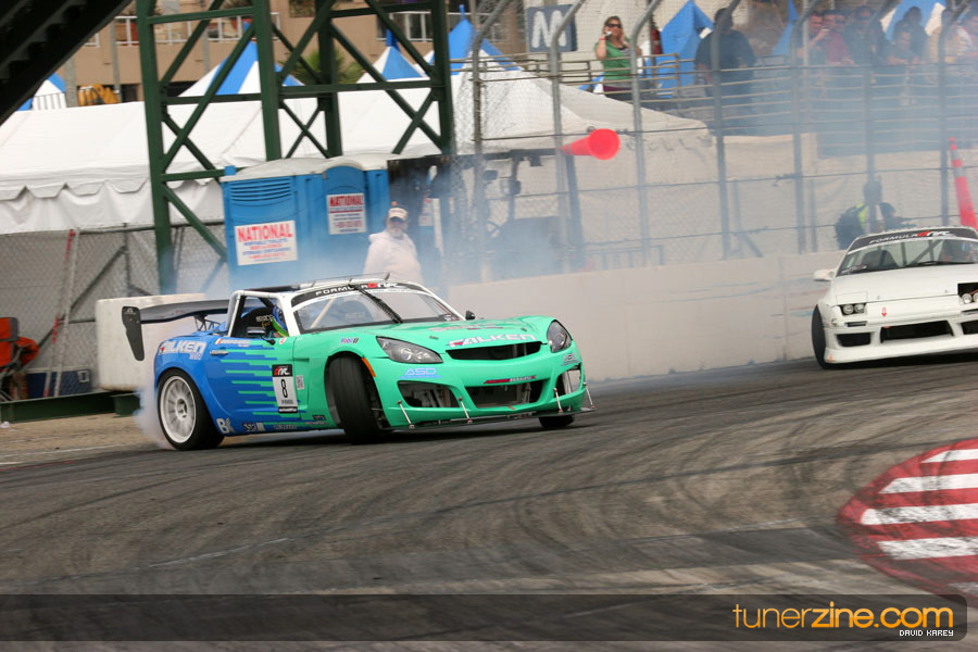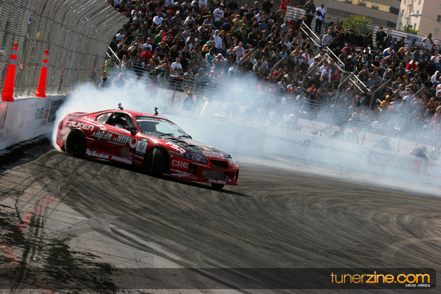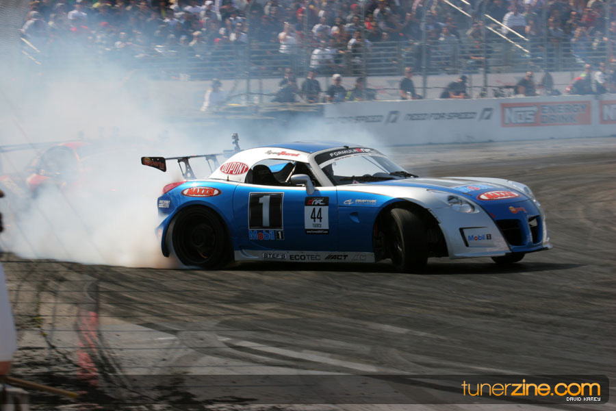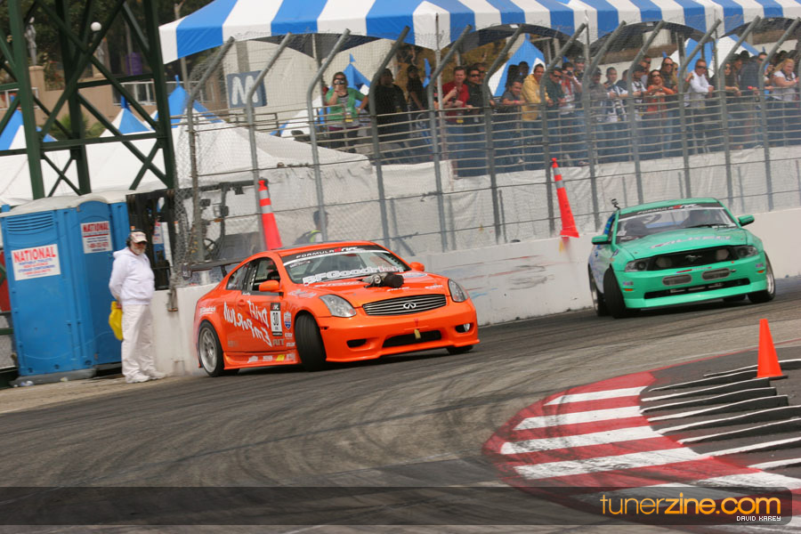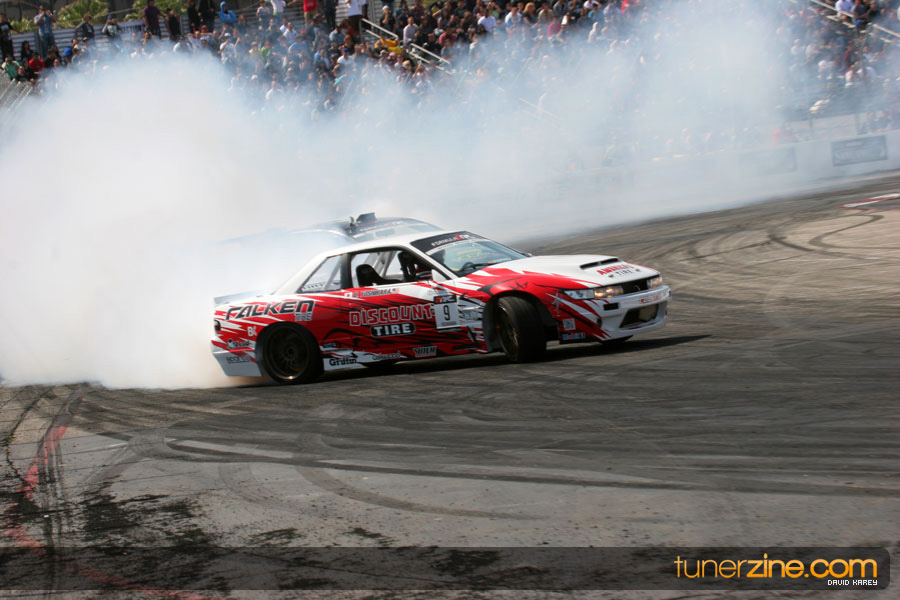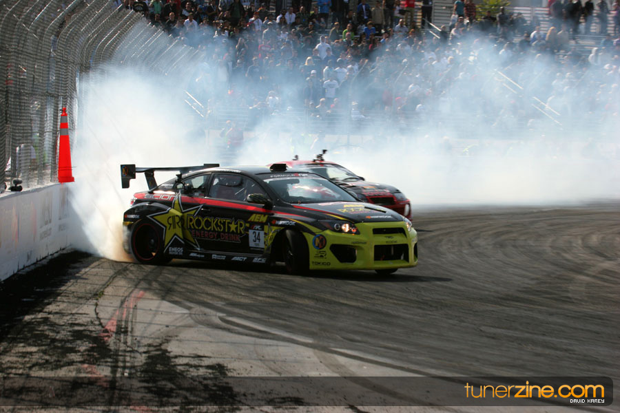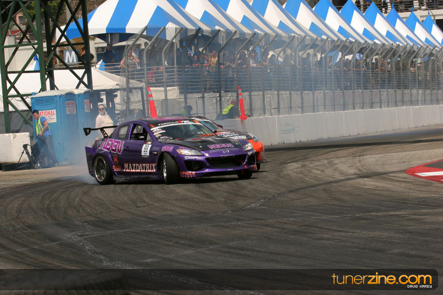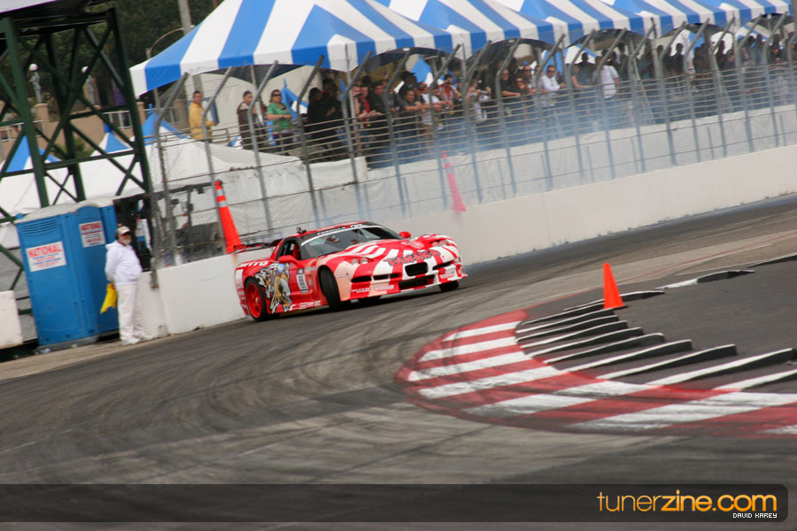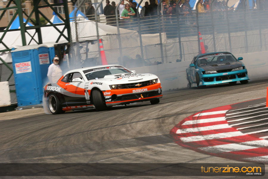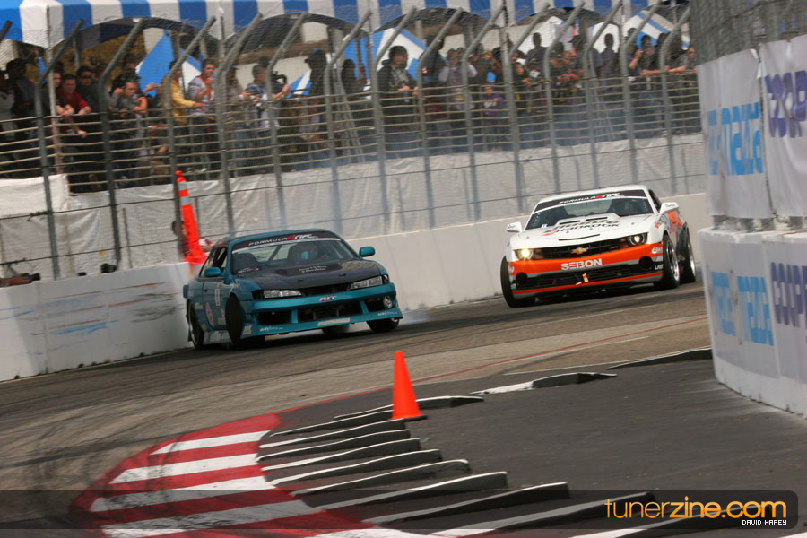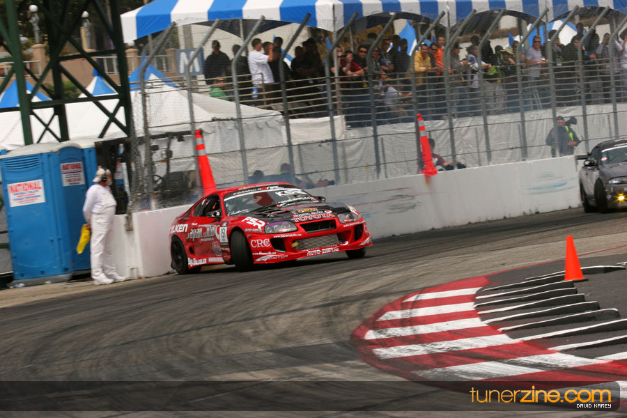 The Long Beach Grand Prix Street Course hosted the first competition of the 2010 season of Formula DRIFT. The venue was packed with reserved seating selling out before the main event opened the doors and the crowds filled the grandstands, pits, and paddock. The event also provided plenty of additional features and attractions that included the debut of the new Miss Formula DRIFT, Melyssa Grace, the One of One Car Show produced by Fatlace, and MetroPCS / Sanctioned brought out celebrity guest and world famous tattoo artist Mister Cartoon. The thousands of fans were treated to world class drifting with over 13 countries represented in the competition.