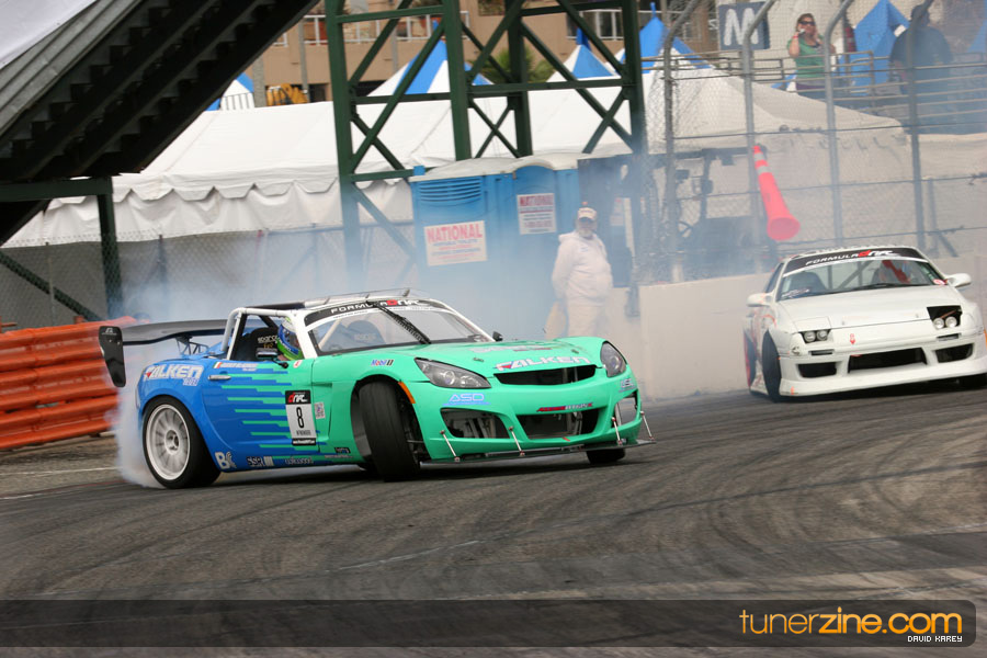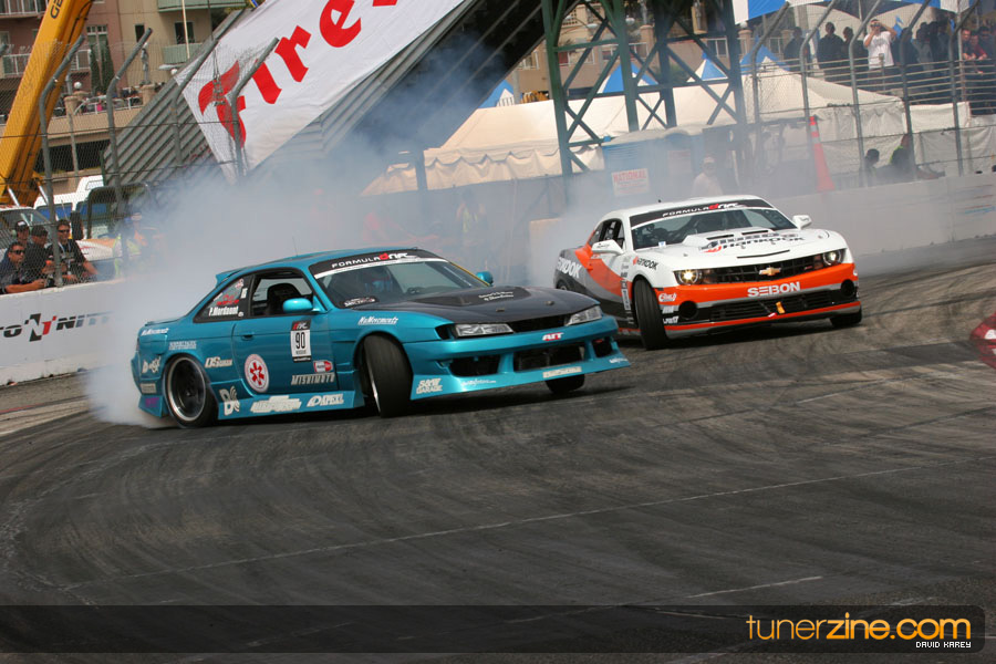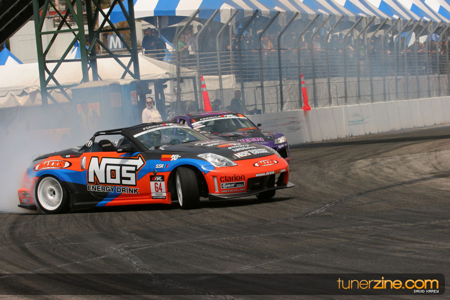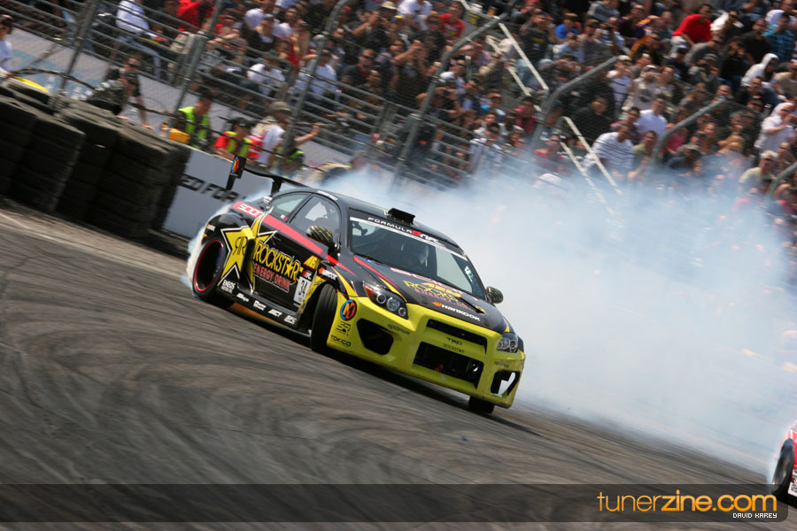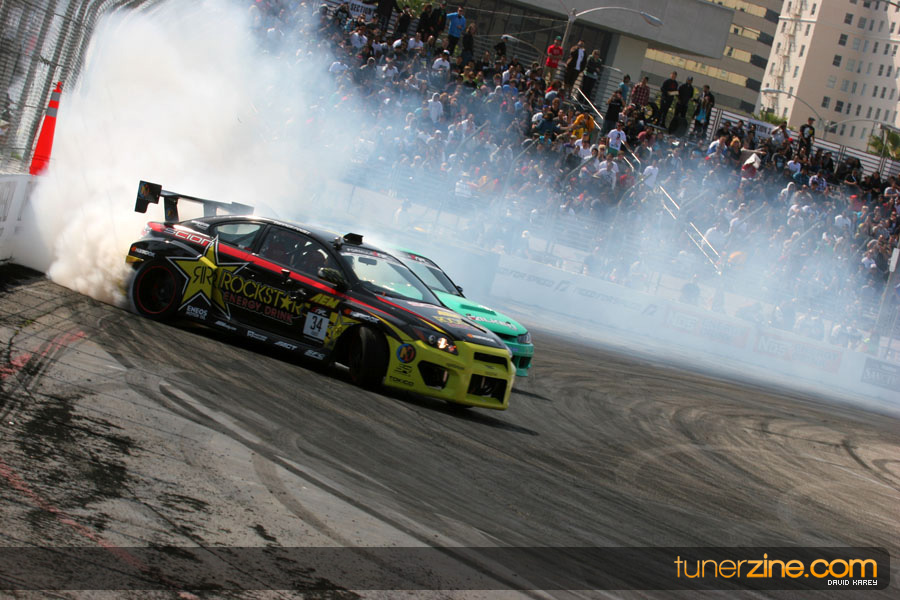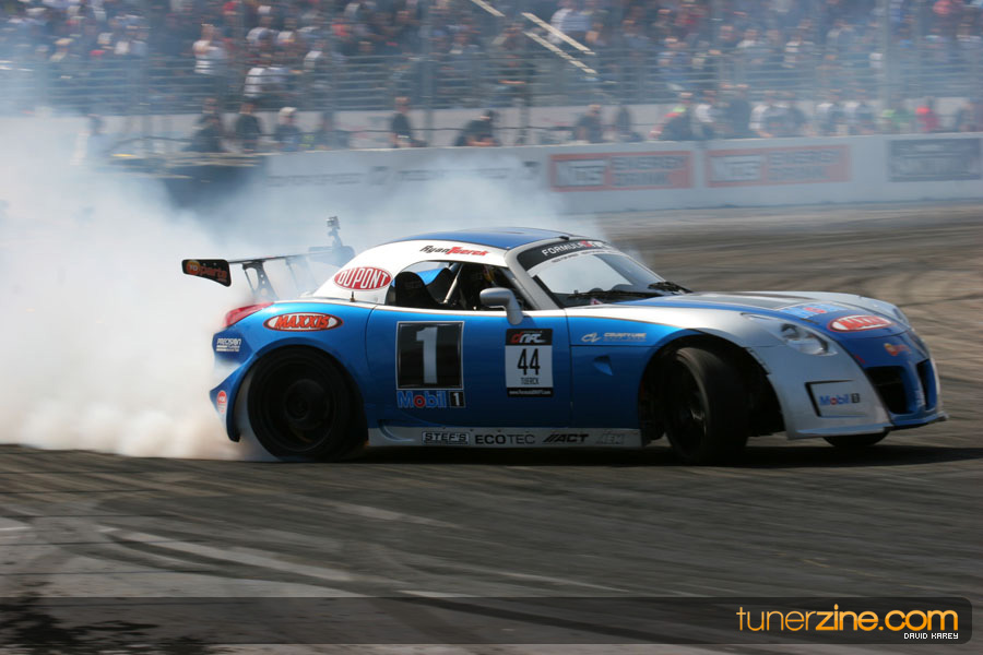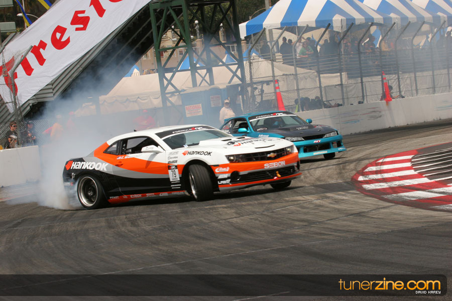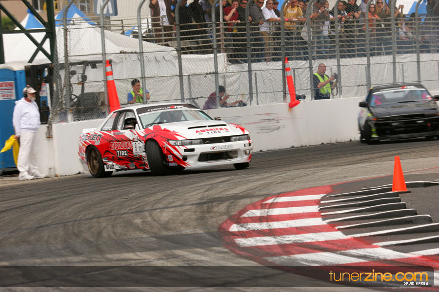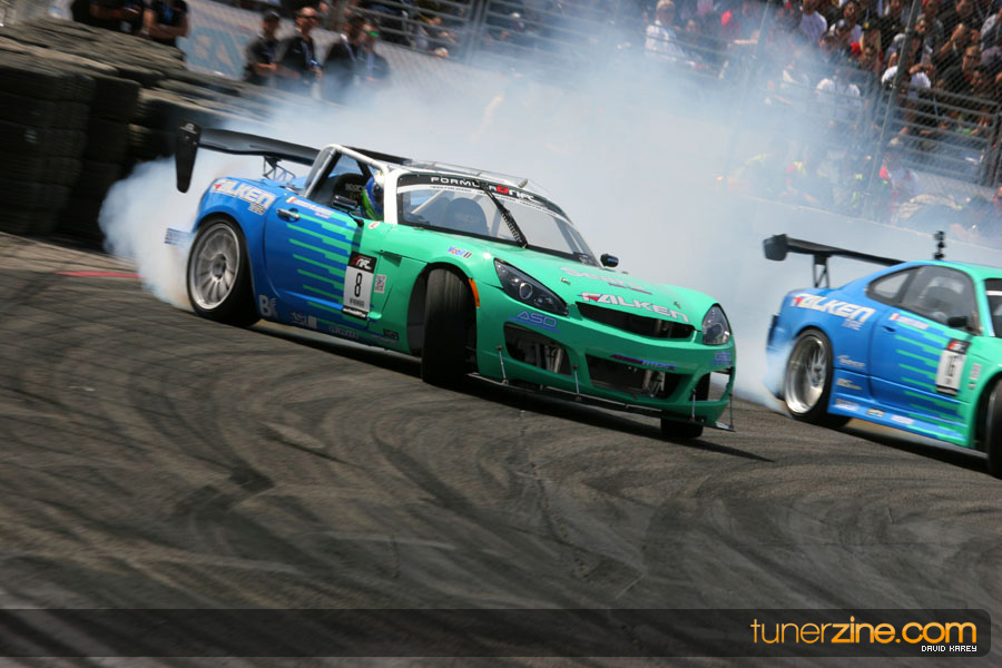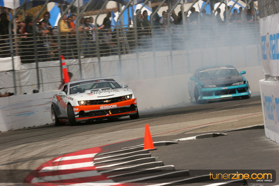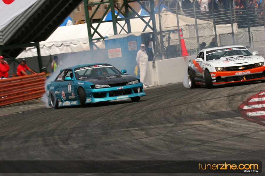 The Long Beach Grand Prix Street Course hosted the first competition of the 2010 season of Formula DRIFT. The venue was packed with reserved seating selling out before the main event opened the doors and the crowds filled the grandstands, pits, and paddock. The event also provided plenty of additional features and attractions that included the debut of the new Miss Formula DRIFT, Melyssa Grace, the One of One Car Show produced by Fatlace, and MetroPCS / Sanctioned brought out celebrity guest and world famous tattoo artist Mister Cartoon. The thousands of fans were treated to world class drifting with over 13 countries represented in the competition.