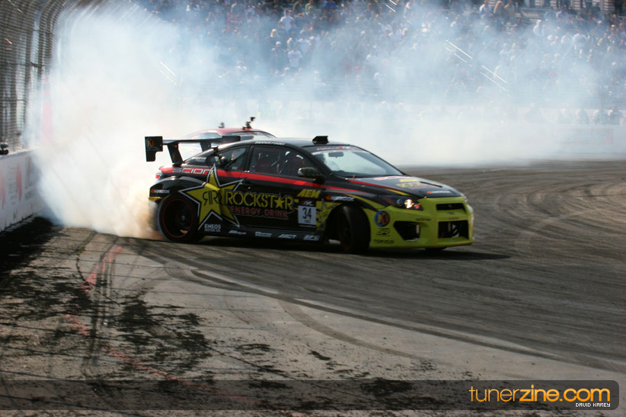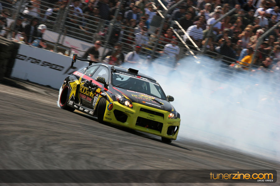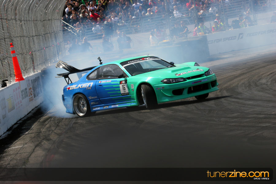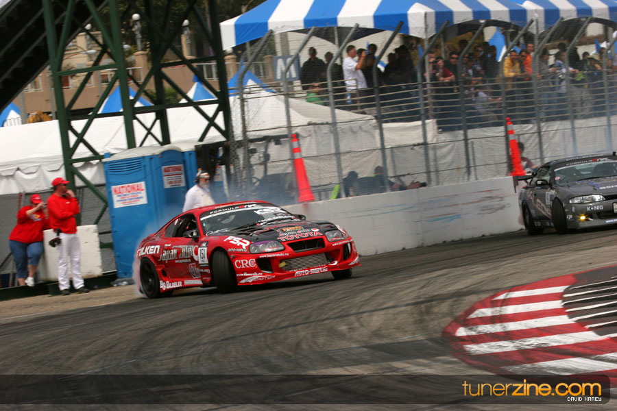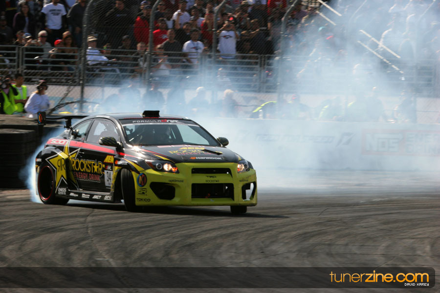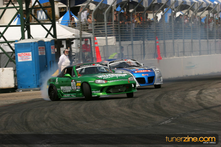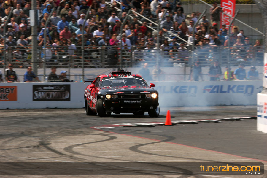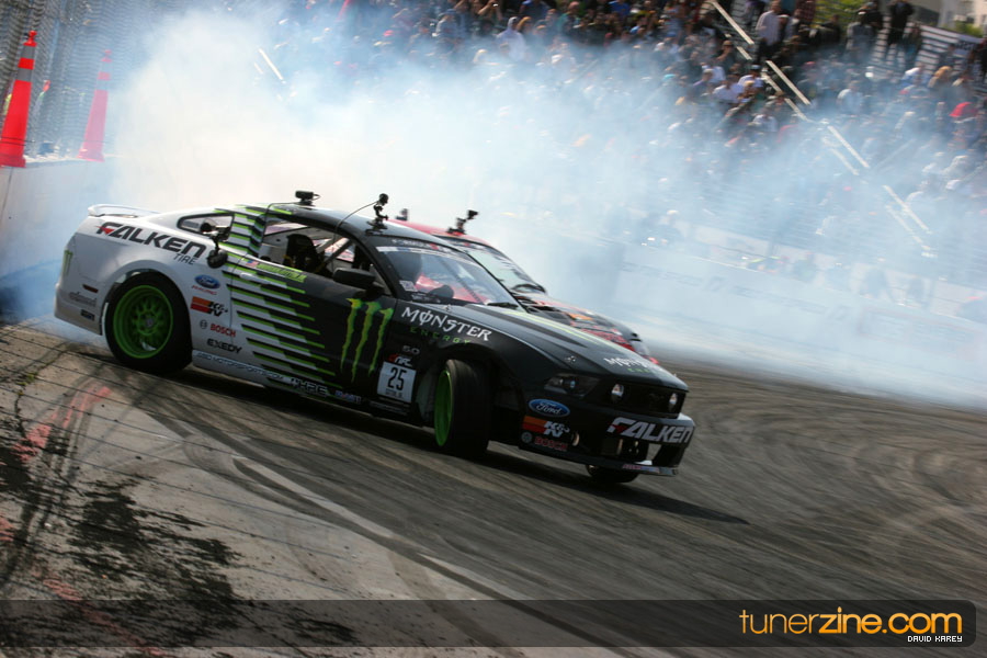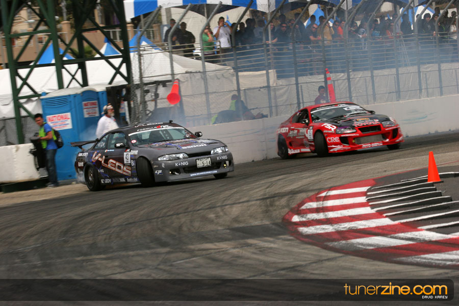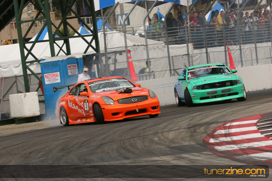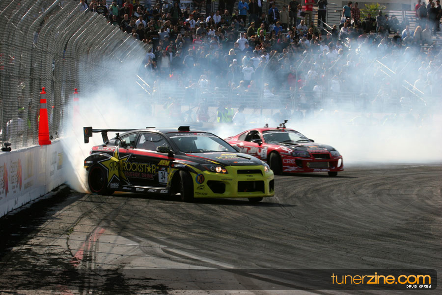 The Long Beach Grand Prix Street Course hosted the first competition of the 2010 season of Formula DRIFT. The venue was packed with reserved seating selling out before the main event opened the doors and the crowds filled the grandstands, pits, and paddock. The event also provided plenty of additional features and attractions that included the debut of the new Miss Formula DRIFT, Melyssa Grace, the One of One Car Show produced by Fatlace, and MetroPCS / Sanctioned brought out celebrity guest and world famous tattoo artist Mister Cartoon. The thousands of fans were treated to world class drifting with over 13 countries represented in the competition.
