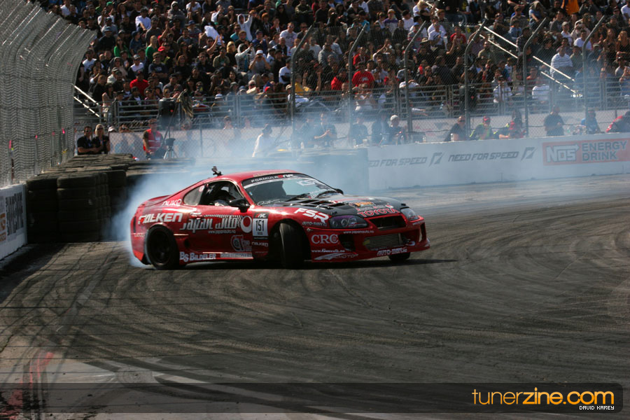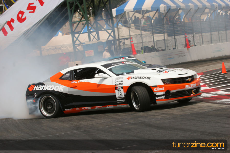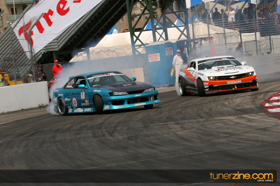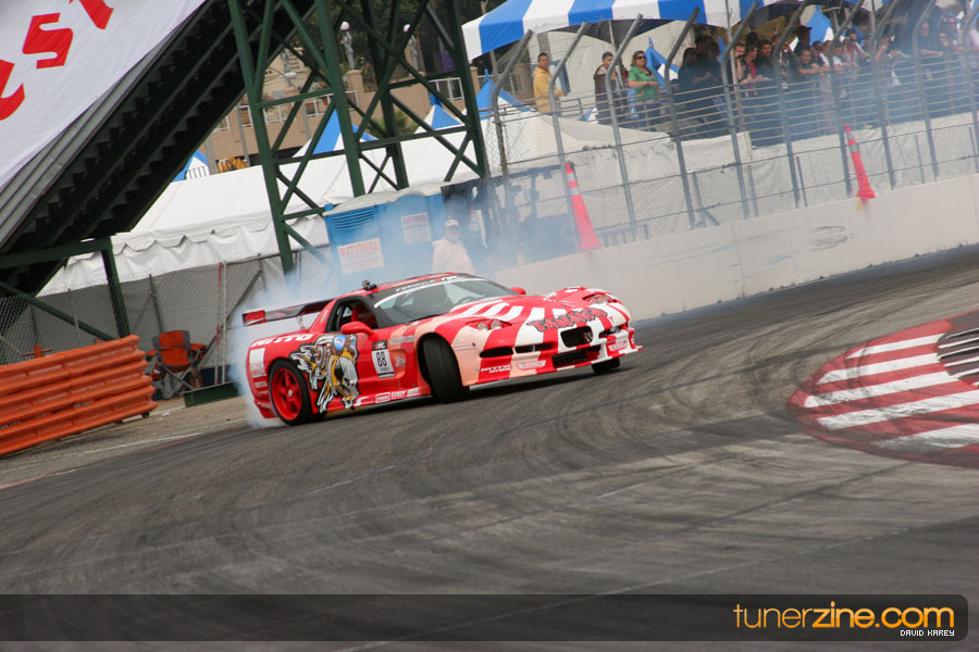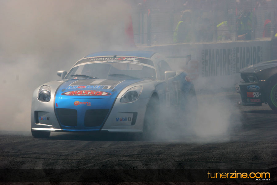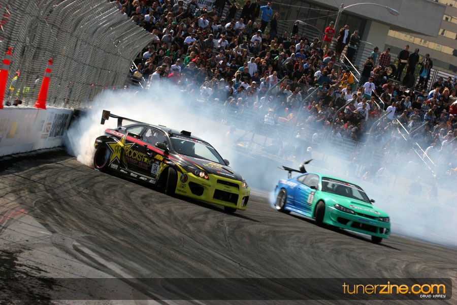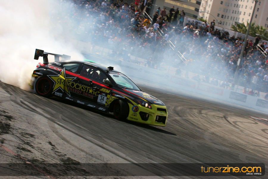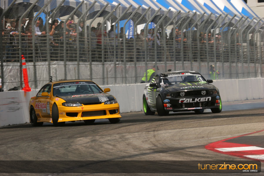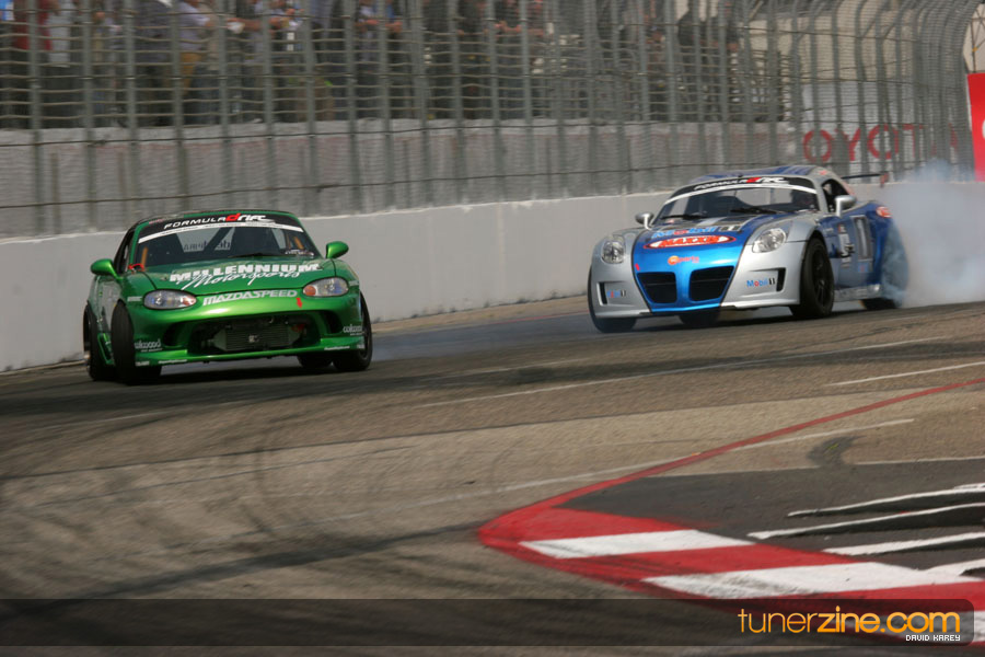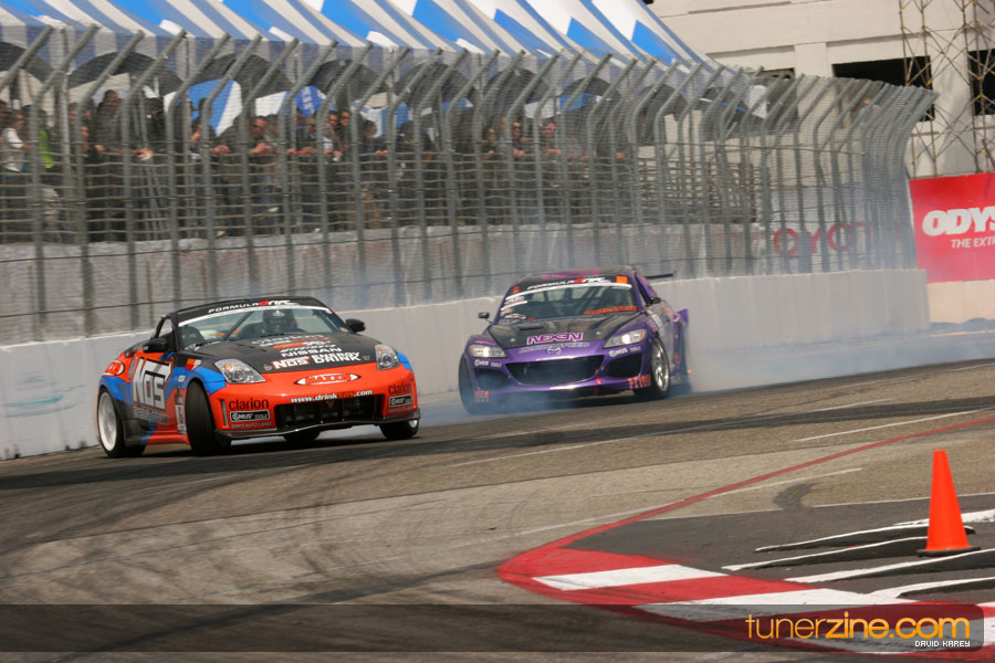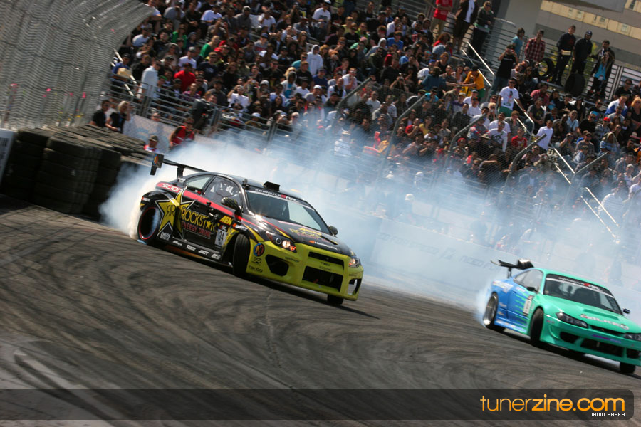 The Long Beach Grand Prix Street Course hosted the first competition of the 2010 season of Formula DRIFT. The venue was packed with reserved seating selling out before the main event opened the doors and the crowds filled the grandstands, pits, and paddock. The event also provided plenty of additional features and attractions that included the debut of the new Miss Formula DRIFT, Melyssa Grace, the One of One Car Show produced by Fatlace, and MetroPCS / Sanctioned brought out celebrity guest and world famous tattoo artist Mister Cartoon. The thousands of fans were treated to world class drifting with over 13 countries represented in the competition.