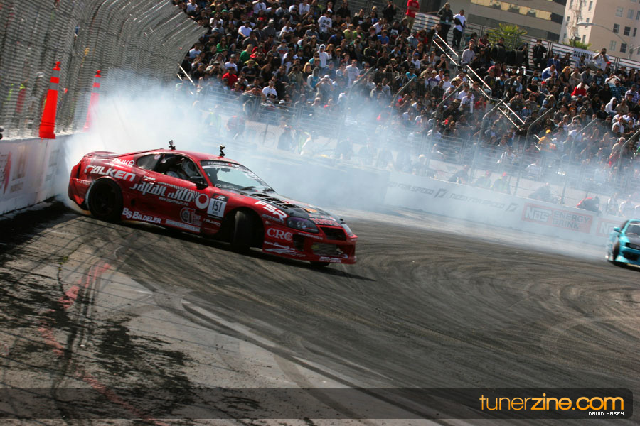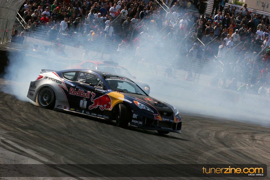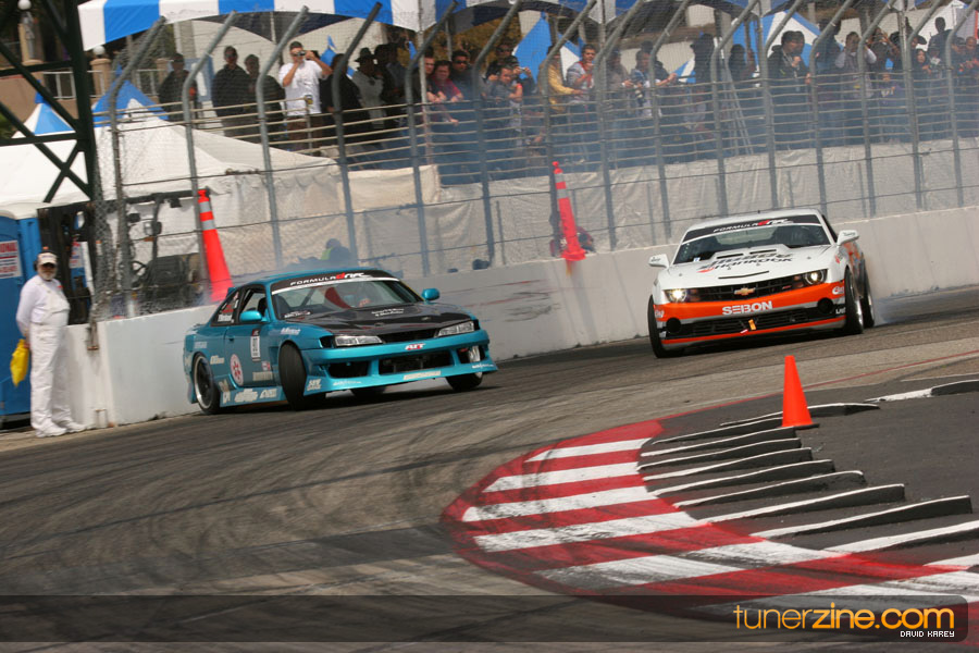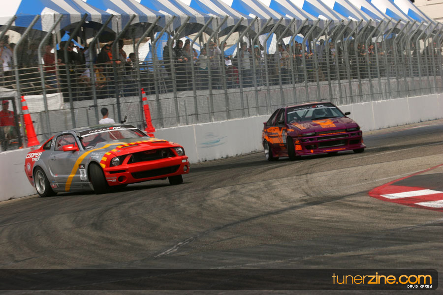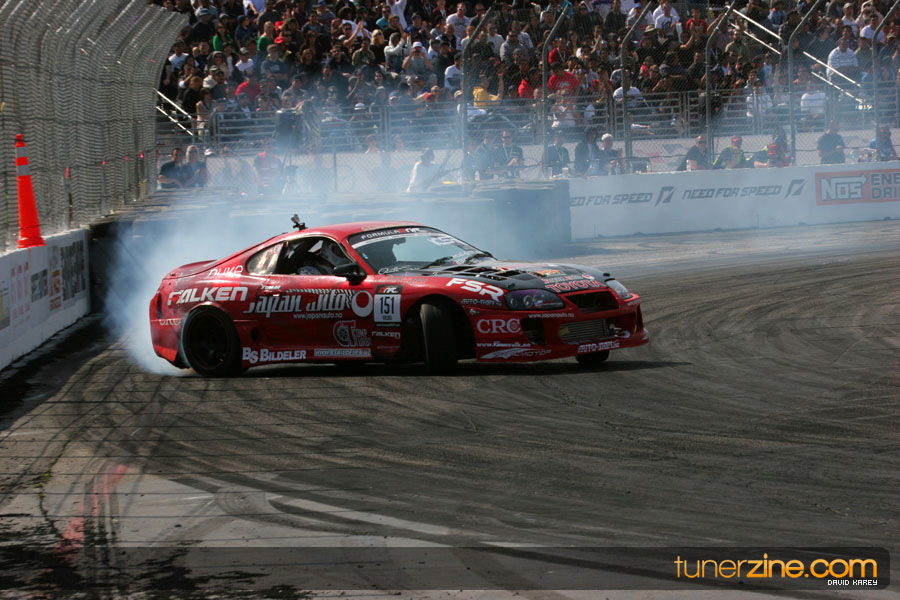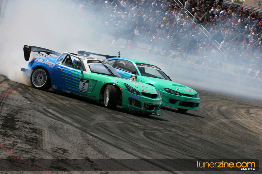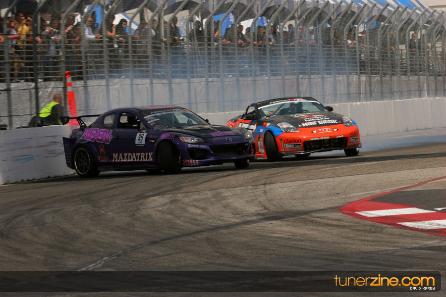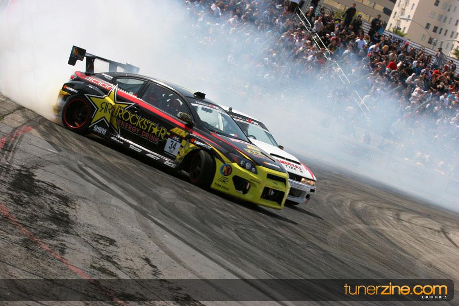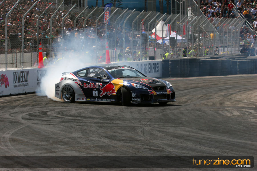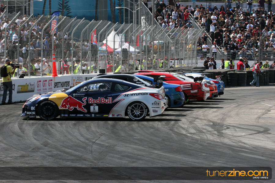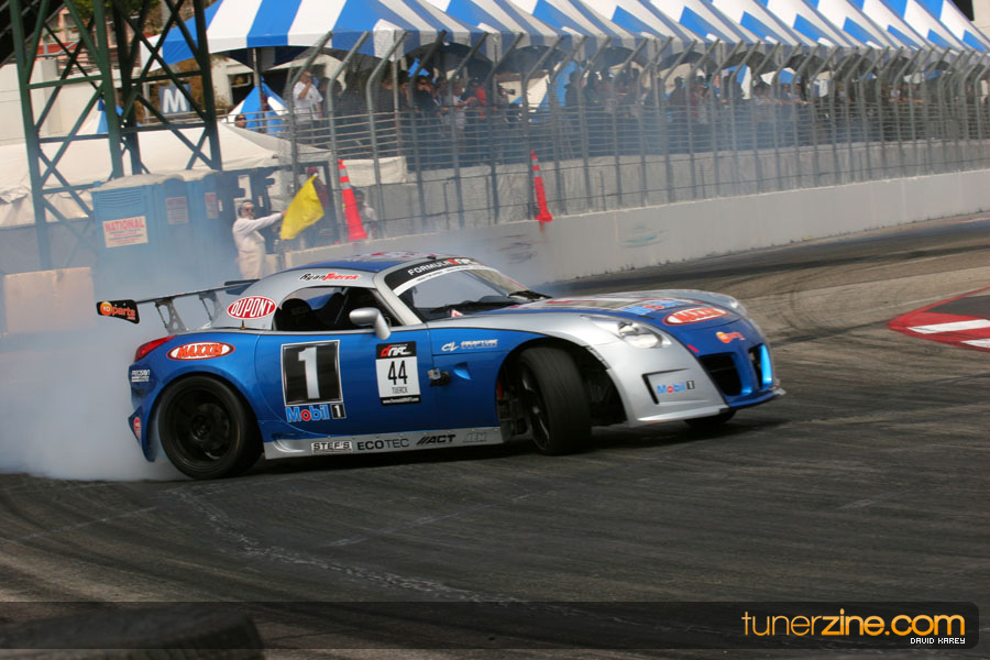 The Long Beach Grand Prix Street Course hosted the first competition of the 2010 season of Formula DRIFT. The venue was packed with reserved seating selling out before the main event opened the doors and the crowds filled the grandstands, pits, and paddock. The event also provided plenty of additional features and attractions that included the debut of the new Miss Formula DRIFT, Melyssa Grace, the One of One Car Show produced by Fatlace, and MetroPCS / Sanctioned brought out celebrity guest and world famous tattoo artist Mister Cartoon. The thousands of fans were treated to world class drifting with over 13 countries represented in the competition.