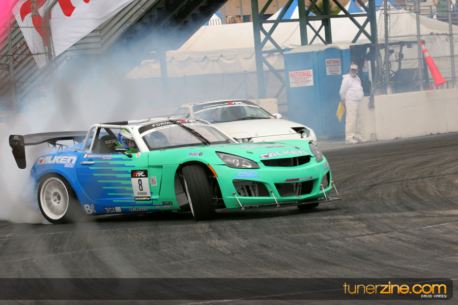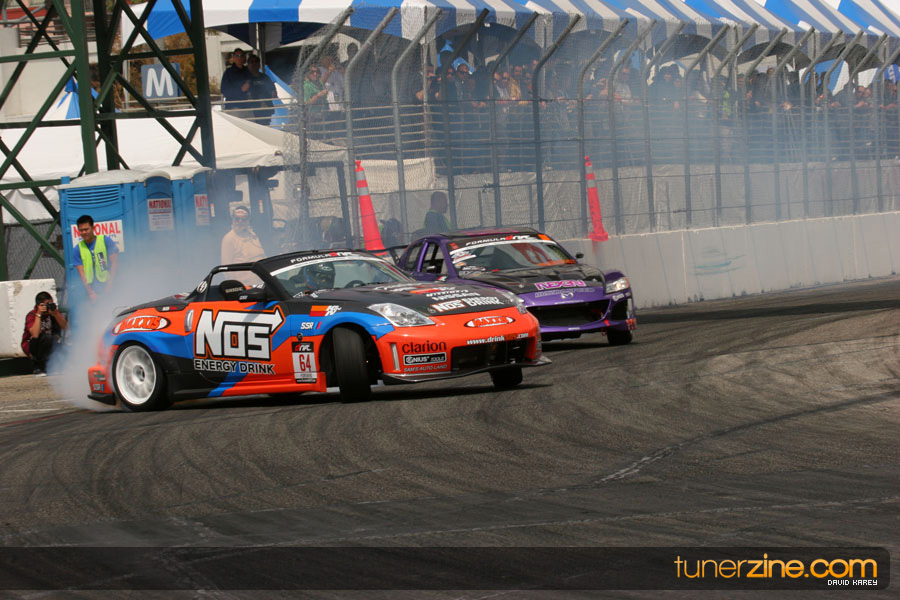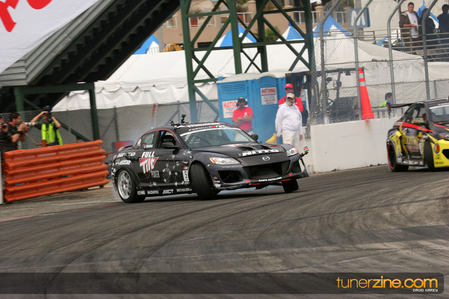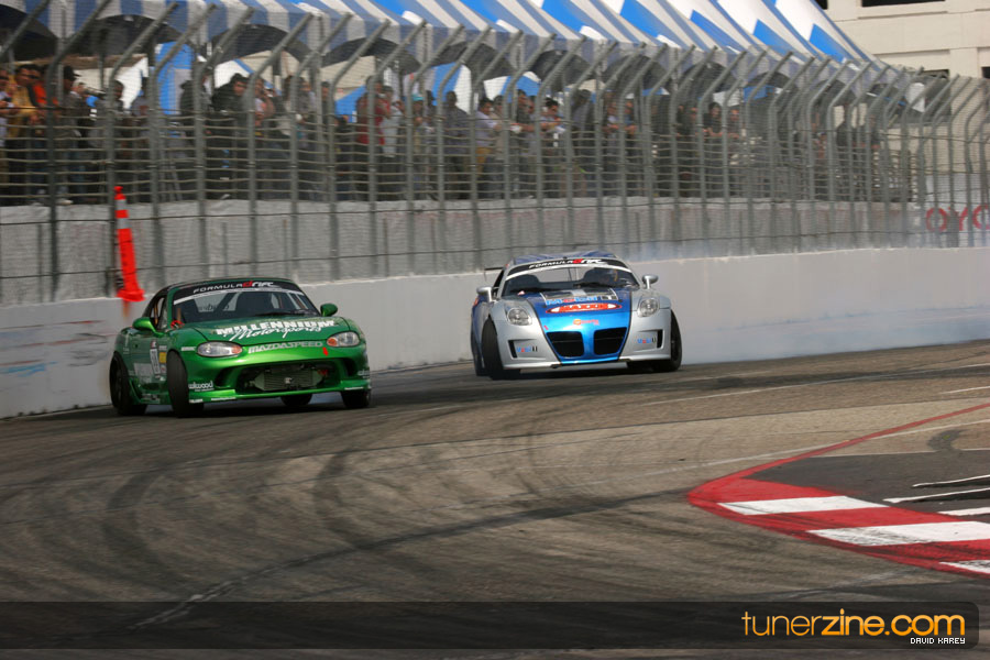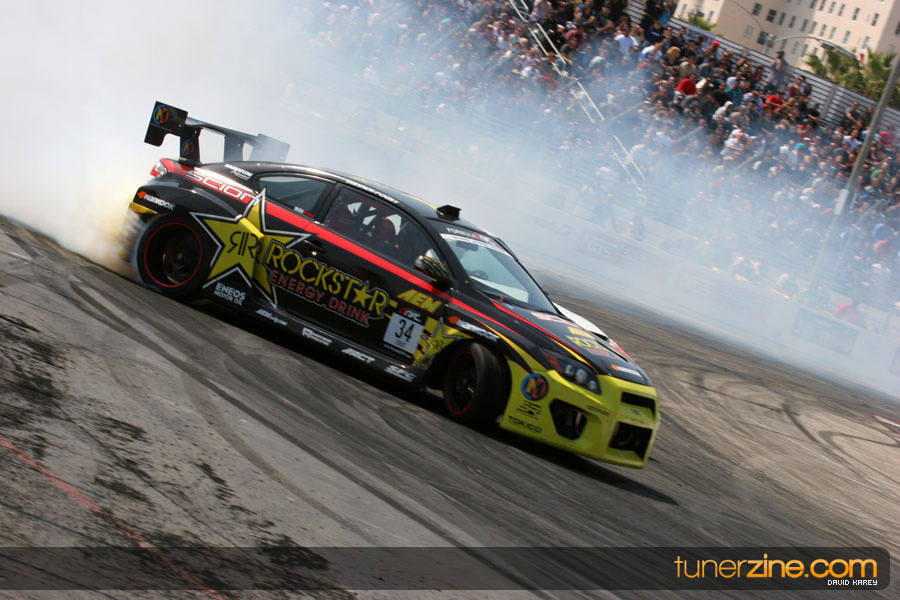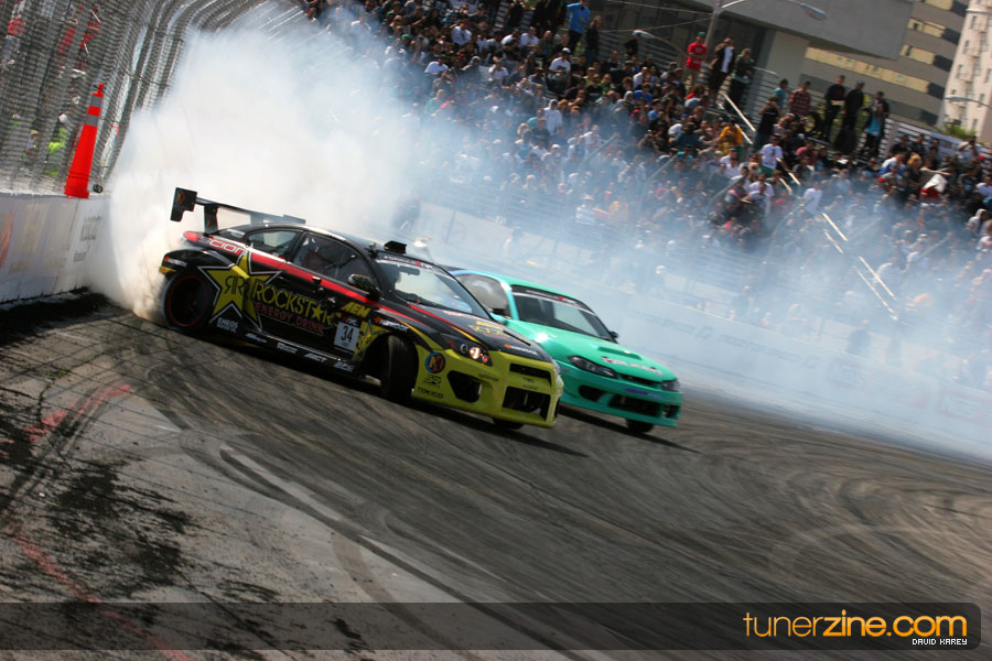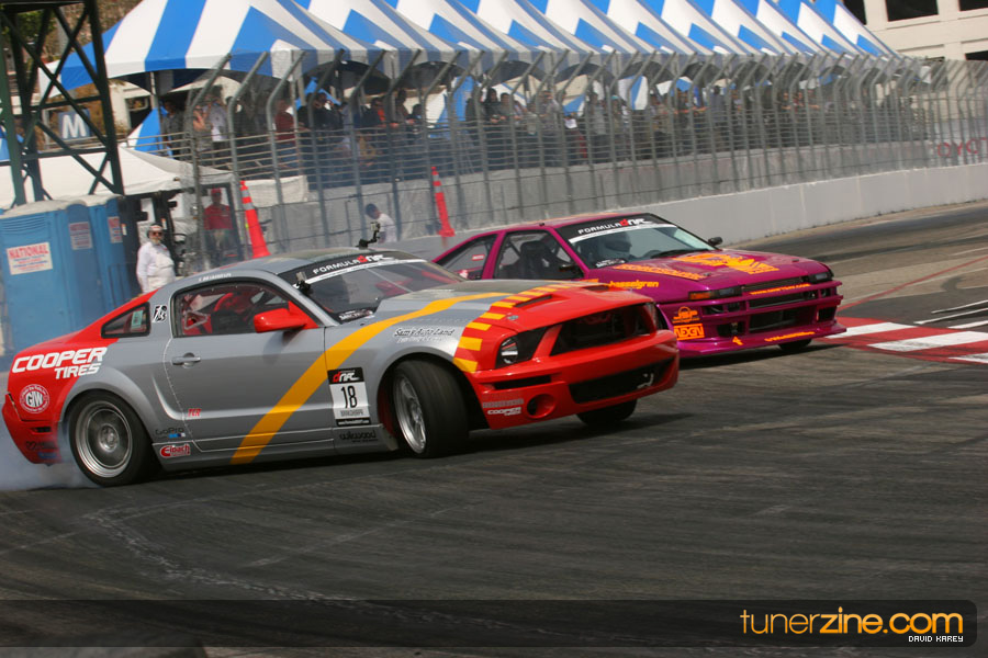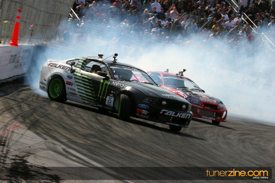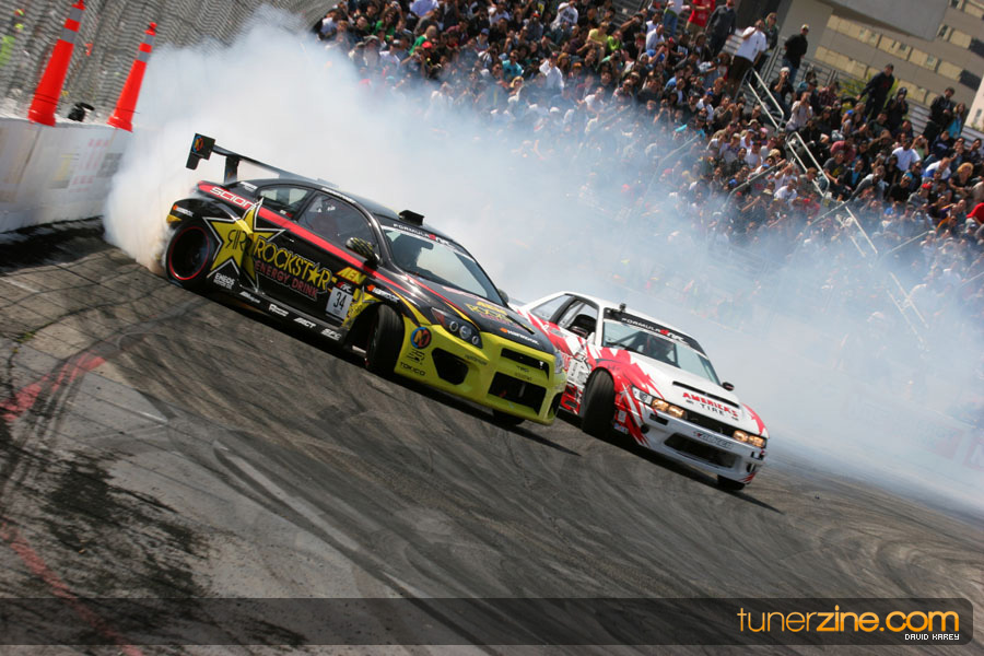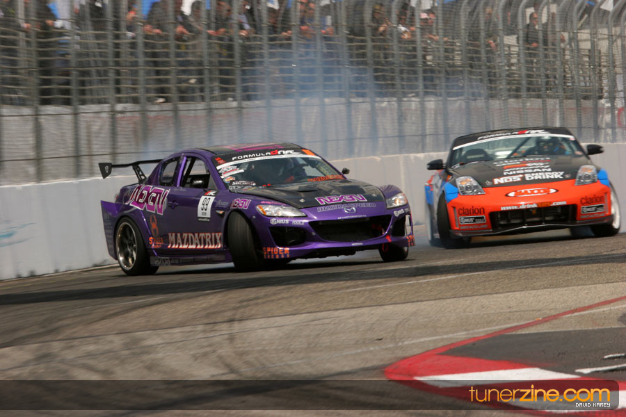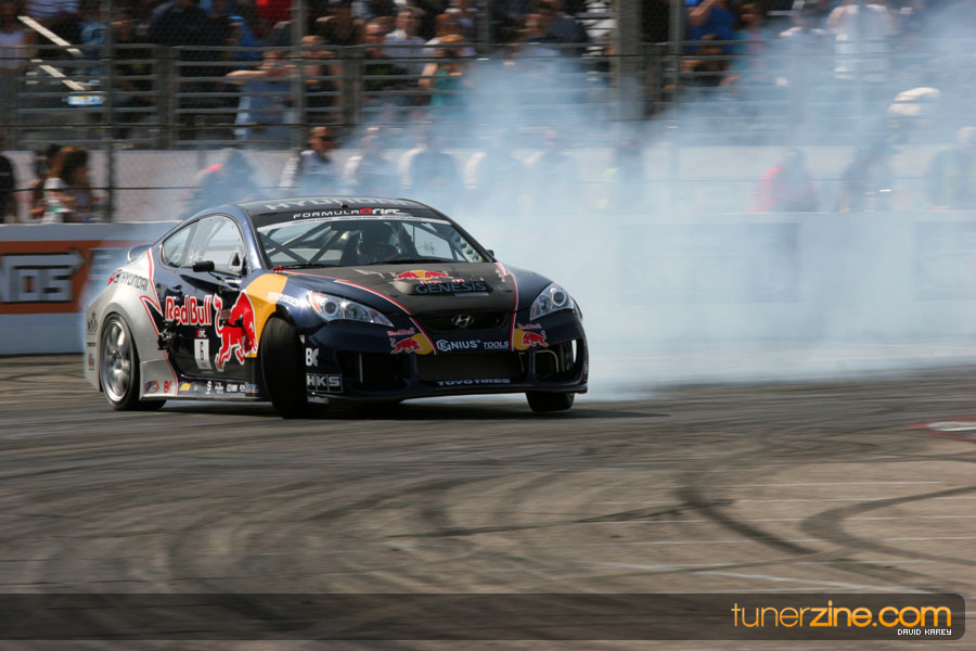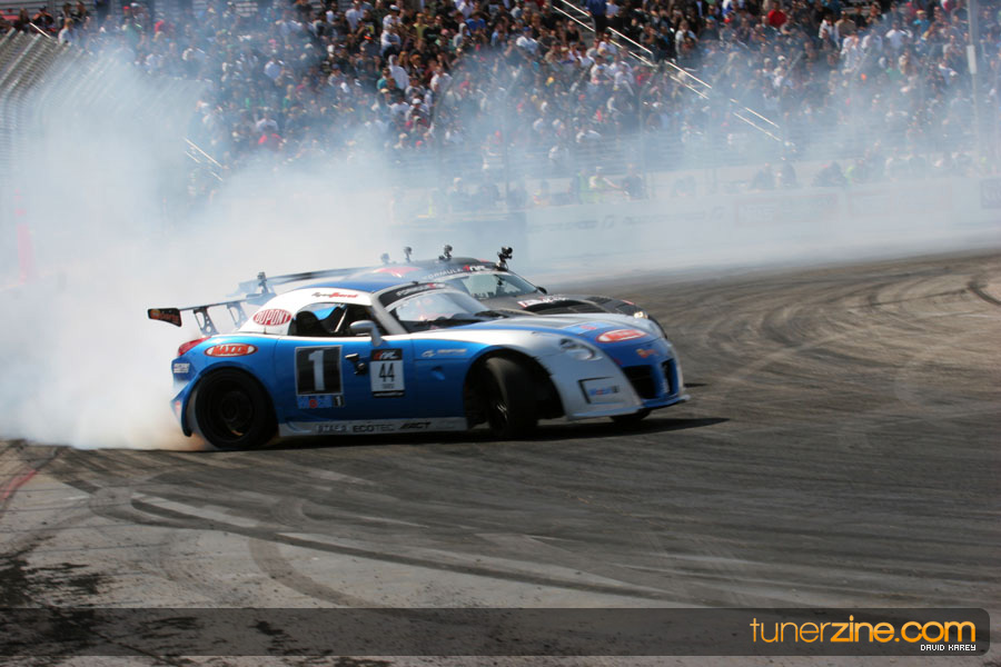 The Long Beach Grand Prix Street Course hosted the first competition of the 2010 season of Formula DRIFT. The venue was packed with reserved seating selling out before the main event opened the doors and the crowds filled the grandstands, pits, and paddock. The event also provided plenty of additional features and attractions that included the debut of the new Miss Formula DRIFT, Melyssa Grace, the One of One Car Show produced by Fatlace, and MetroPCS / Sanctioned brought out celebrity guest and world famous tattoo artist Mister Cartoon. The thousands of fans were treated to world class drifting with over 13 countries represented in the competition.