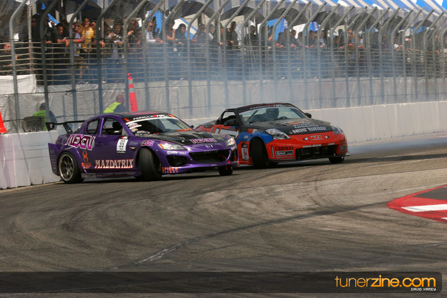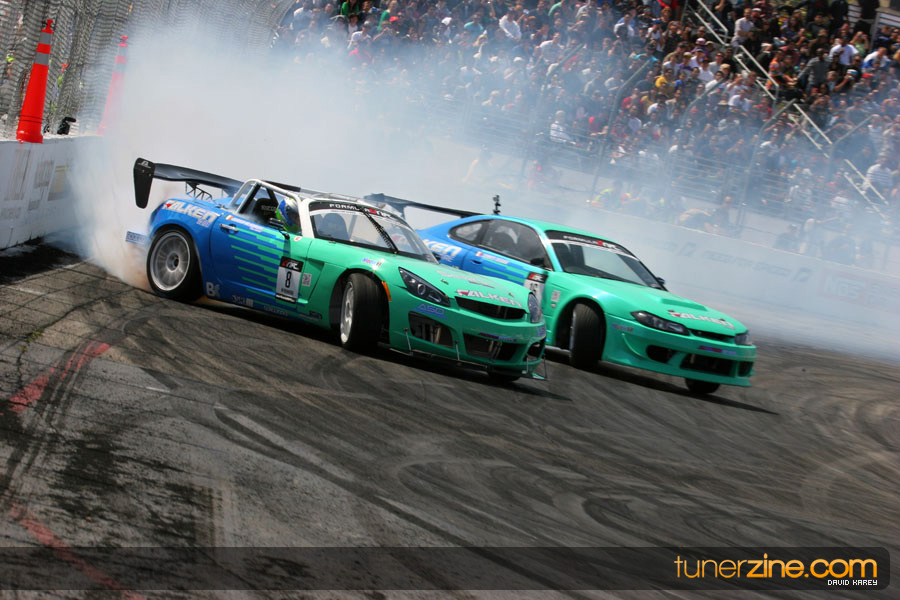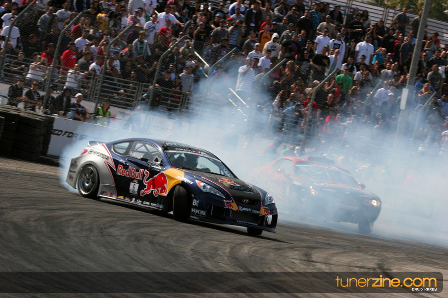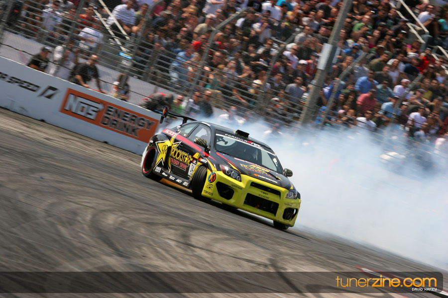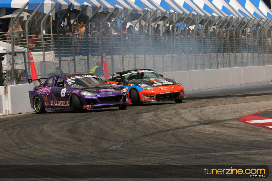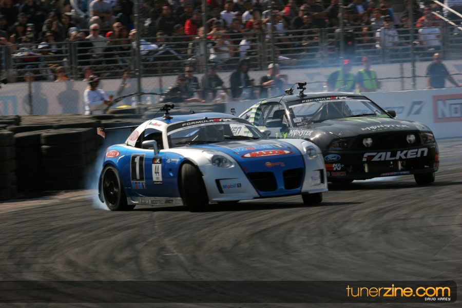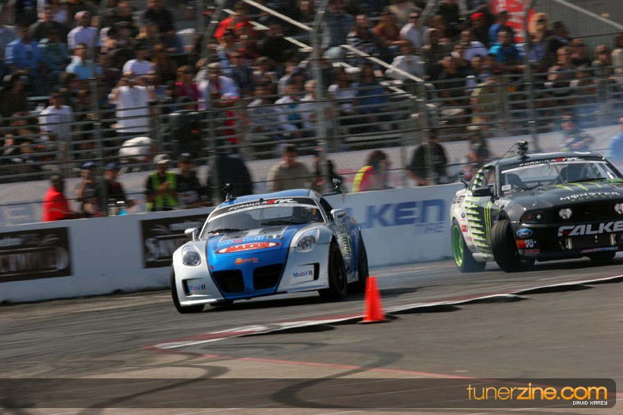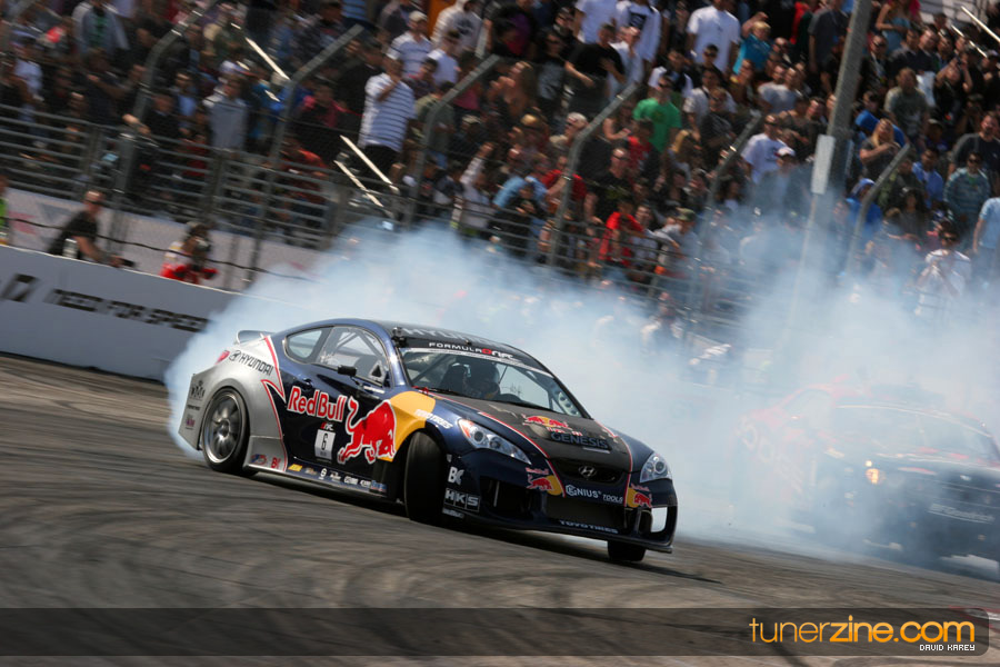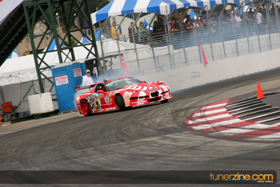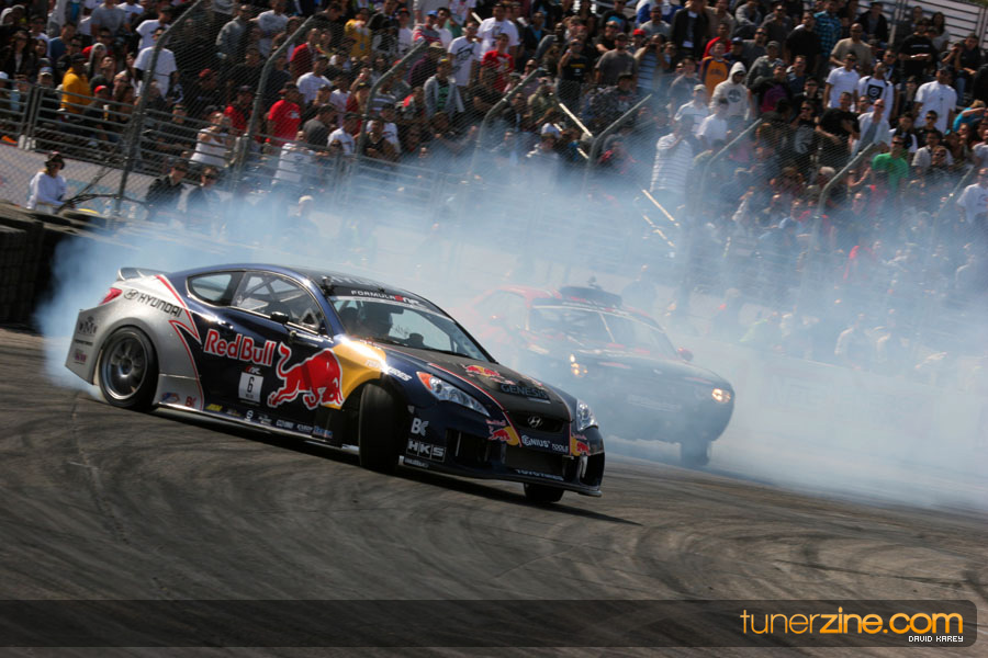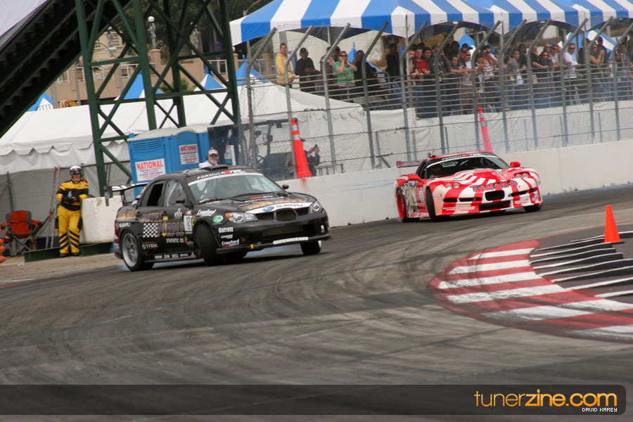 The Long Beach Grand Prix Street Course hosted the first competition of the 2010 season of Formula DRIFT. The venue was packed with reserved seating selling out before the main event opened the doors and the crowds filled the grandstands, pits, and paddock. The event also provided plenty of additional features and attractions that included the debut of the new Miss Formula DRIFT, Melyssa Grace, the One of One Car Show produced by Fatlace, and MetroPCS / Sanctioned brought out celebrity guest and world famous tattoo artist Mister Cartoon. The thousands of fans were treated to world class drifting with over 13 countries represented in the competition.
