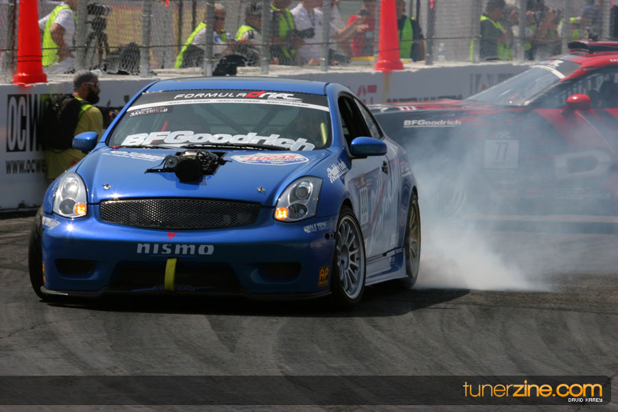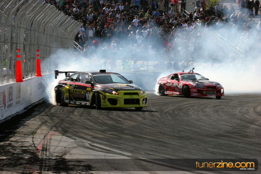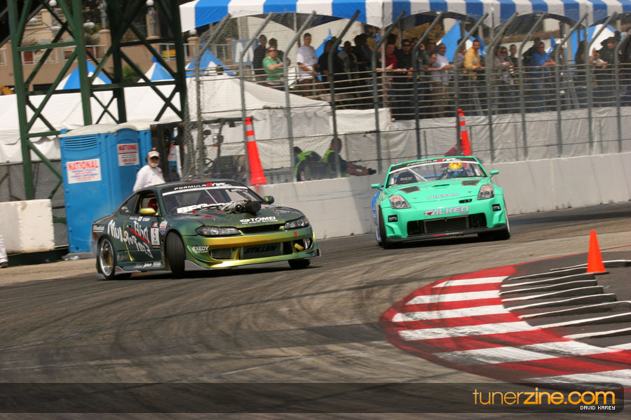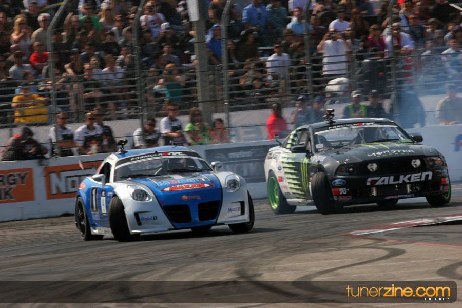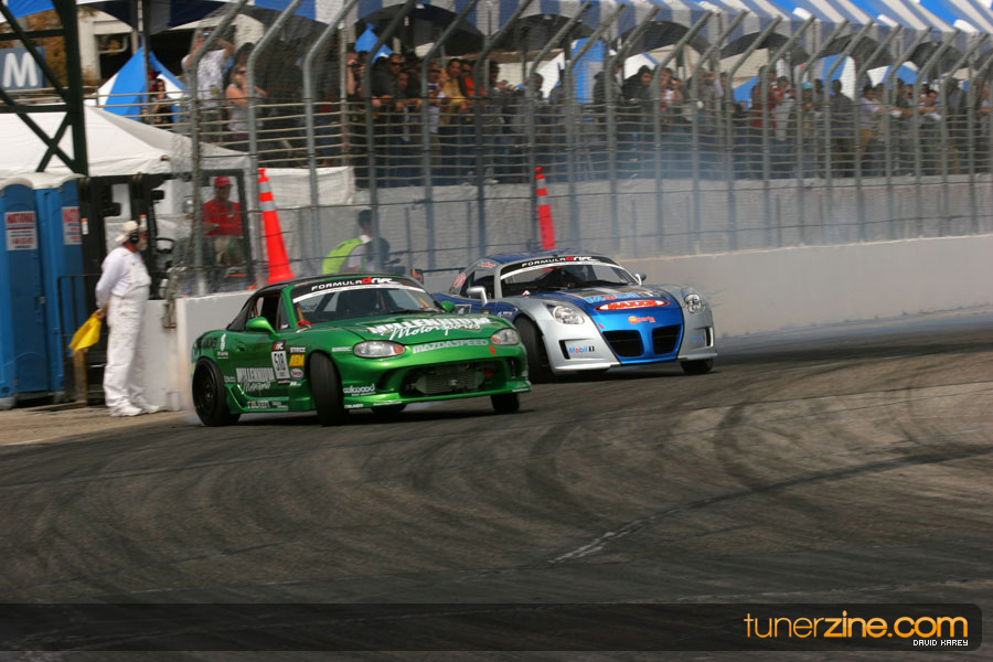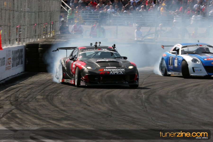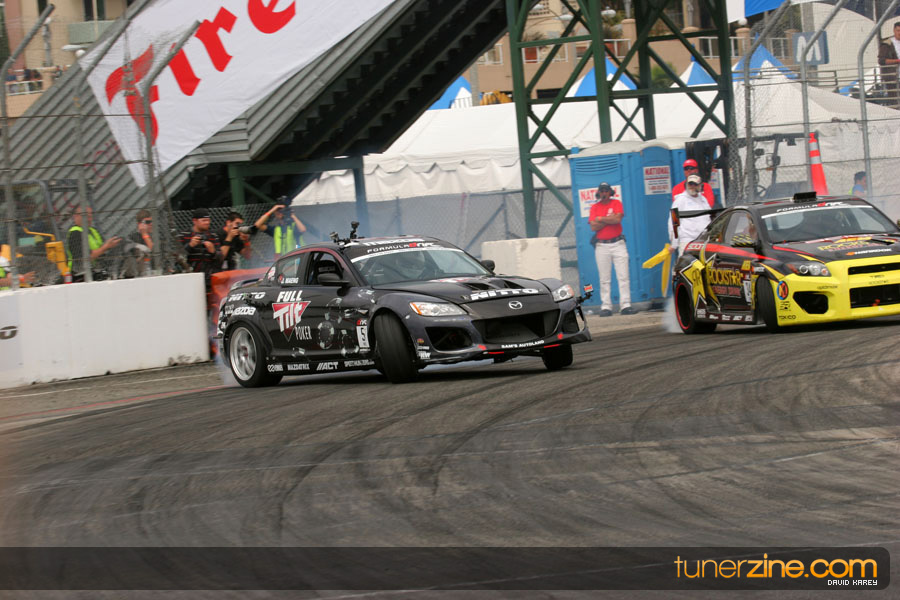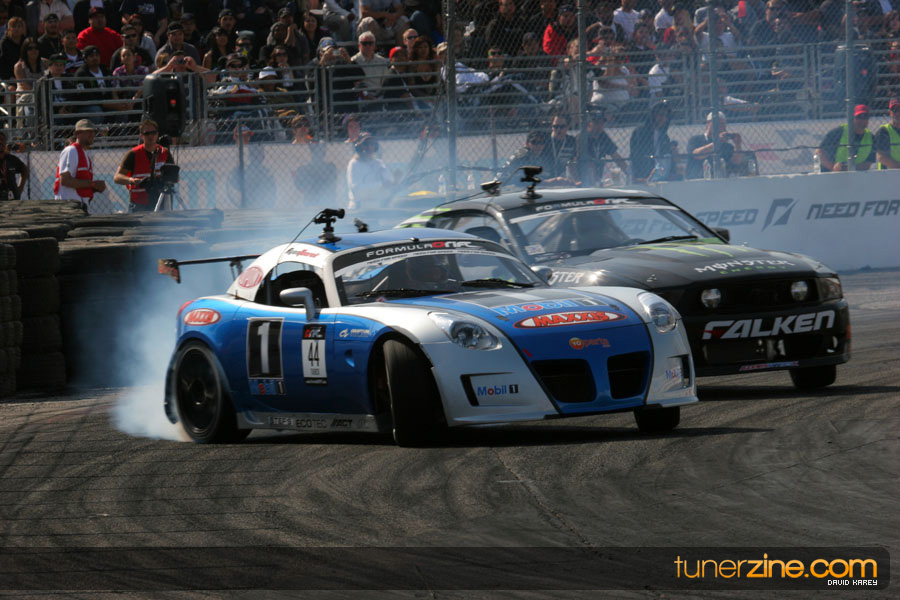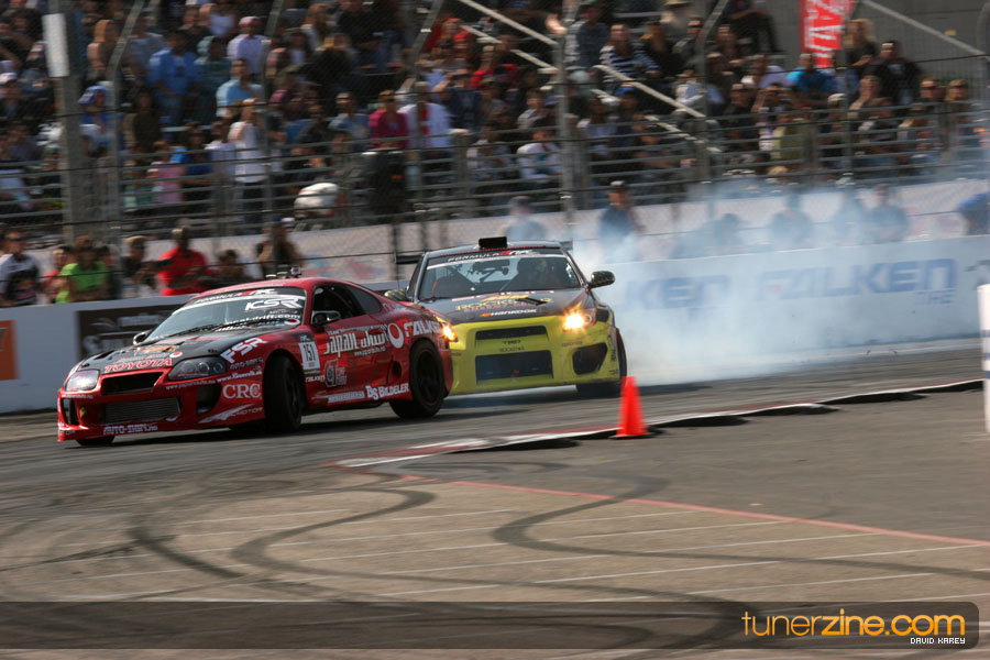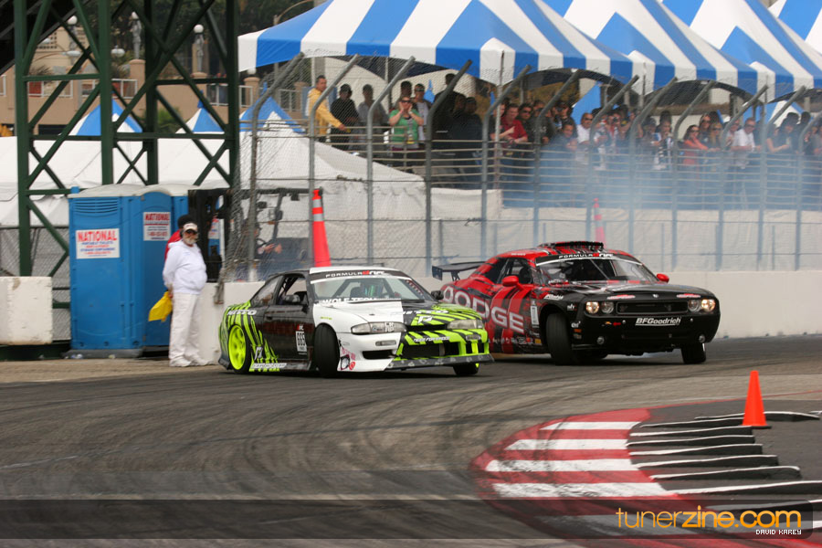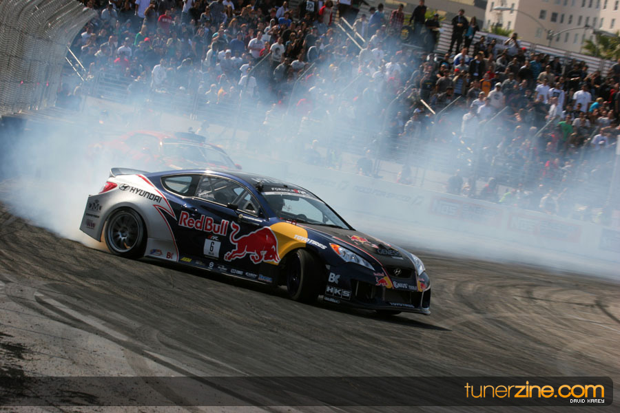 The Long Beach Grand Prix Street Course hosted the first competition of the 2010 season of Formula DRIFT. The venue was packed with reserved seating selling out before the main event opened the doors and the crowds filled the grandstands, pits, and paddock. The event also provided plenty of additional features and attractions that included the debut of the new Miss Formula DRIFT, Melyssa Grace, the One of One Car Show produced by Fatlace, and MetroPCS / Sanctioned brought out celebrity guest and world famous tattoo artist Mister Cartoon. The thousands of fans were treated to world class drifting with over 13 countries represented in the competition.