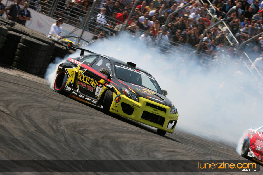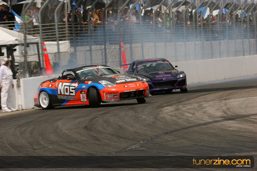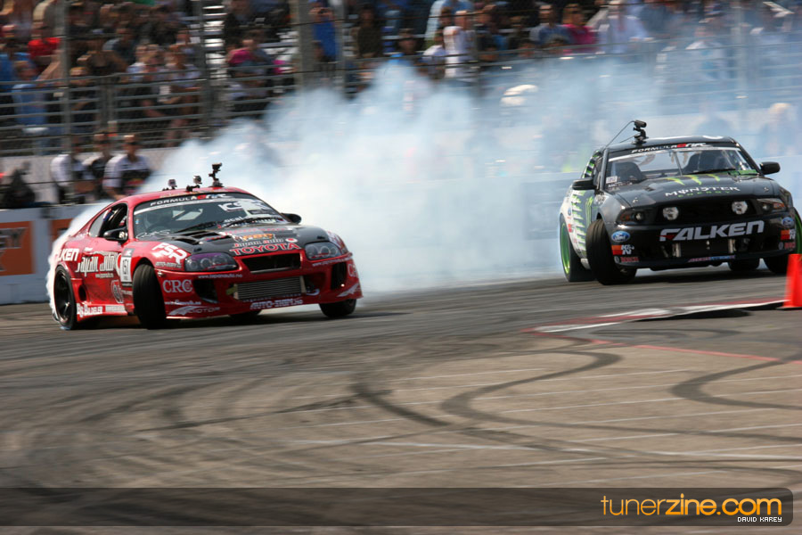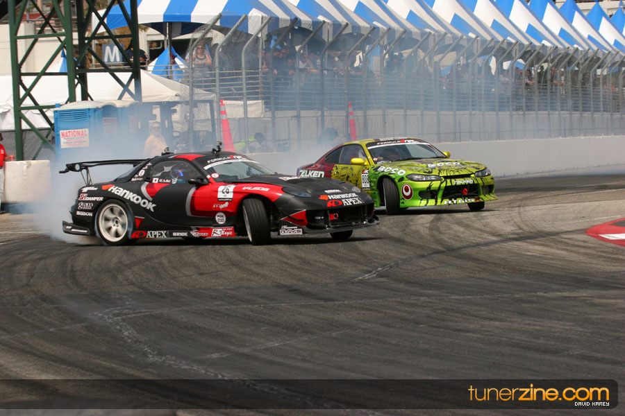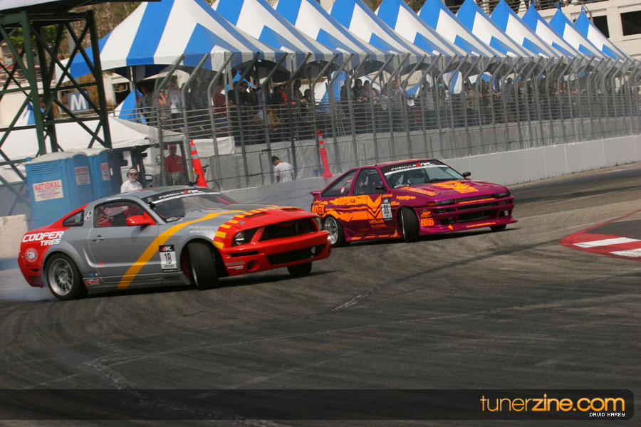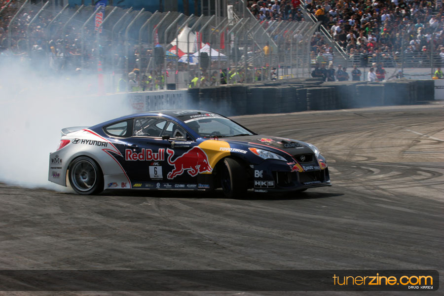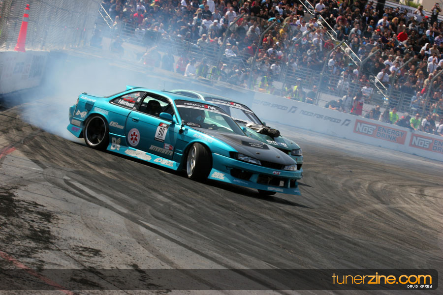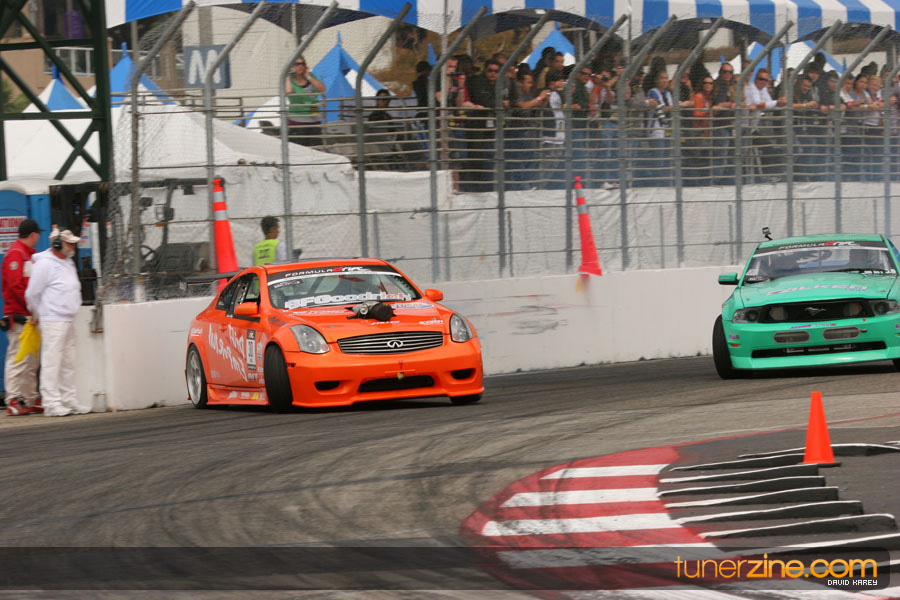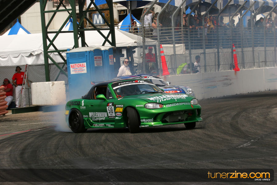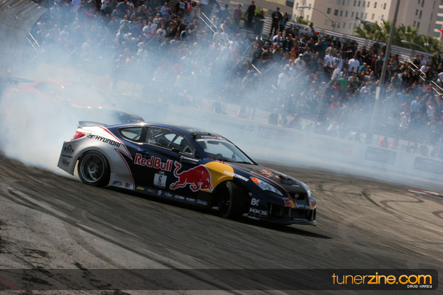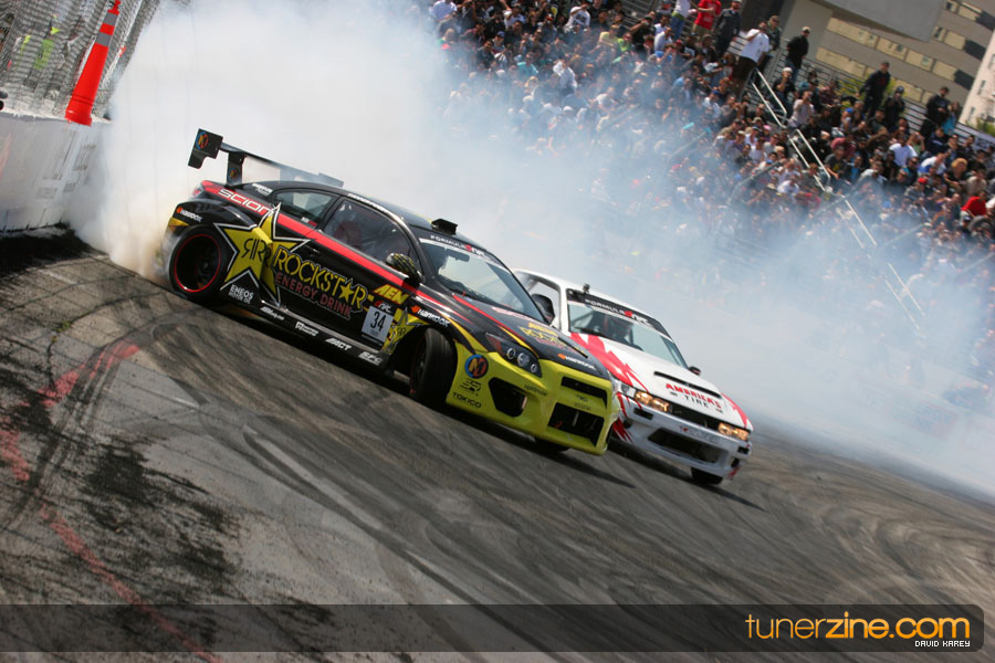 The Long Beach Grand Prix Street Course hosted the first competition of the 2010 season of Formula DRIFT. The venue was packed with reserved seating selling out before the main event opened the doors and the crowds filled the grandstands, pits, and paddock. The event also provided plenty of additional features and attractions that included the debut of the new Miss Formula DRIFT, Melyssa Grace, the One of One Car Show produced by Fatlace, and MetroPCS / Sanctioned brought out celebrity guest and world famous tattoo artist Mister Cartoon. The thousands of fans were treated to world class drifting with over 13 countries represented in the competition.