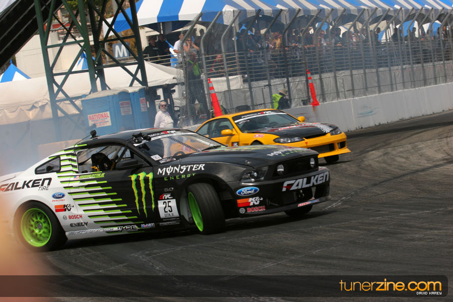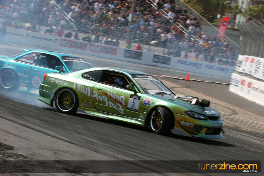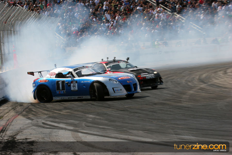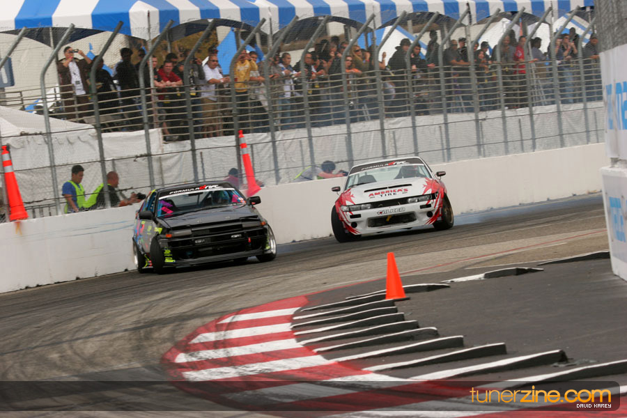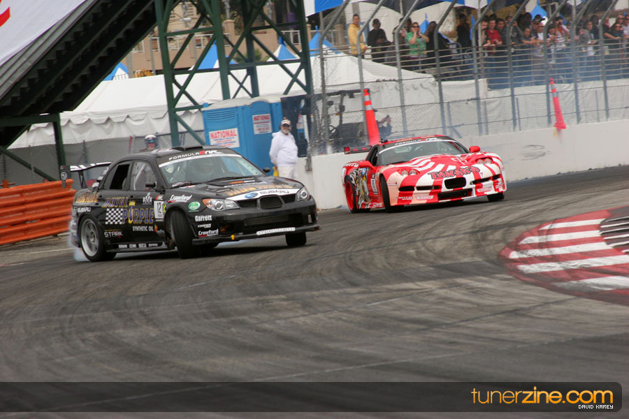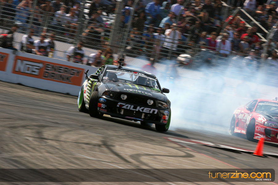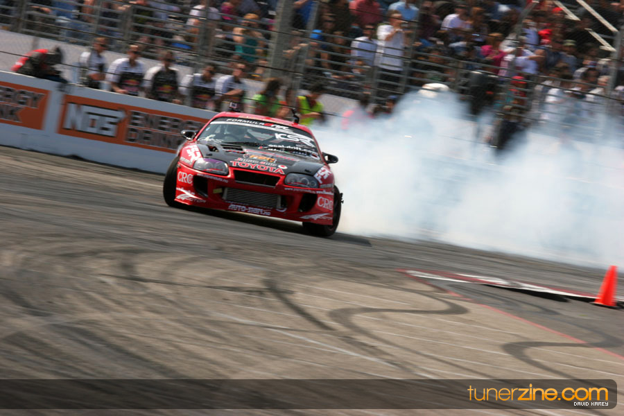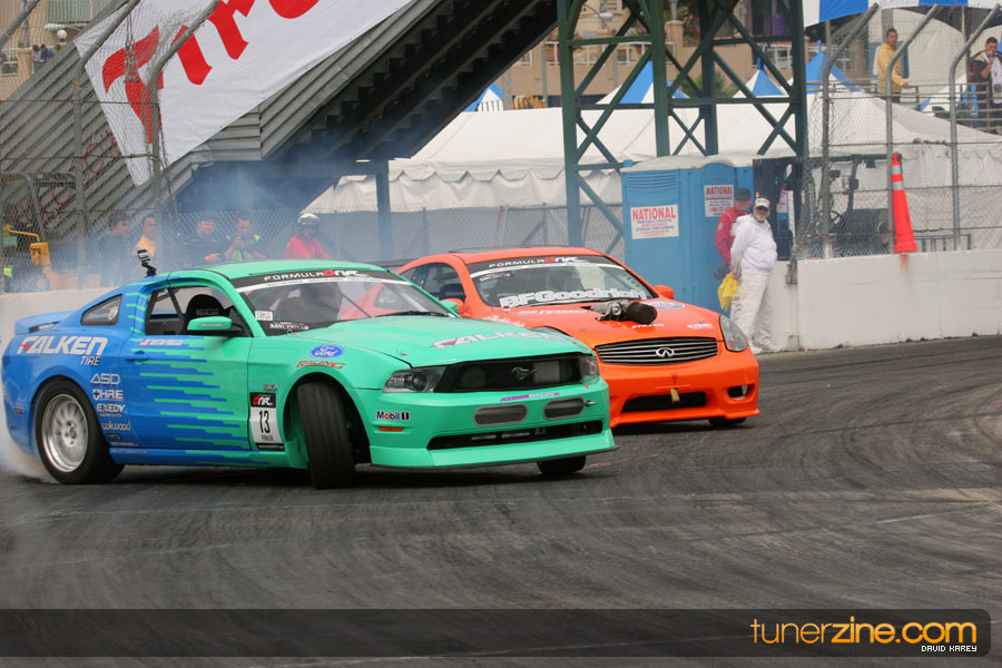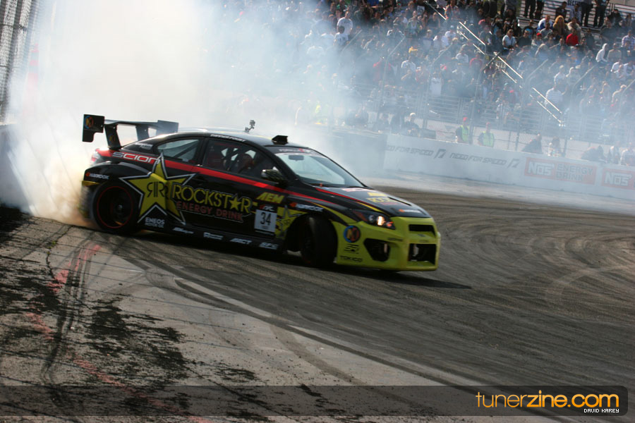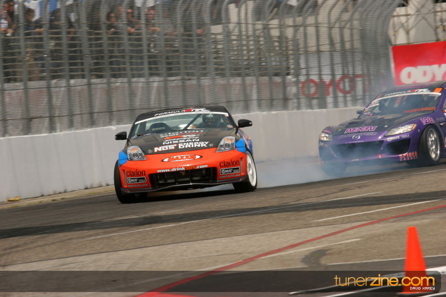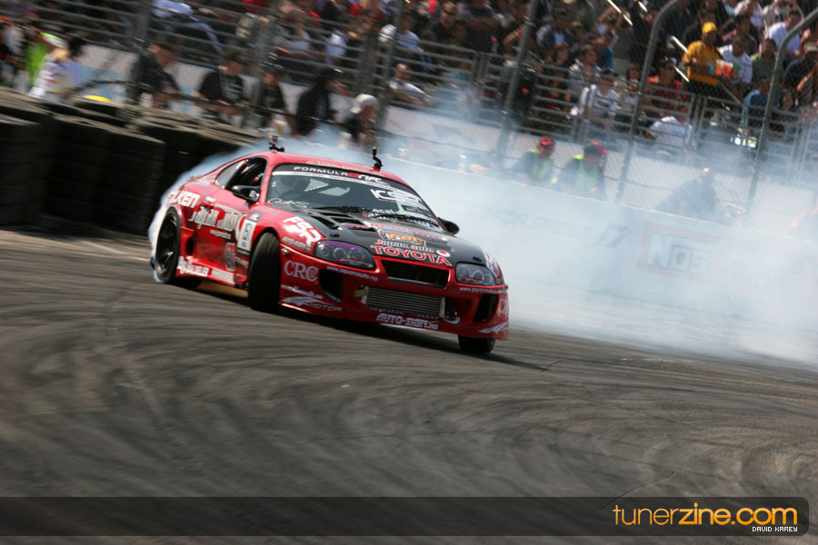 The Long Beach Grand Prix Street Course hosted the first competition of the 2010 season of Formula DRIFT. The venue was packed with reserved seating selling out before the main event opened the doors and the crowds filled the grandstands, pits, and paddock. The event also provided plenty of additional features and attractions that included the debut of the new Miss Formula DRIFT, Melyssa Grace, the One of One Car Show produced by Fatlace, and MetroPCS / Sanctioned brought out celebrity guest and world famous tattoo artist Mister Cartoon. The thousands of fans were treated to world class drifting with over 13 countries represented in the competition.