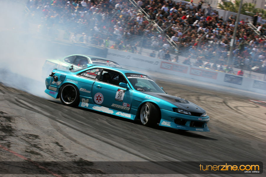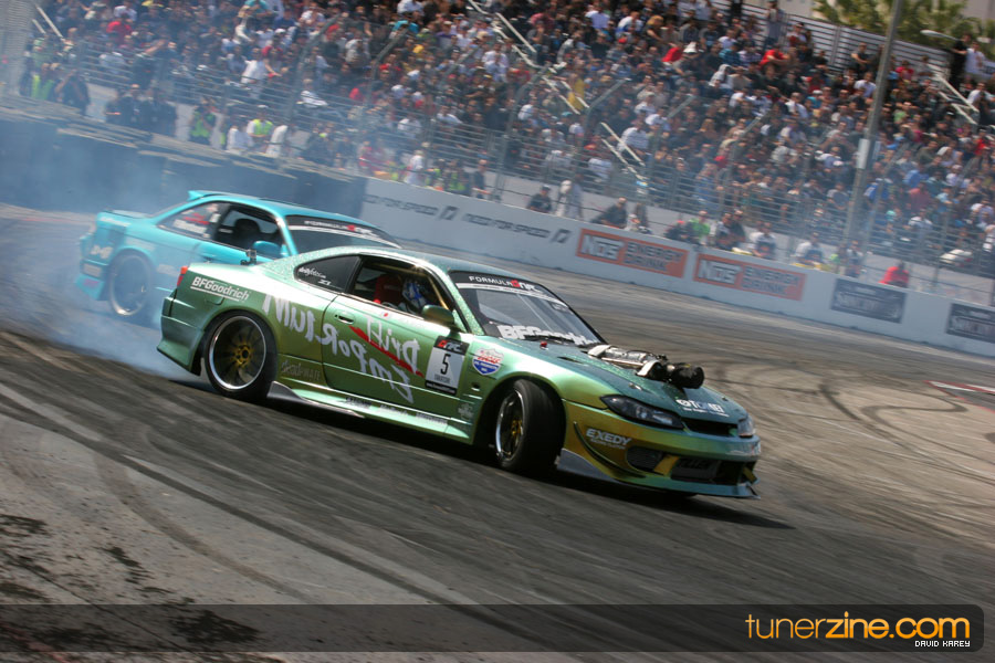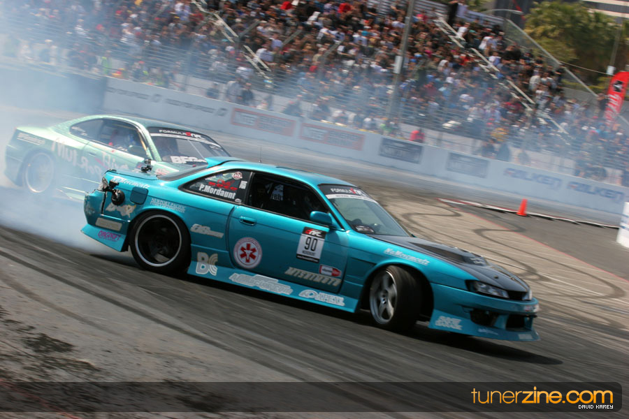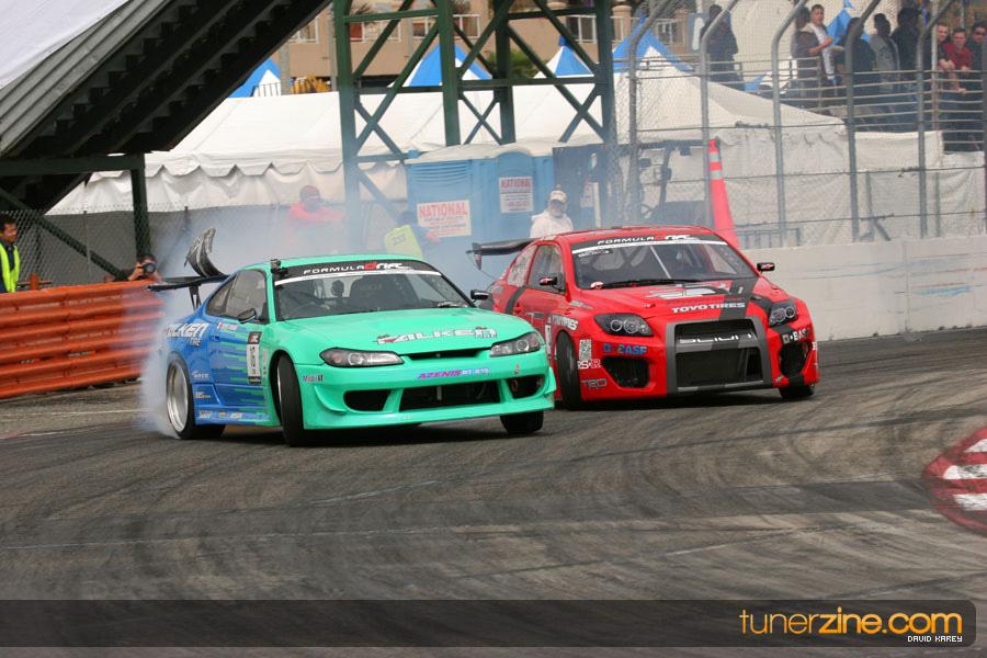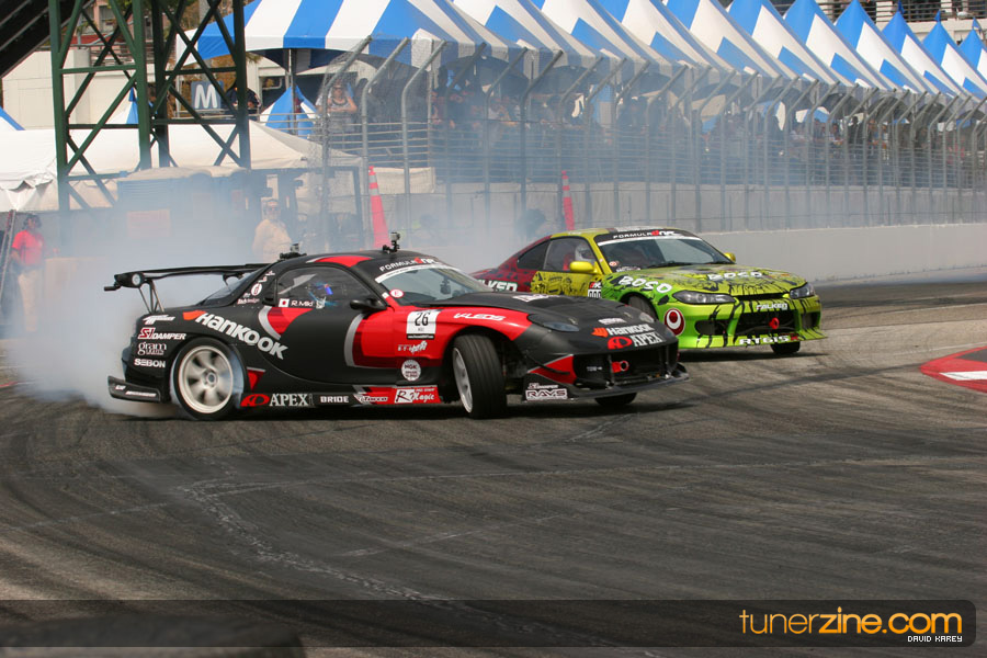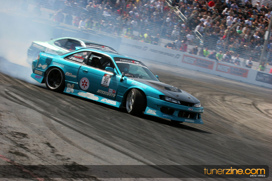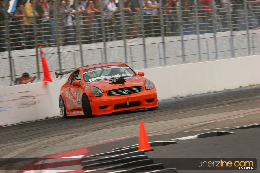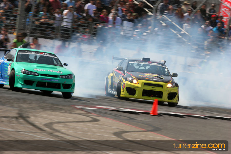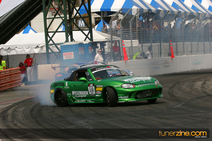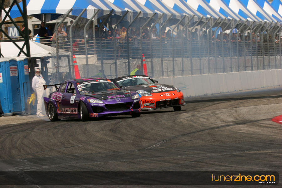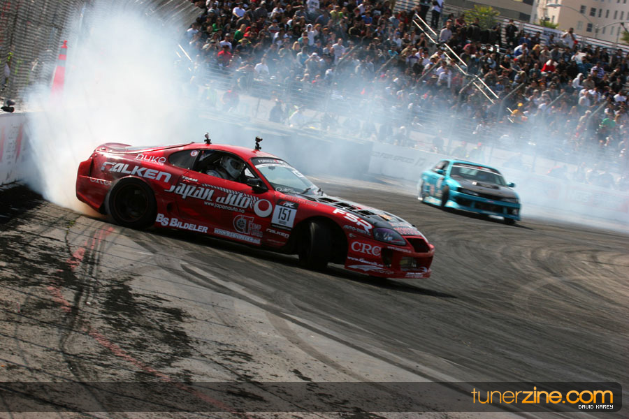 The Long Beach Grand Prix Street Course hosted the first competition of the 2010 season of Formula DRIFT. The venue was packed with reserved seating selling out before the main event opened the doors and the crowds filled the grandstands, pits, and paddock. The event also provided plenty of additional features and attractions that included the debut of the new Miss Formula DRIFT, Melyssa Grace, the One of One Car Show produced by Fatlace, and MetroPCS / Sanctioned brought out celebrity guest and world famous tattoo artist Mister Cartoon. The thousands of fans were treated to world class drifting with over 13 countries represented in the competition.