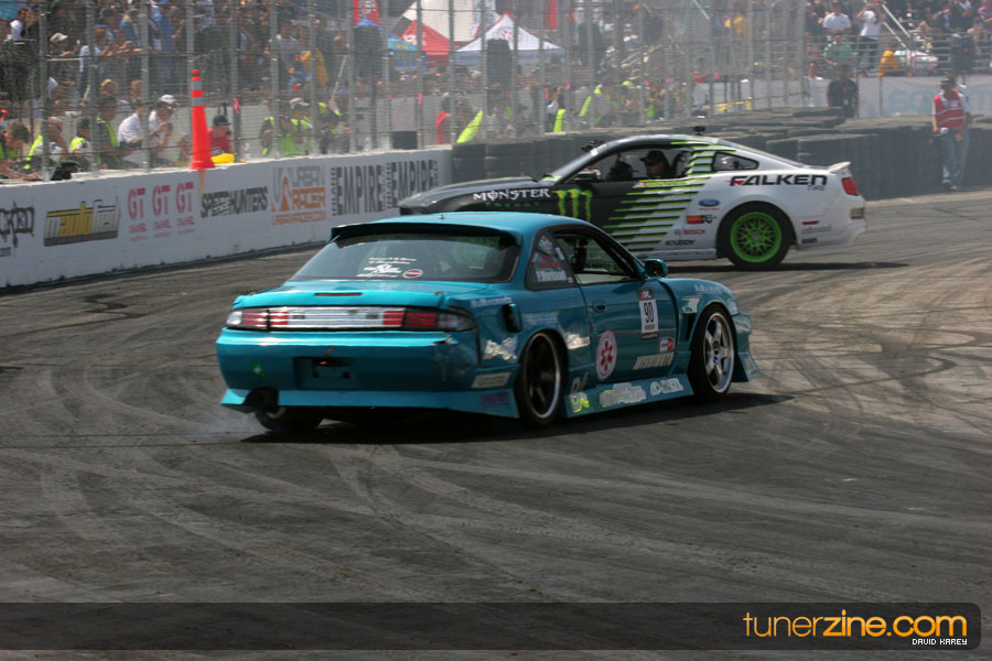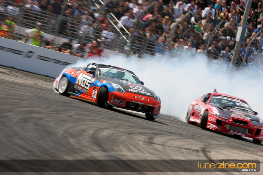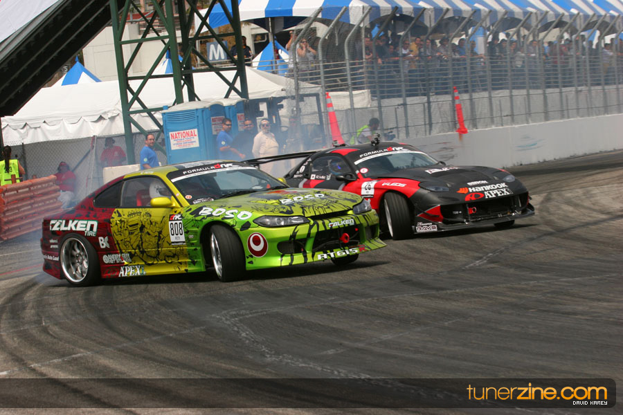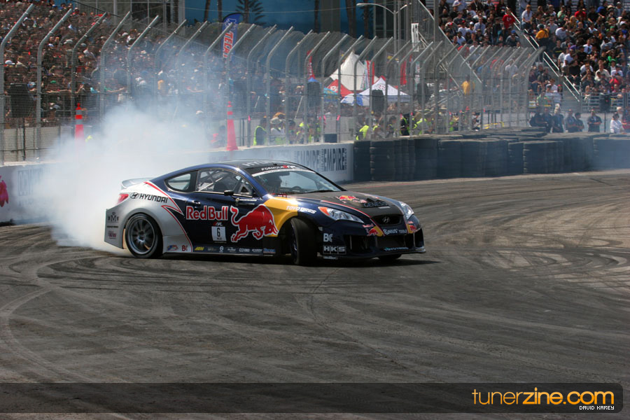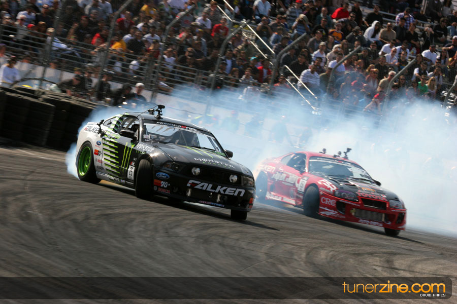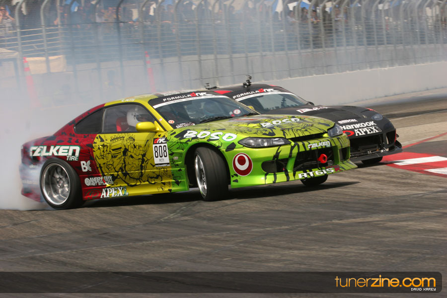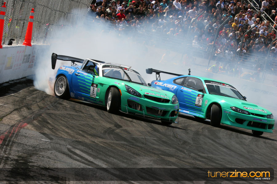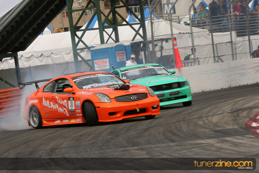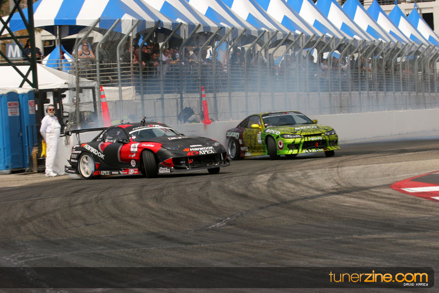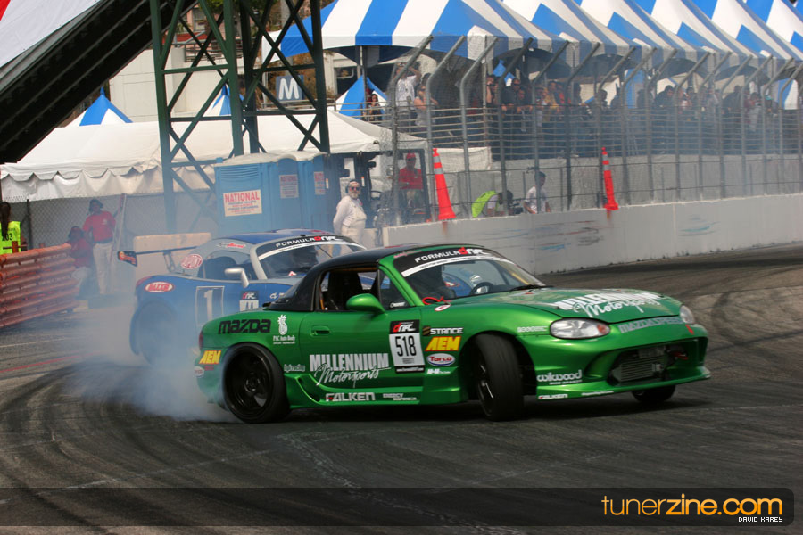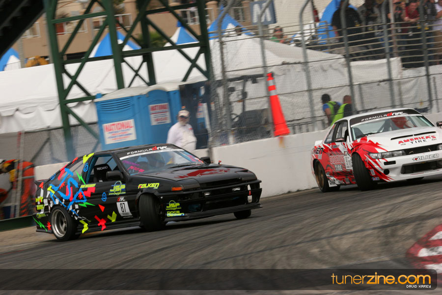 The Long Beach Grand Prix Street Course hosted the first competition of the 2010 season of Formula DRIFT. The venue was packed with reserved seating selling out before the main event opened the doors and the crowds filled the grandstands, pits, and paddock. The event also provided plenty of additional features and attractions that included the debut of the new Miss Formula DRIFT, Melyssa Grace, the One of One Car Show produced by Fatlace, and MetroPCS / Sanctioned brought out celebrity guest and world famous tattoo artist Mister Cartoon. The thousands of fans were treated to world class drifting with over 13 countries represented in the competition.