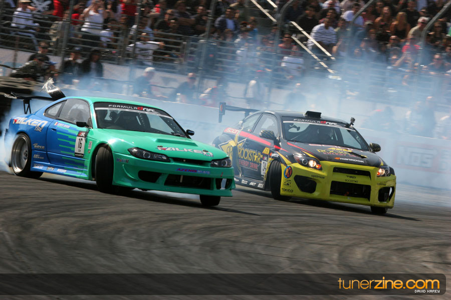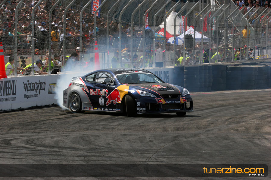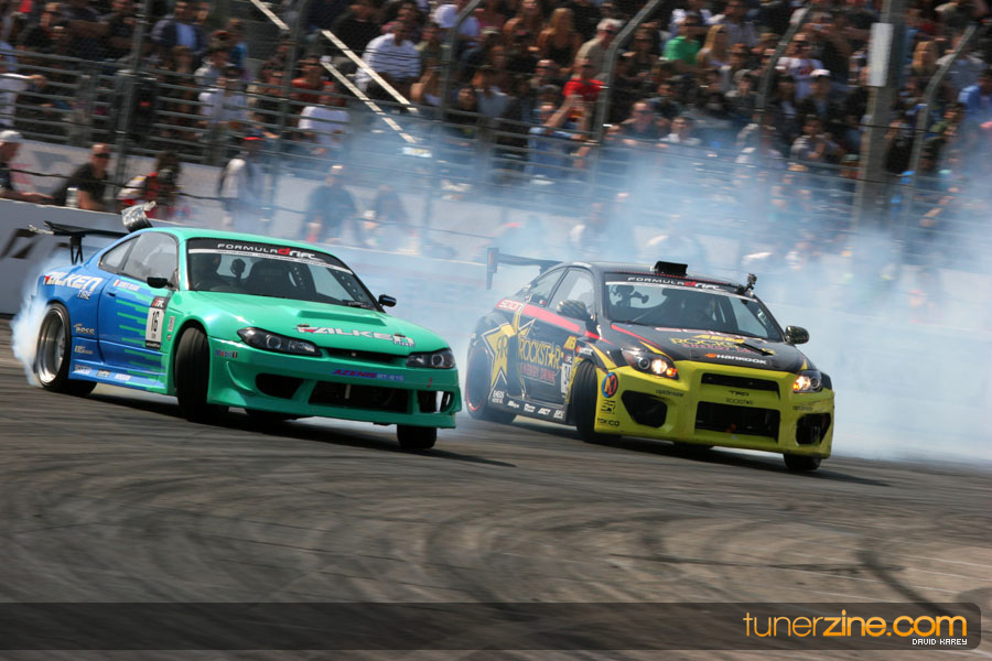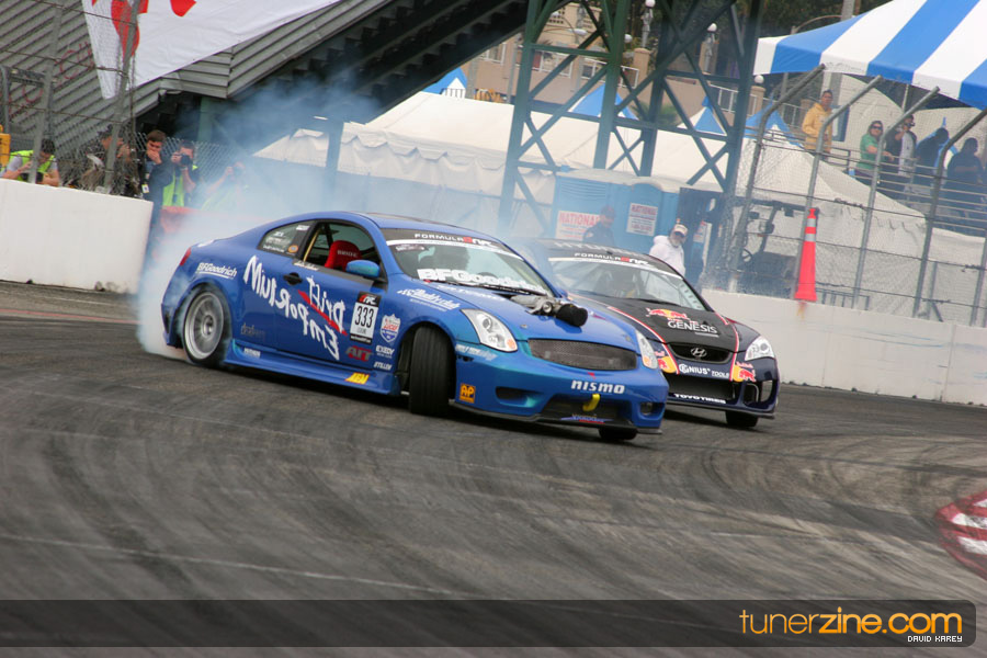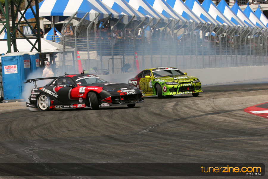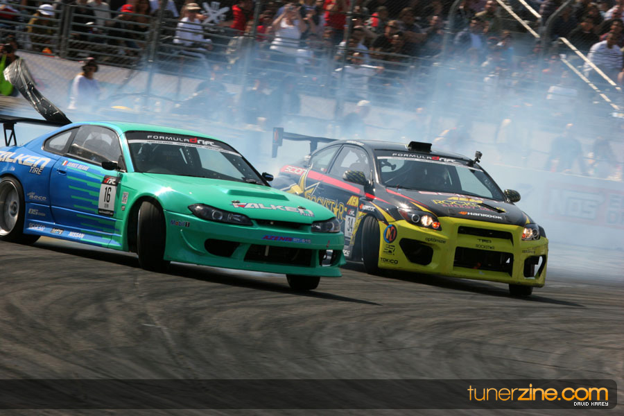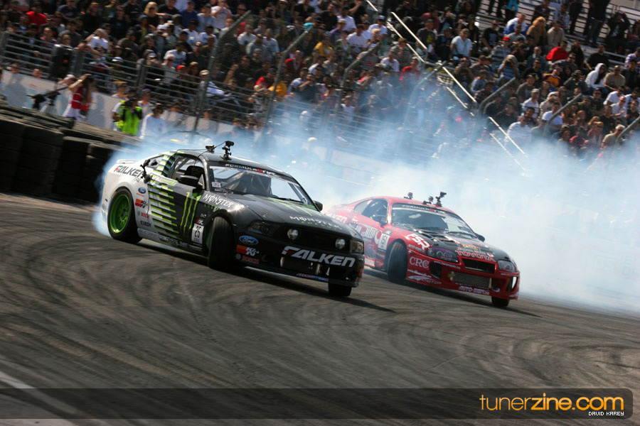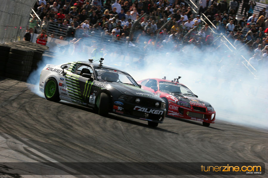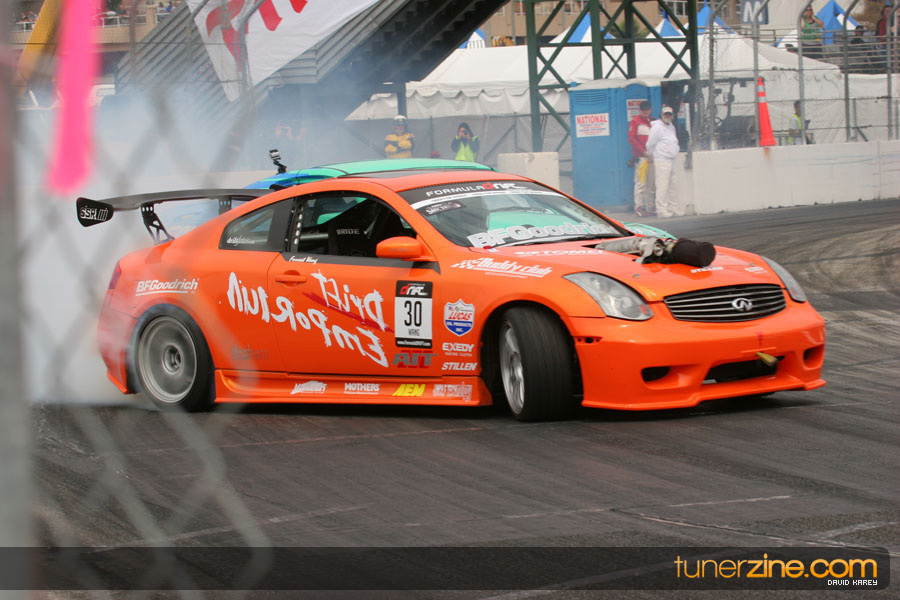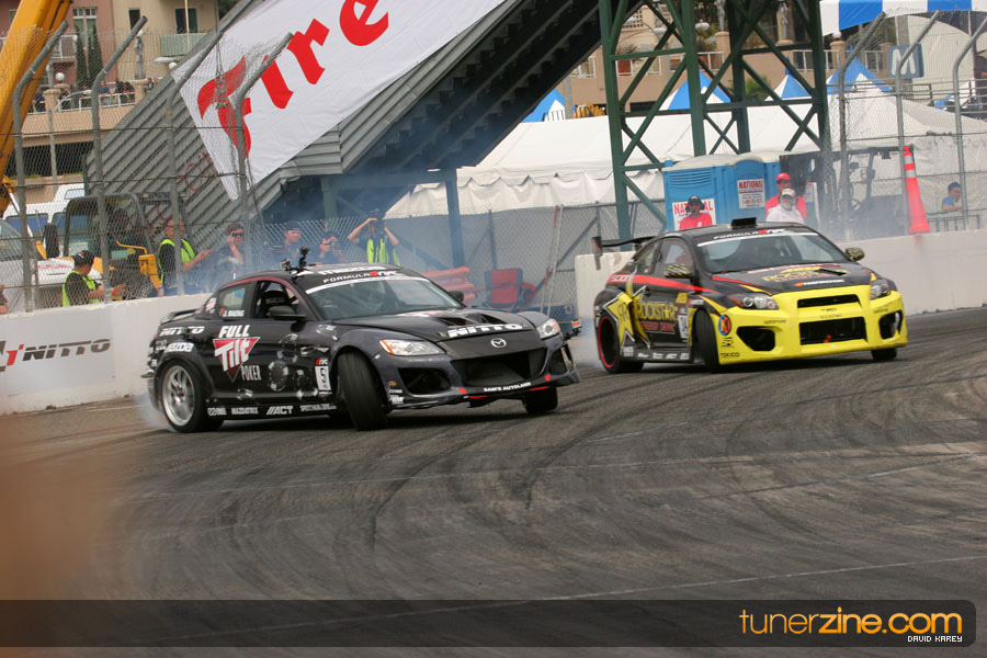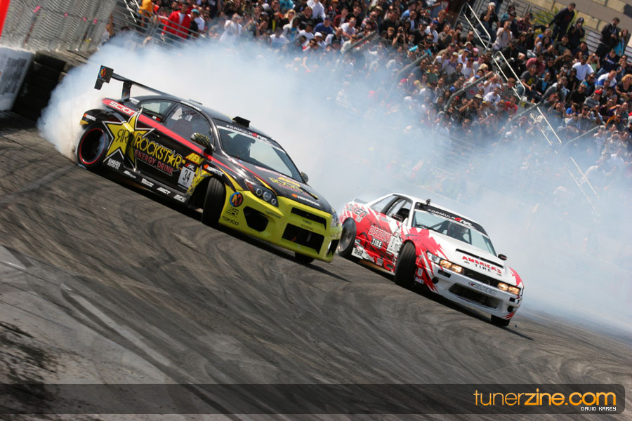 The Long Beach Grand Prix Street Course hosted the first competition of the 2010 season of Formula DRIFT. The venue was packed with reserved seating selling out before the main event opened the doors and the crowds filled the grandstands, pits, and paddock. The event also provided plenty of additional features and attractions that included the debut of the new Miss Formula DRIFT, Melyssa Grace, the One of One Car Show produced by Fatlace, and MetroPCS / Sanctioned brought out celebrity guest and world famous tattoo artist Mister Cartoon. The thousands of fans were treated to world class drifting with over 13 countries represented in the competition.
