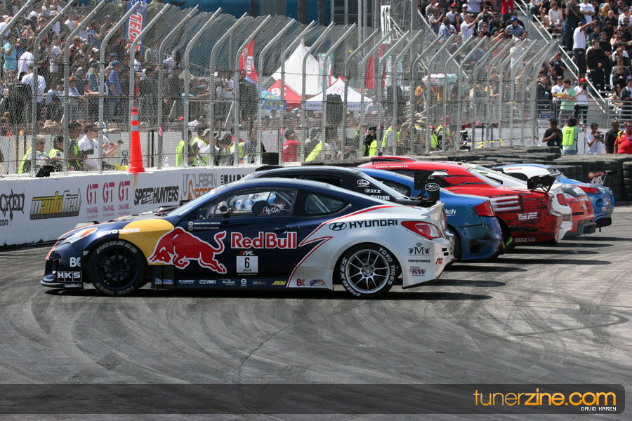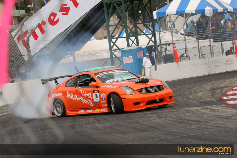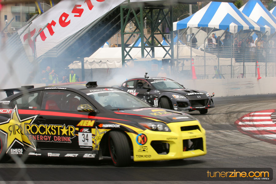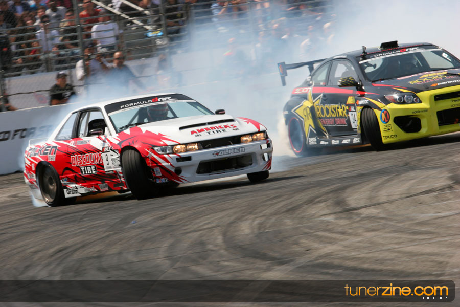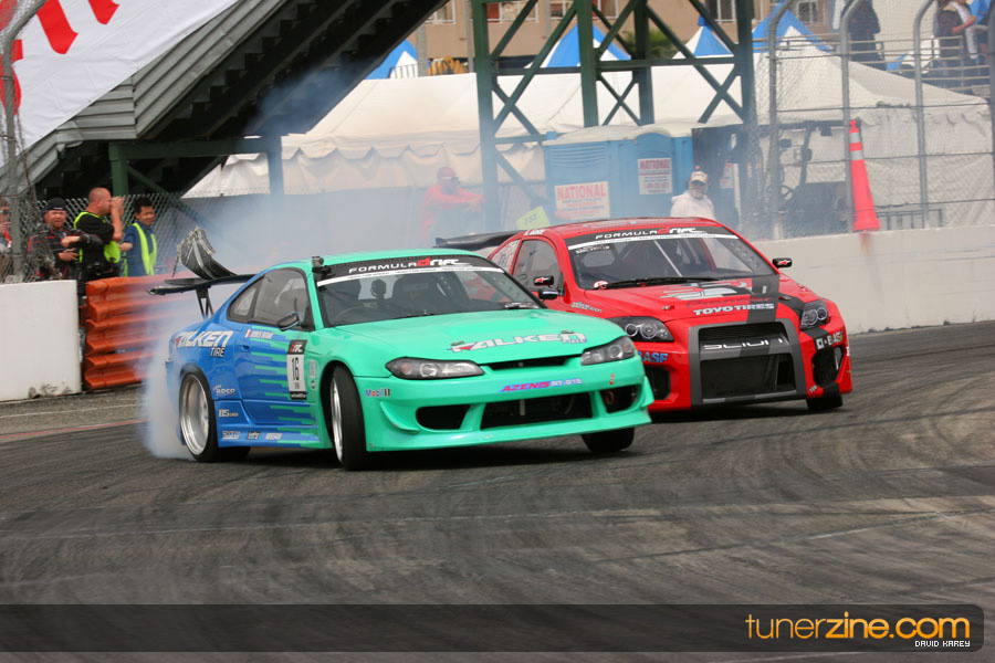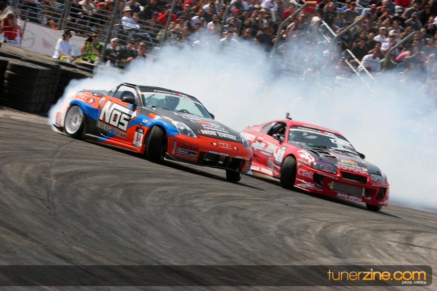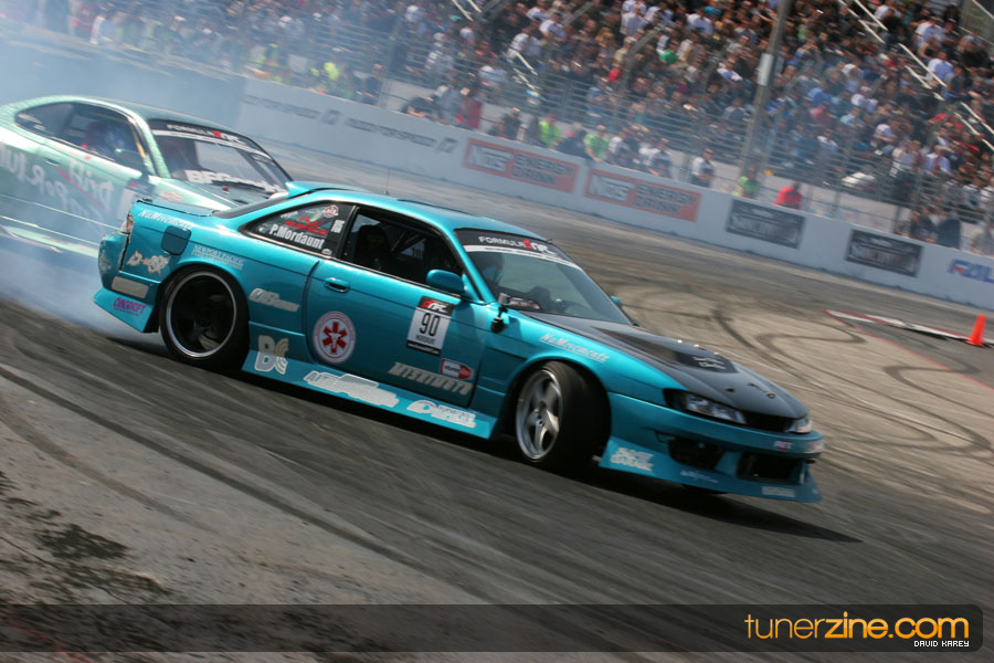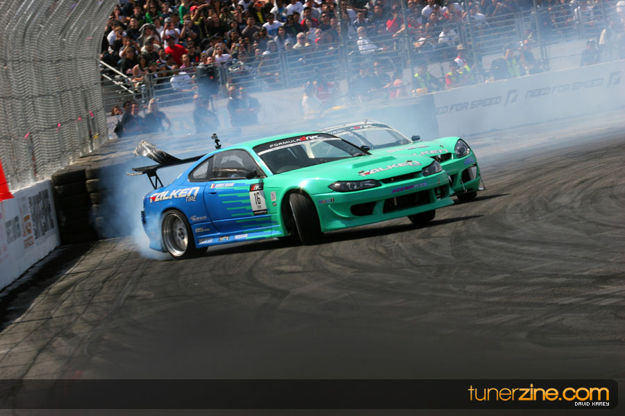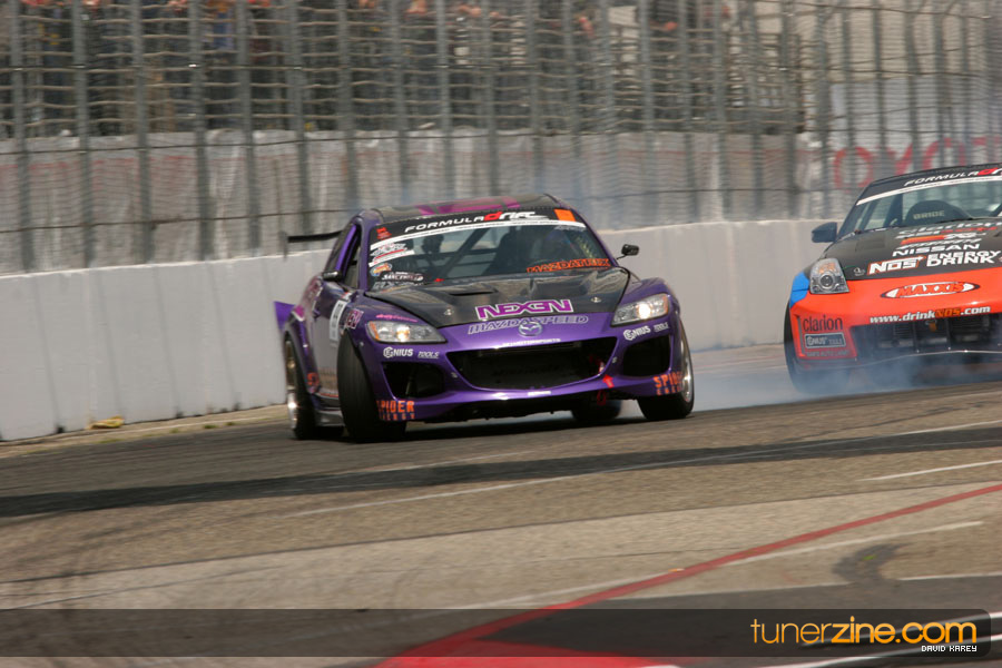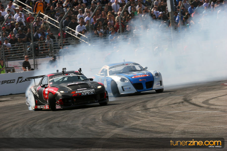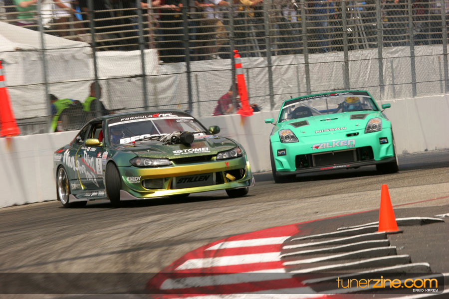 The Long Beach Grand Prix Street Course hosted the first competition of the 2010 season of Formula DRIFT. The venue was packed with reserved seating selling out before the main event opened the doors and the crowds filled the grandstands, pits, and paddock. The event also provided plenty of additional features and attractions that included the debut of the new Miss Formula DRIFT, Melyssa Grace, the One of One Car Show produced by Fatlace, and MetroPCS / Sanctioned brought out celebrity guest and world famous tattoo artist Mister Cartoon. The thousands of fans were treated to world class drifting with over 13 countries represented in the competition.