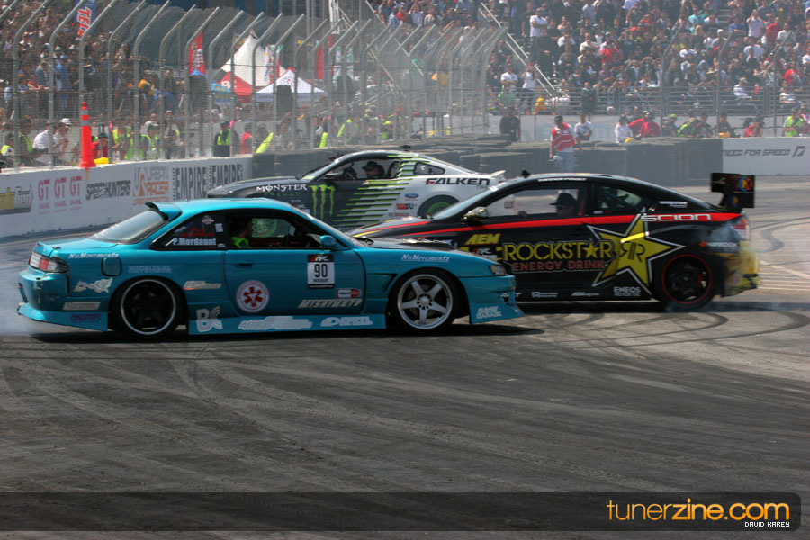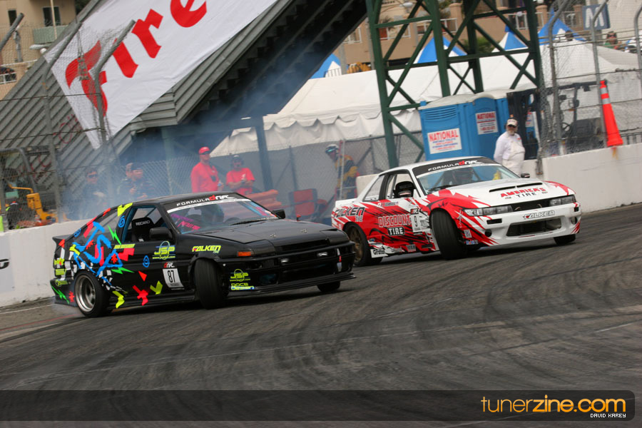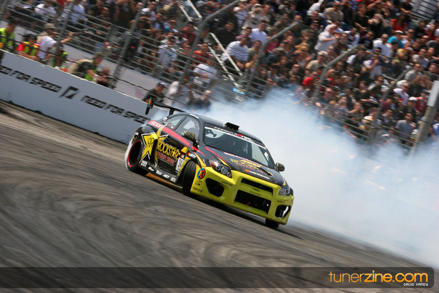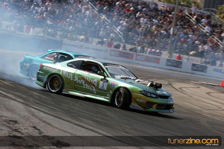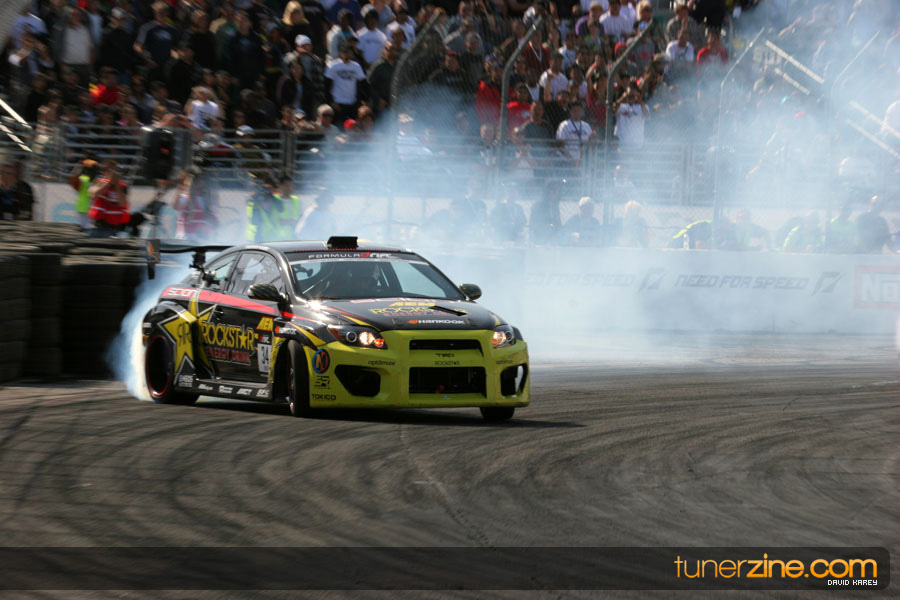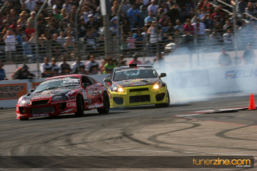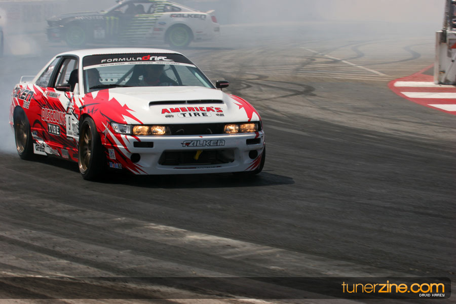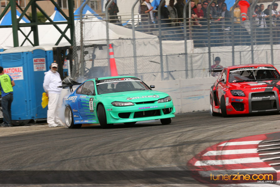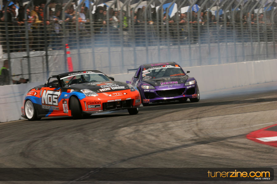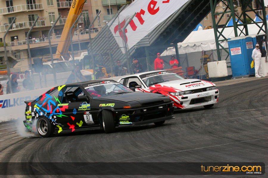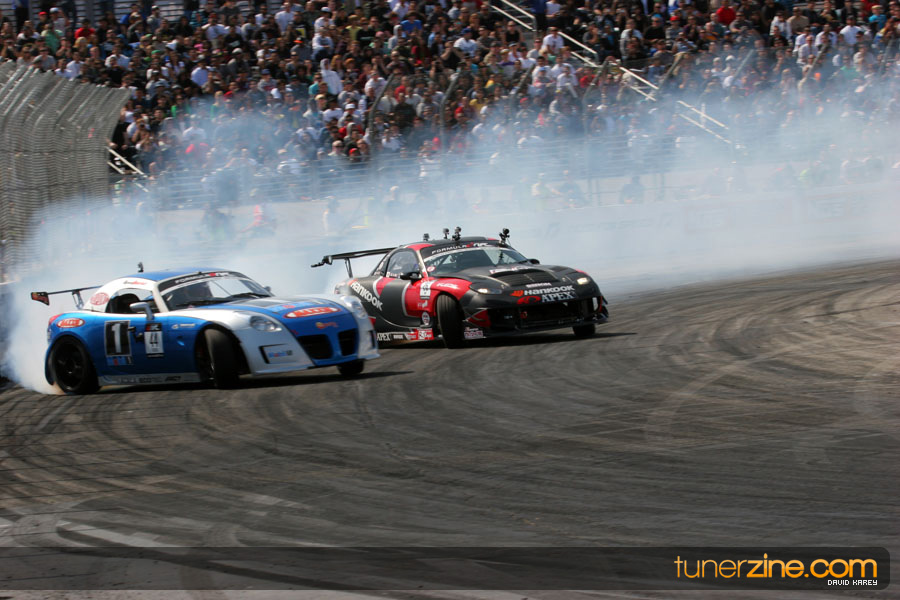 The Long Beach Grand Prix Street Course hosted the first competition of the 2010 season of Formula DRIFT. The venue was packed with reserved seating selling out before the main event opened the doors and the crowds filled the grandstands, pits, and paddock. The event also provided plenty of additional features and attractions that included the debut of the new Miss Formula DRIFT, Melyssa Grace, the One of One Car Show produced by Fatlace, and MetroPCS / Sanctioned brought out celebrity guest and world famous tattoo artist Mister Cartoon. The thousands of fans were treated to world class drifting with over 13 countries represented in the competition.