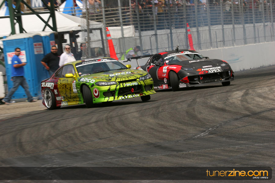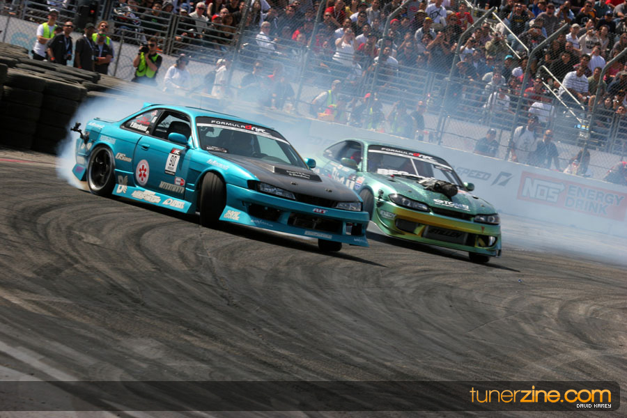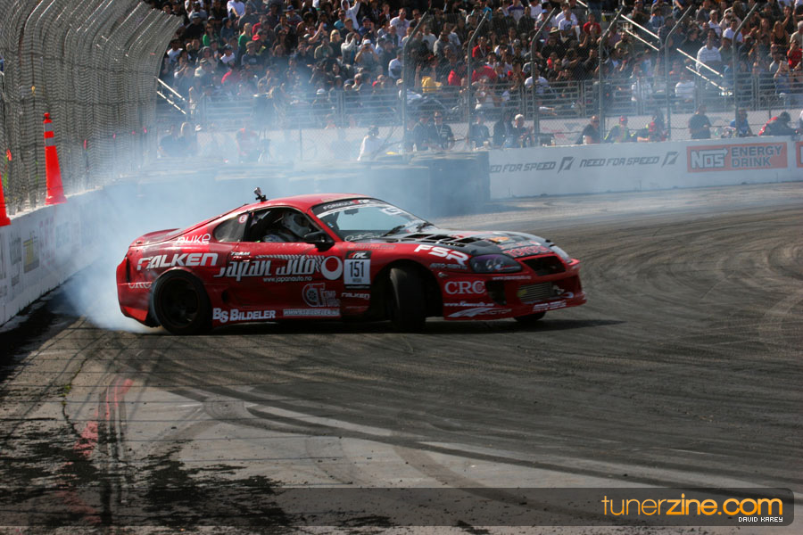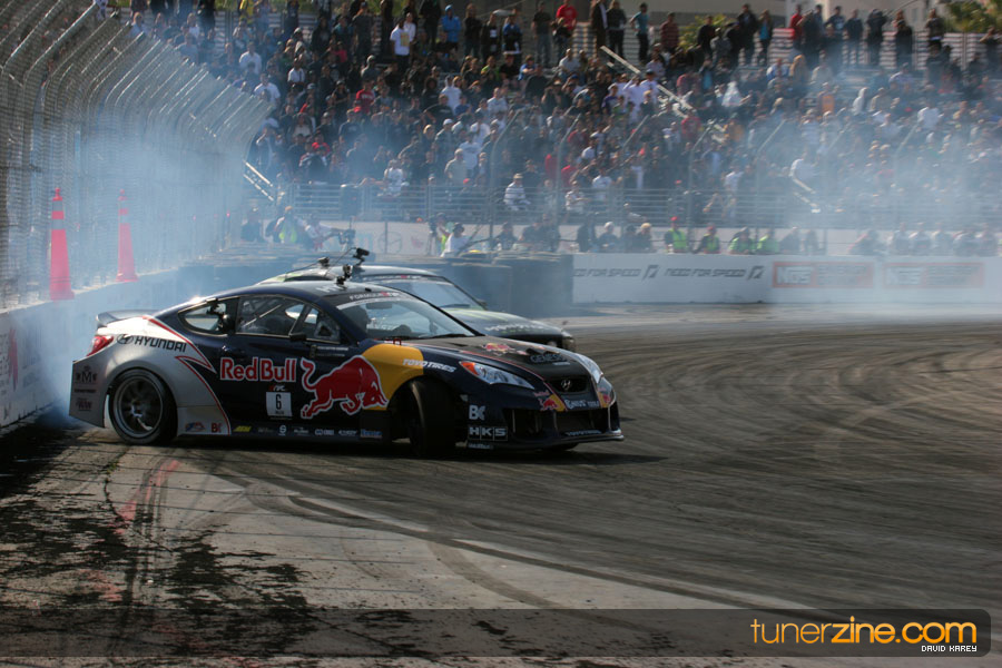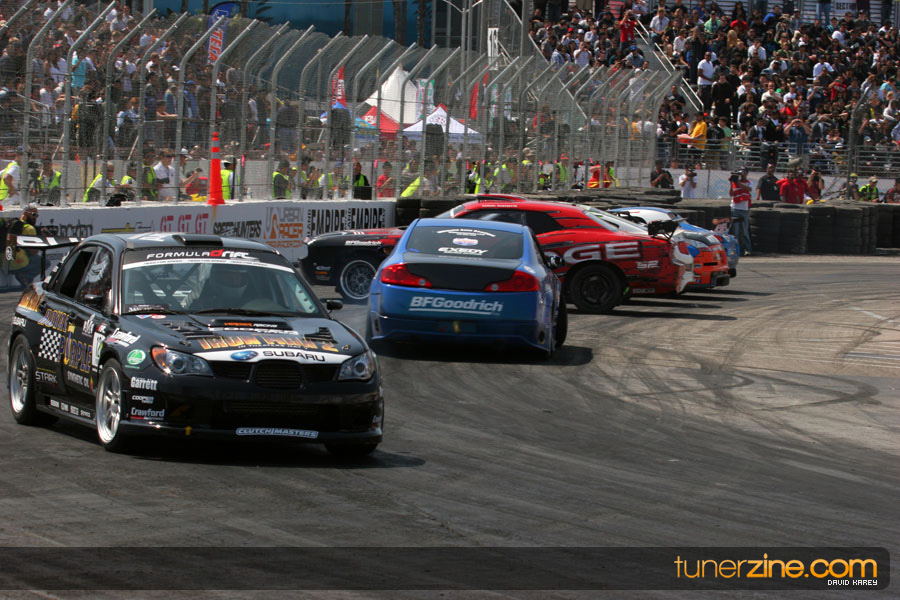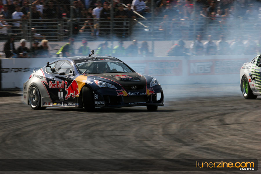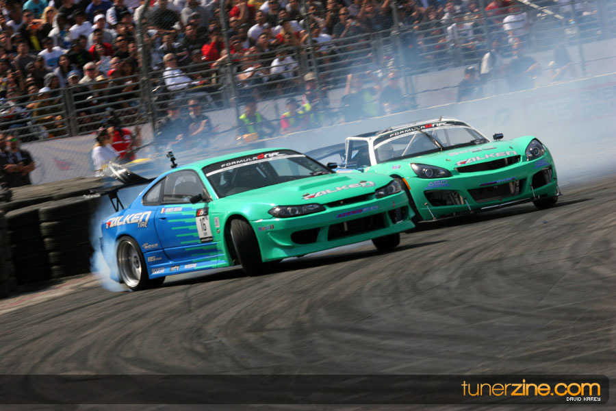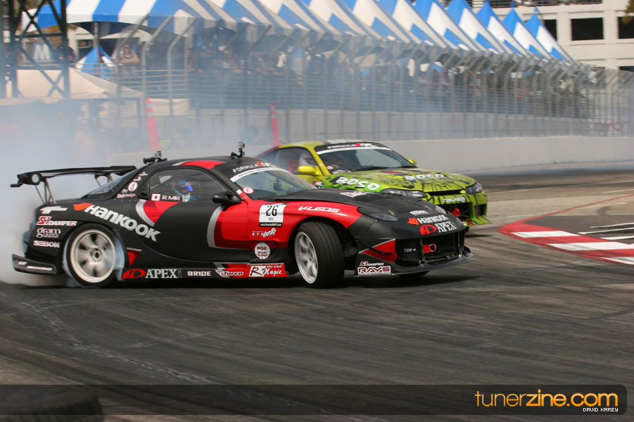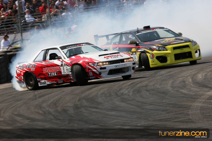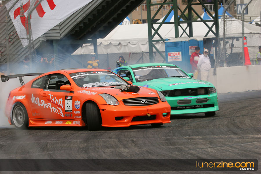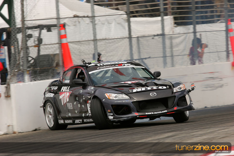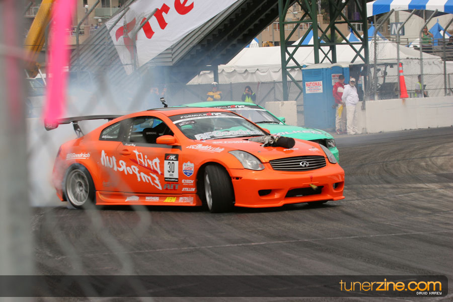 The Long Beach Grand Prix Street Course hosted the first competition of the 2010 season of Formula DRIFT. The venue was packed with reserved seating selling out before the main event opened the doors and the crowds filled the grandstands, pits, and paddock. The event also provided plenty of additional features and attractions that included the debut of the new Miss Formula DRIFT, Melyssa Grace, the One of One Car Show produced by Fatlace, and MetroPCS / Sanctioned brought out celebrity guest and world famous tattoo artist Mister Cartoon. The thousands of fans were treated to world class drifting with over 13 countries represented in the competition.