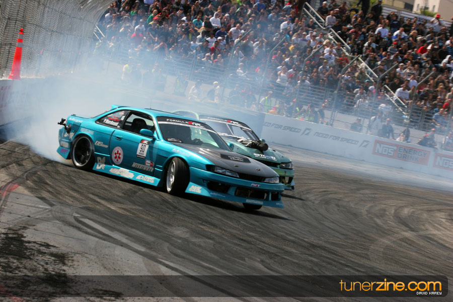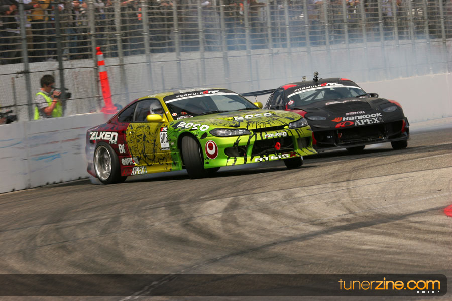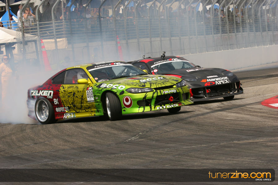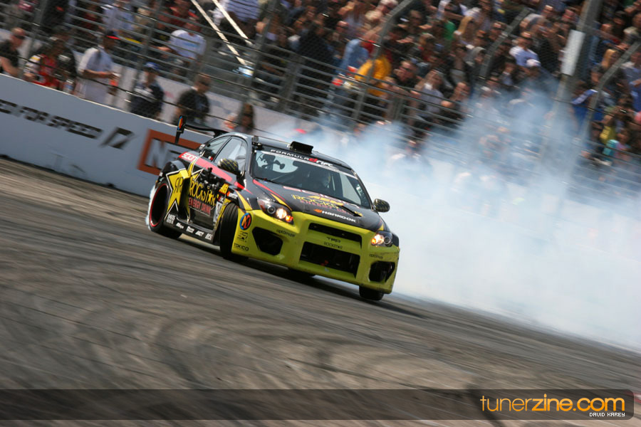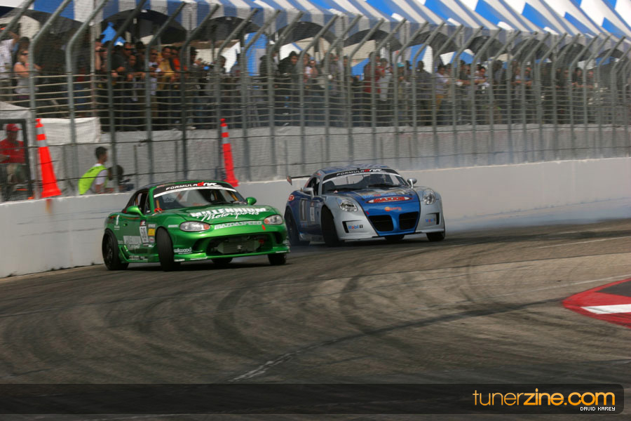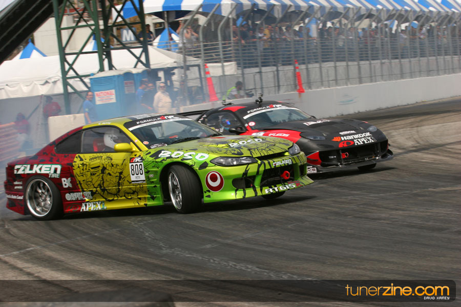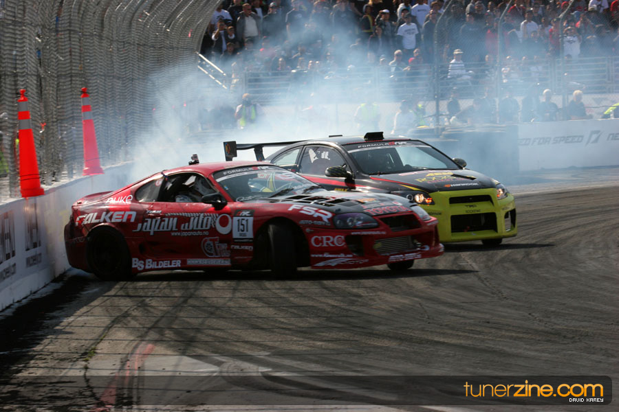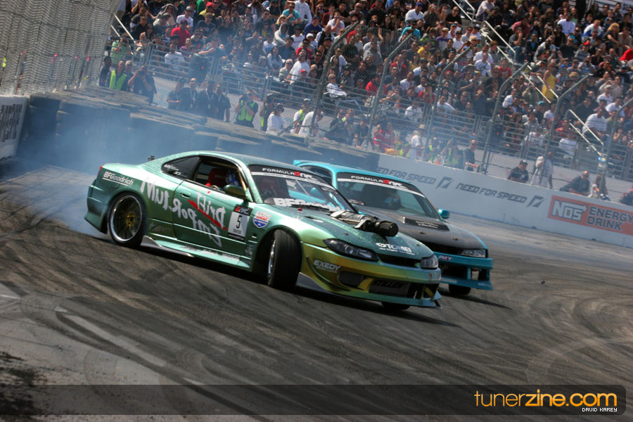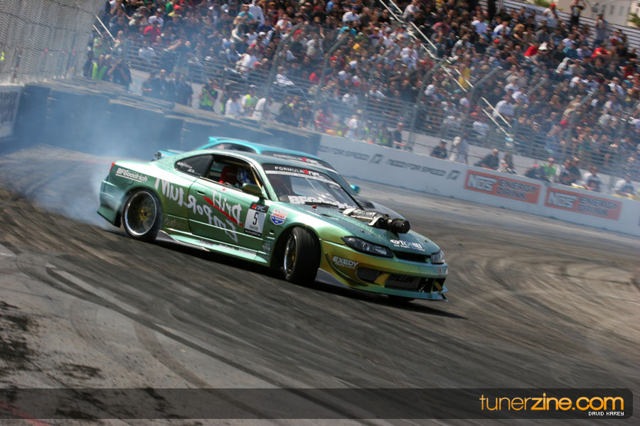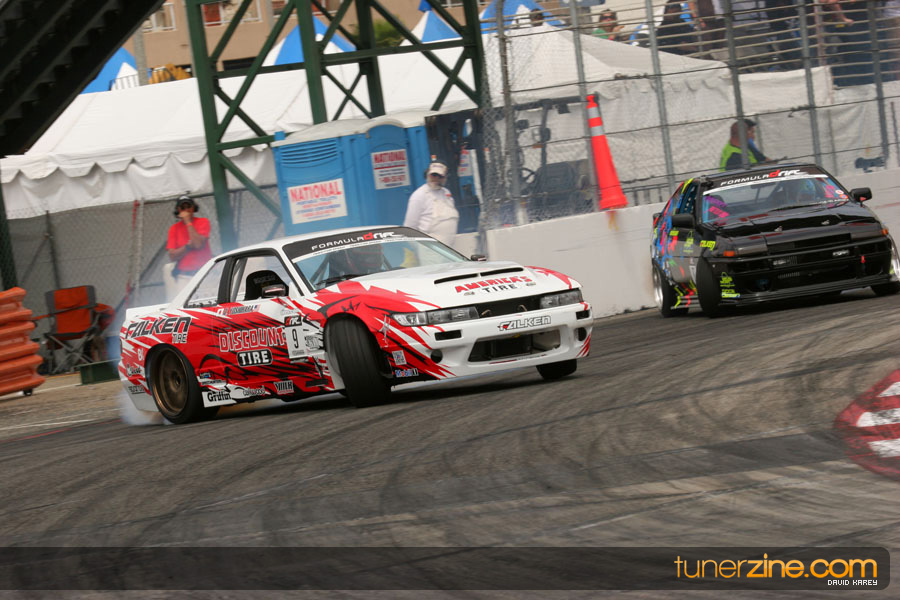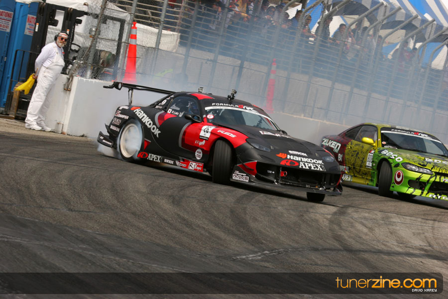The Long Beach Grand Prix Street Course hosted the first competition of the 2010 season of Formula DRIFT. The venue was packed with reserved seating selling out before the main event opened the doors and the crowds filled the grandstands, pits, and paddock. The event also provided plenty of additional features and attractions that included the debut of the new Miss Formula DRIFT, Melyssa Grace, the One of One Car Show produced by Fatlace, and MetroPCS / Sanctioned brought out celebrity guest and world famous tattoo artist Mister Cartoon. The thousands of fans were treated to world class drifting with over 13 countries represented in the competition.