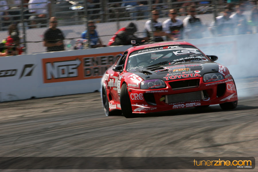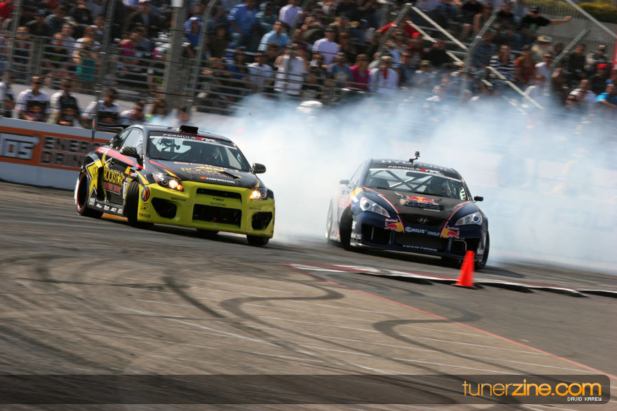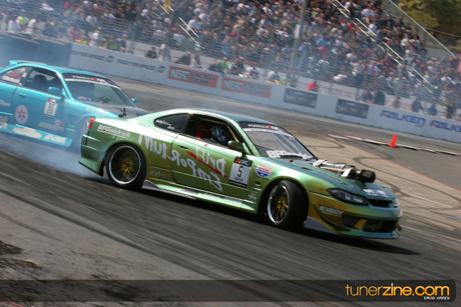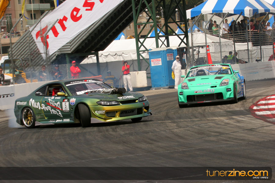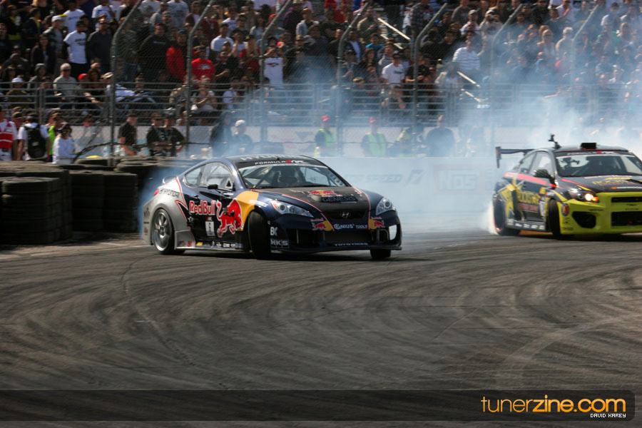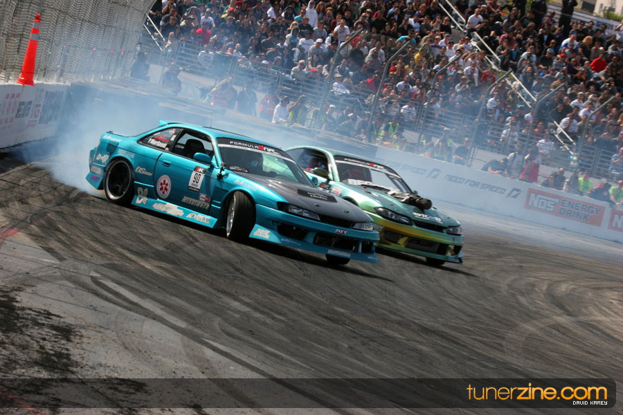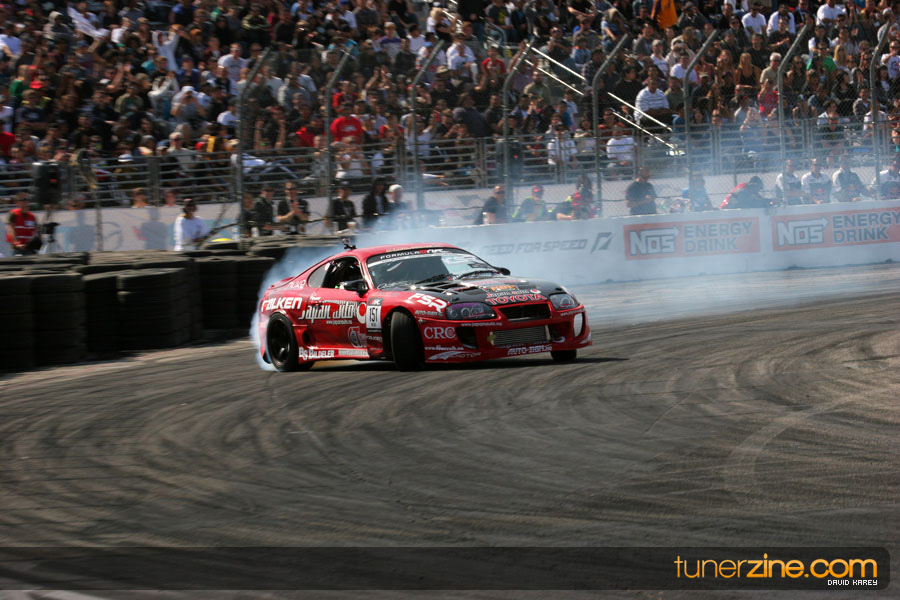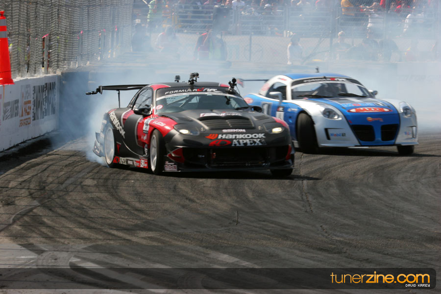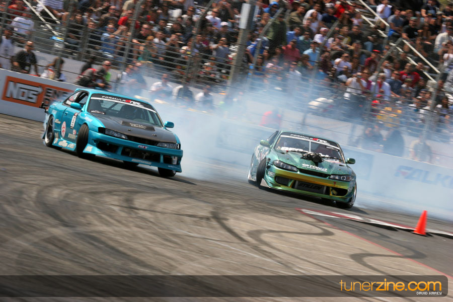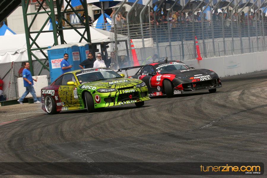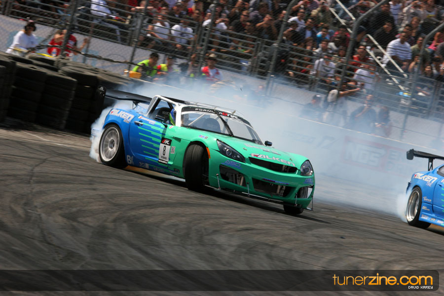 The Long Beach Grand Prix Street Course hosted the first competition of the 2010 season of Formula DRIFT. The venue was packed with reserved seating selling out before the main event opened the doors and the crowds filled the grandstands, pits, and paddock. The event also provided plenty of additional features and attractions that included the debut of the new Miss Formula DRIFT, Melyssa Grace, the One of One Car Show produced by Fatlace, and MetroPCS / Sanctioned brought out celebrity guest and world famous tattoo artist Mister Cartoon. The thousands of fans were treated to world class drifting with over 13 countries represented in the competition.