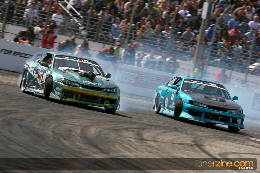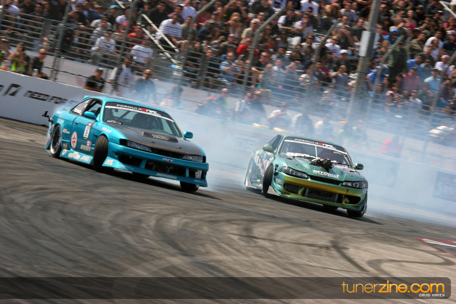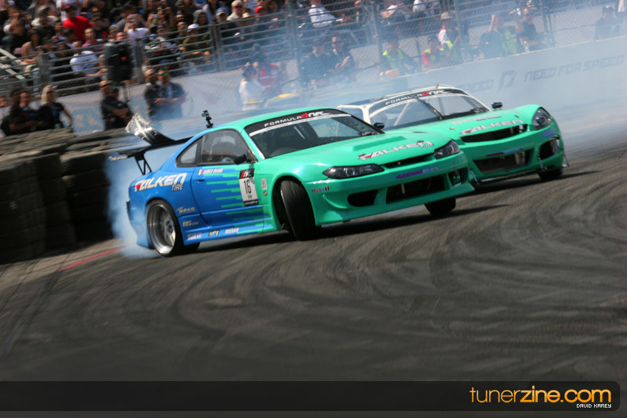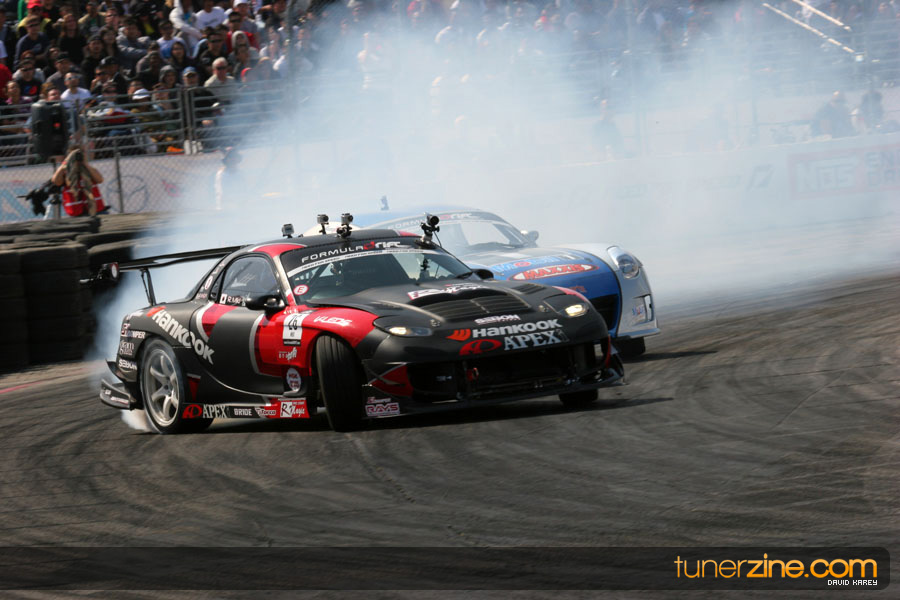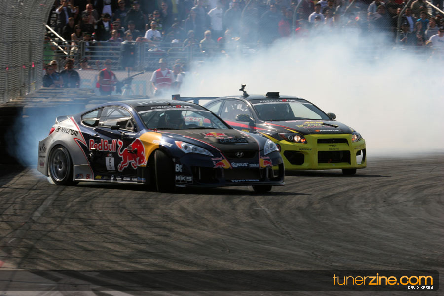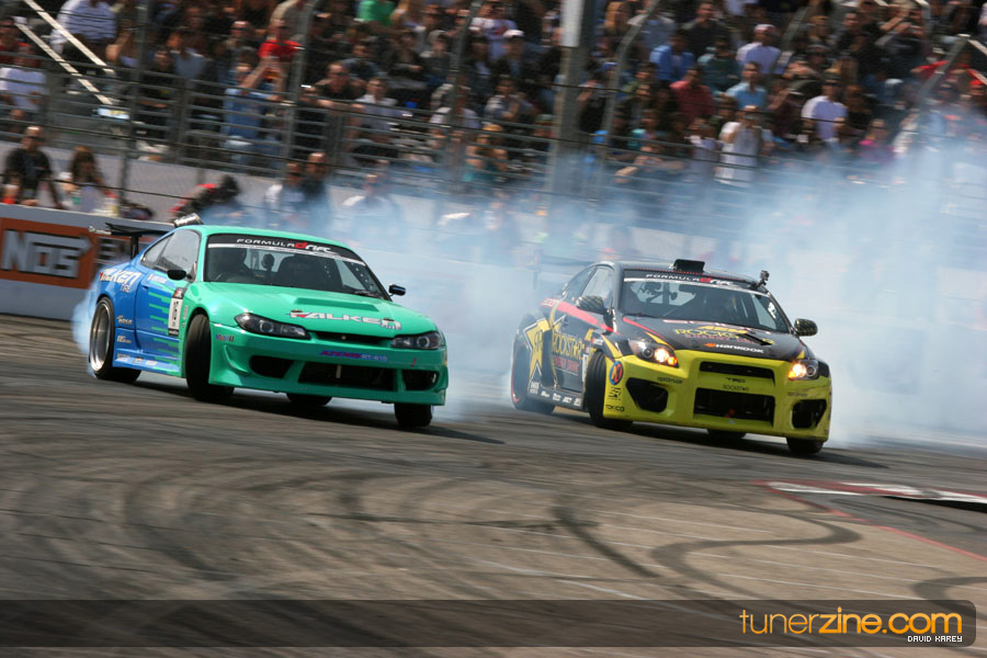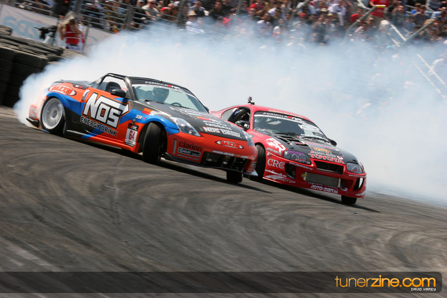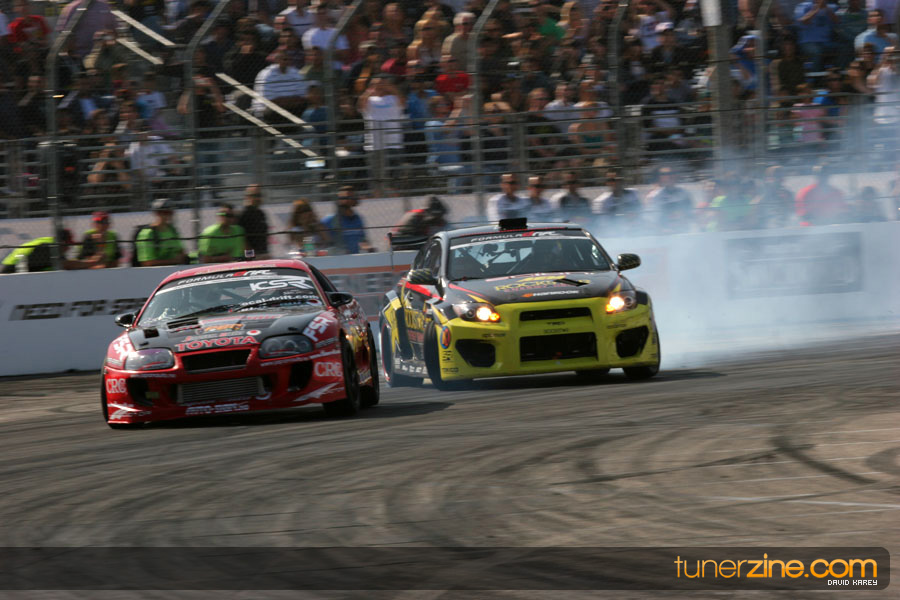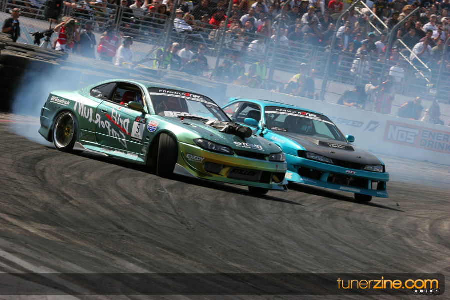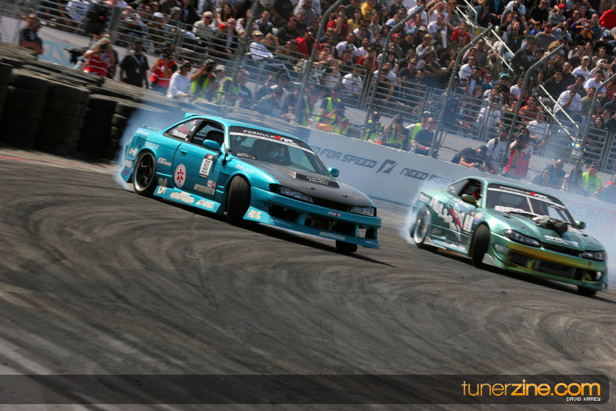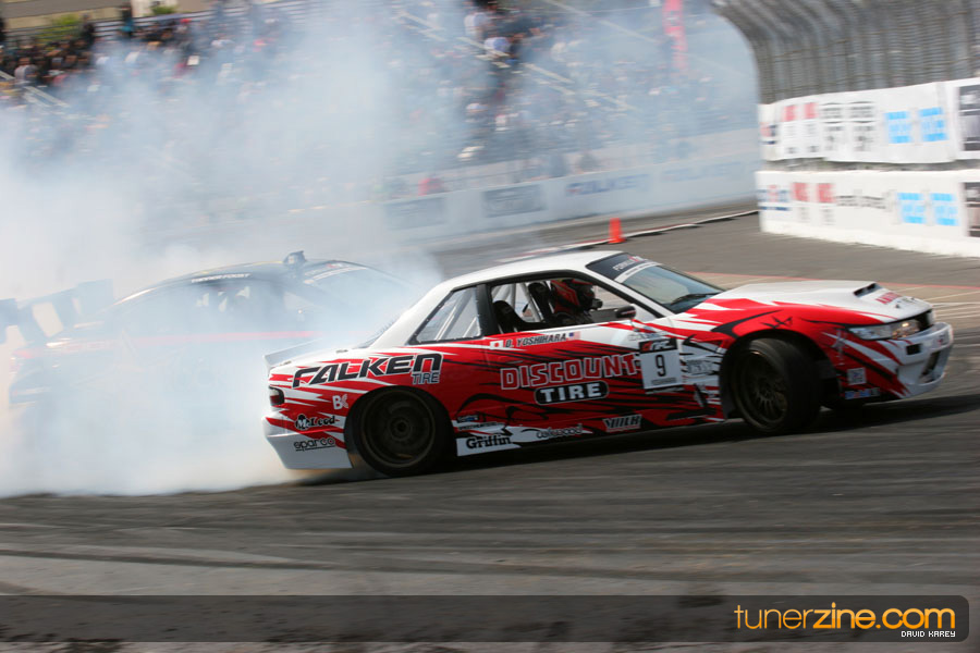 The Long Beach Grand Prix Street Course hosted the first competition of the 2010 season of Formula DRIFT. The venue was packed with reserved seating selling out before the main event opened the doors and the crowds filled the grandstands, pits, and paddock. The event also provided plenty of additional features and attractions that included the debut of the new Miss Formula DRIFT, Melyssa Grace, the One of One Car Show produced by Fatlace, and MetroPCS / Sanctioned brought out celebrity guest and world famous tattoo artist Mister Cartoon. The thousands of fans were treated to world class drifting with over 13 countries represented in the competition.