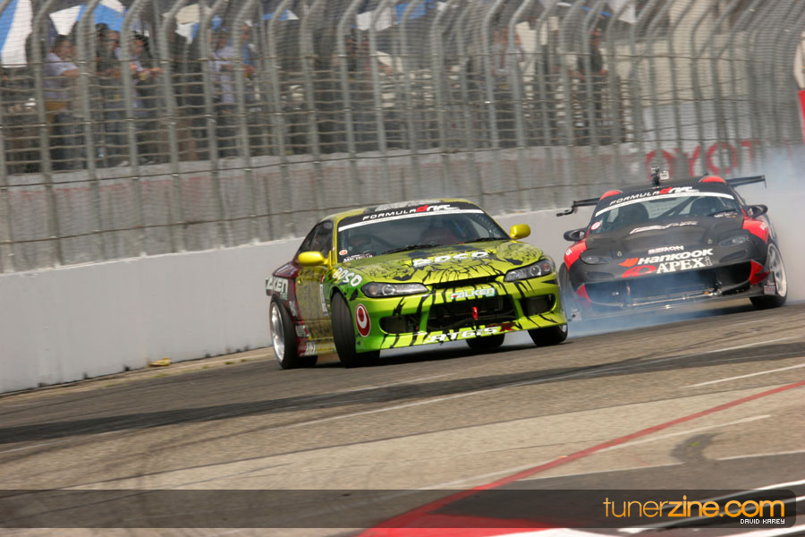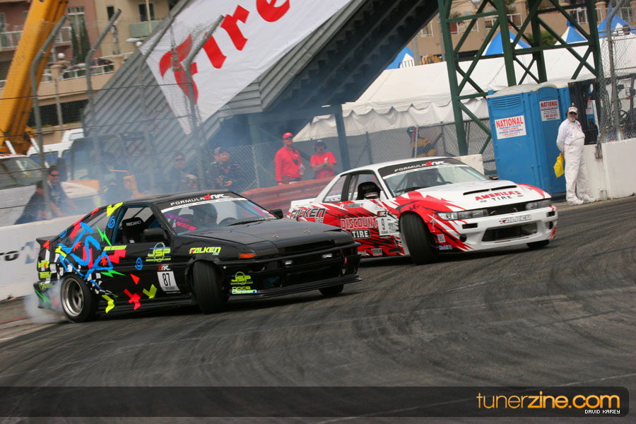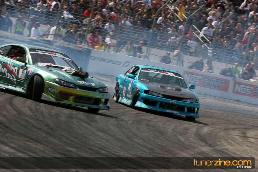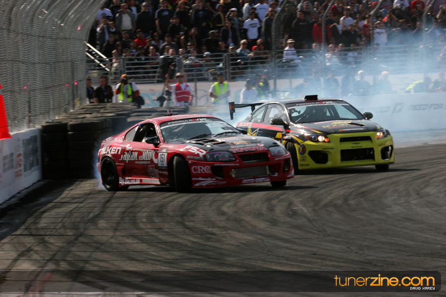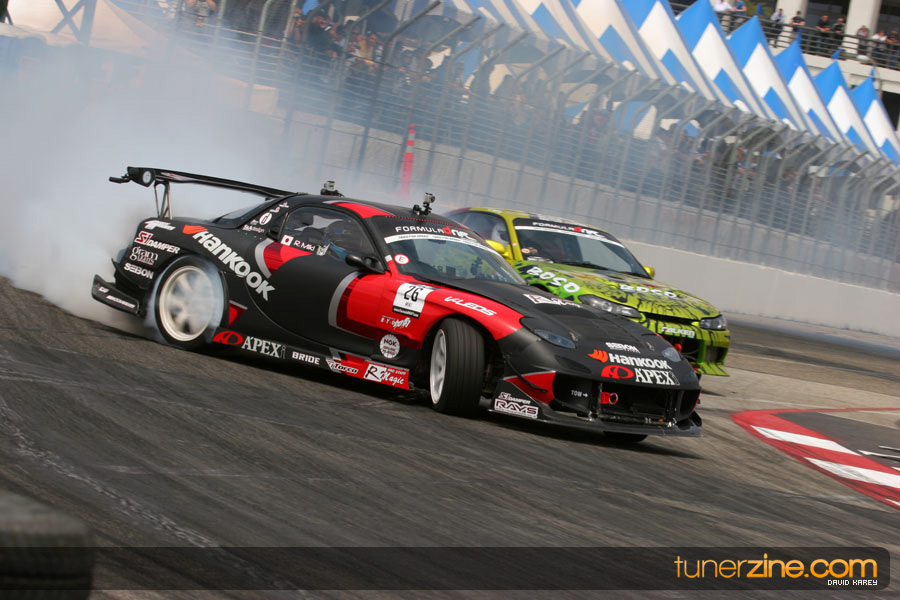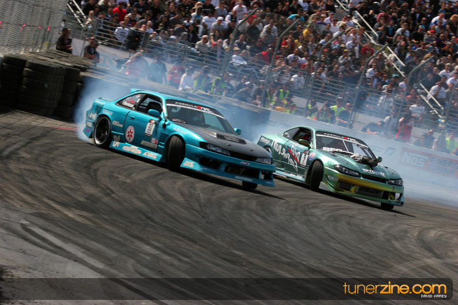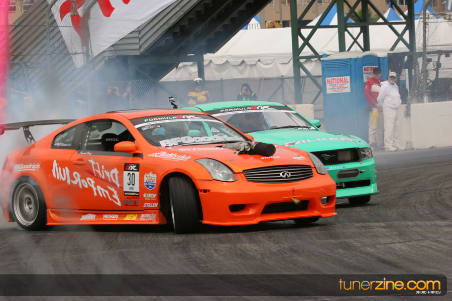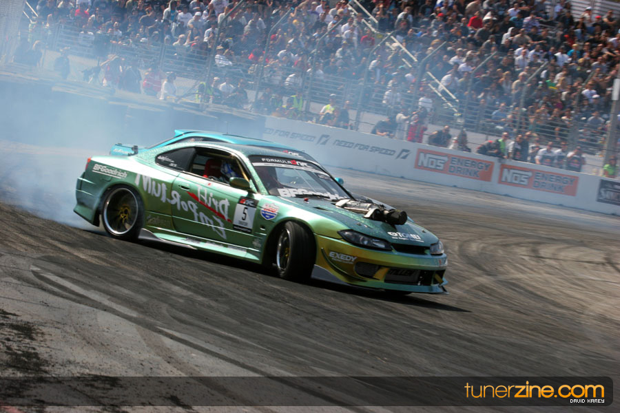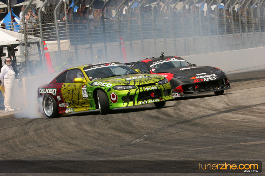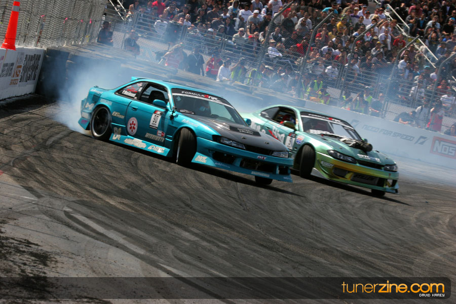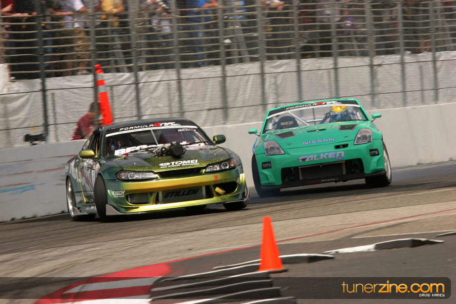 The Long Beach Grand Prix Street Course hosted the first competition of the 2010 season of Formula DRIFT. The venue was packed with reserved seating selling out before the main event opened the doors and the crowds filled the grandstands, pits, and paddock. The event also provided plenty of additional features and attractions that included the debut of the new Miss Formula DRIFT, Melyssa Grace, the One of One Car Show produced by Fatlace, and MetroPCS / Sanctioned brought out celebrity guest and world famous tattoo artist Mister Cartoon. The thousands of fans were treated to world class drifting with over 13 countries represented in the competition.