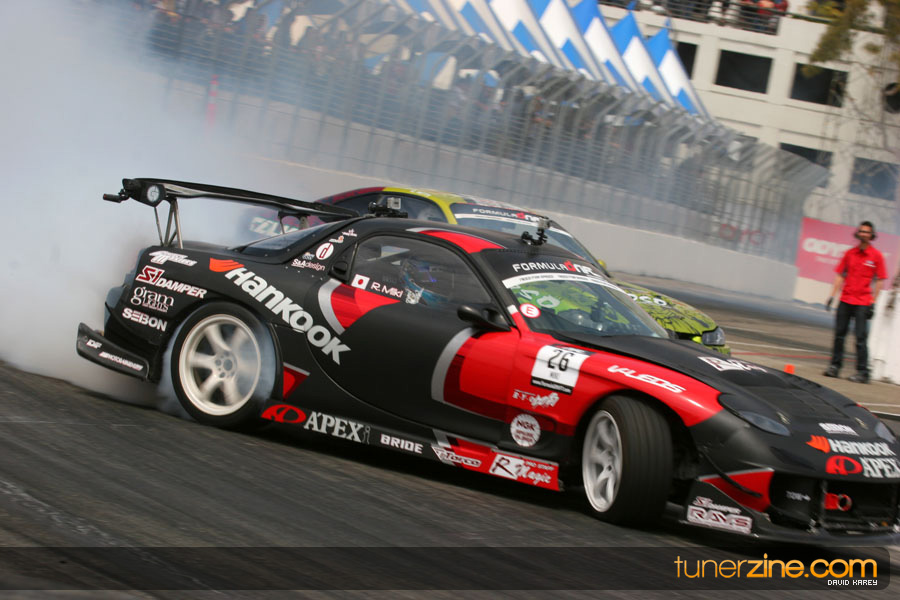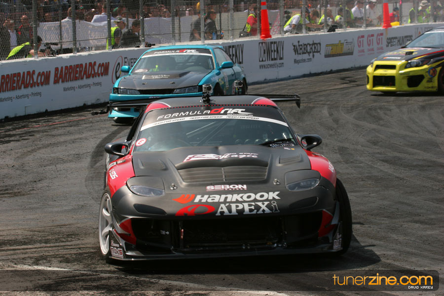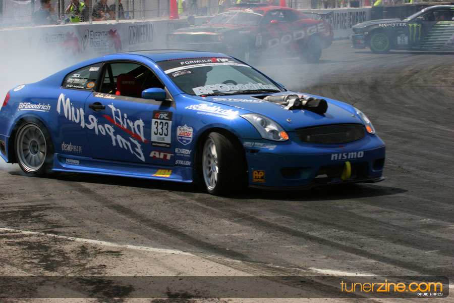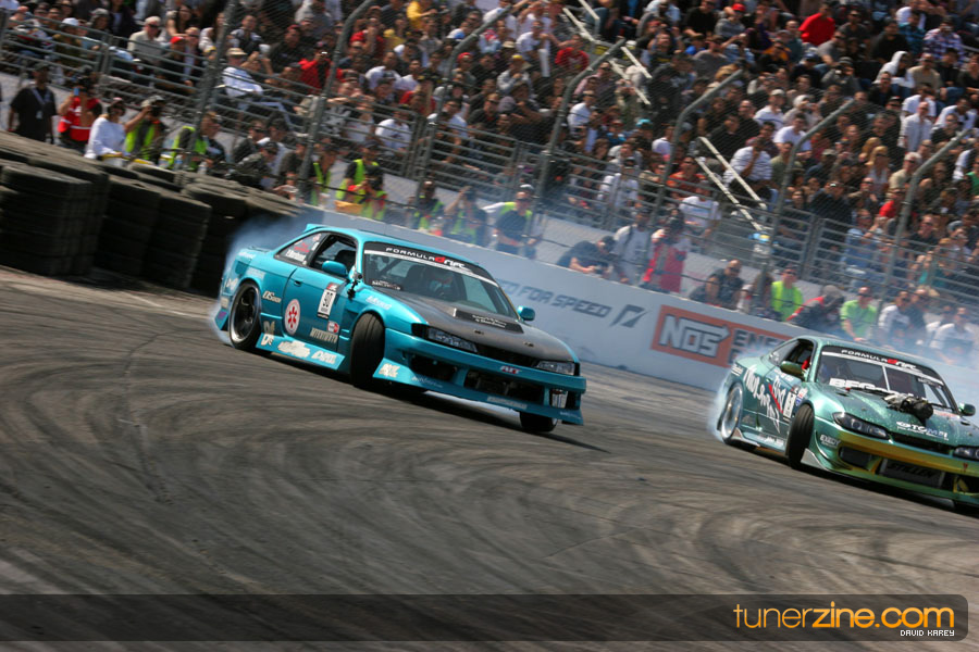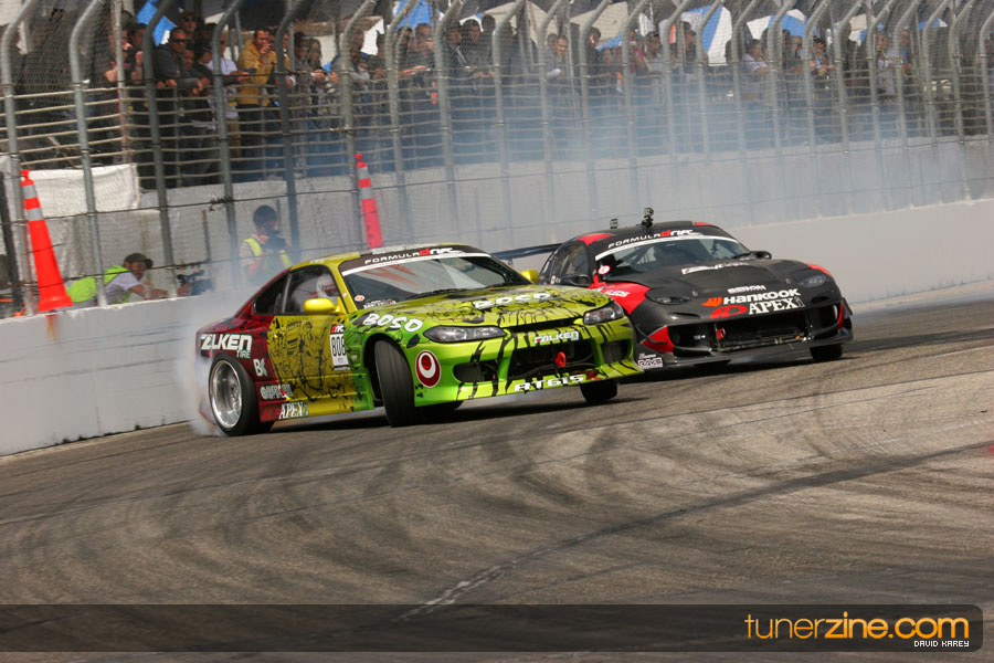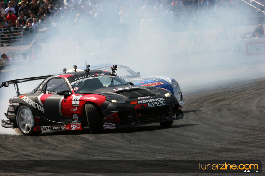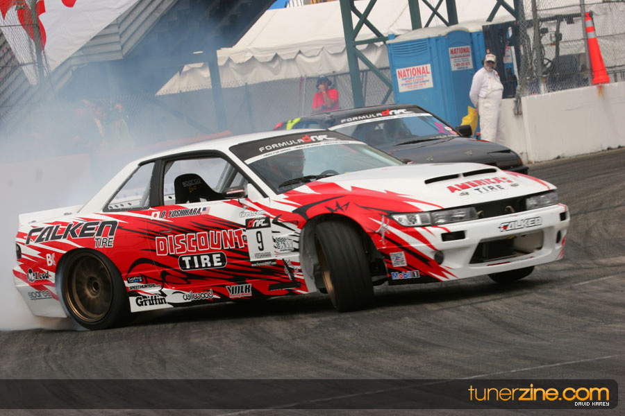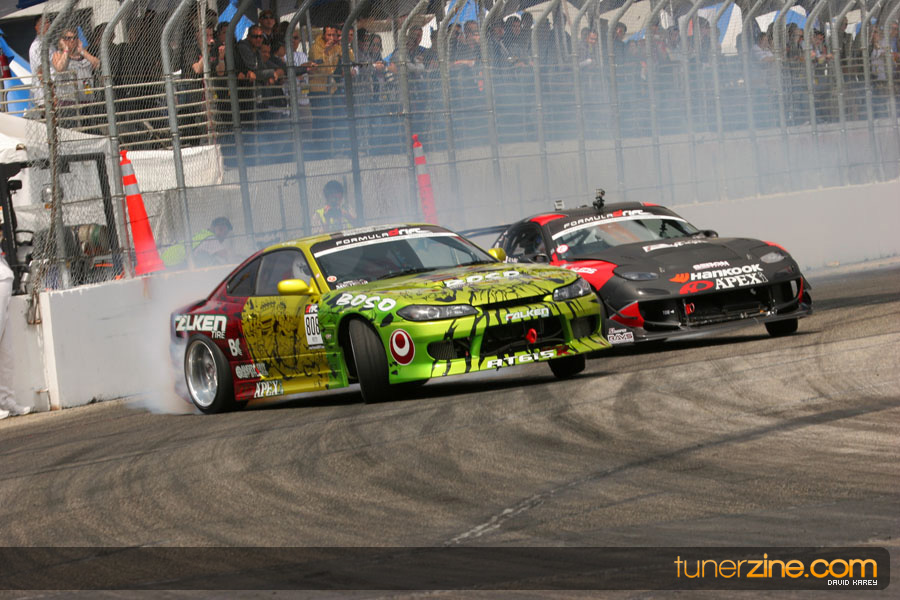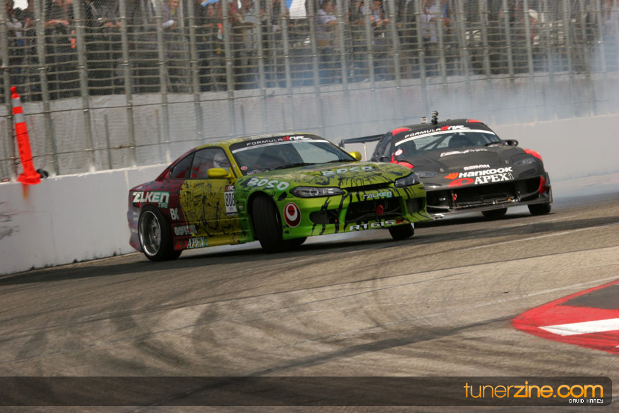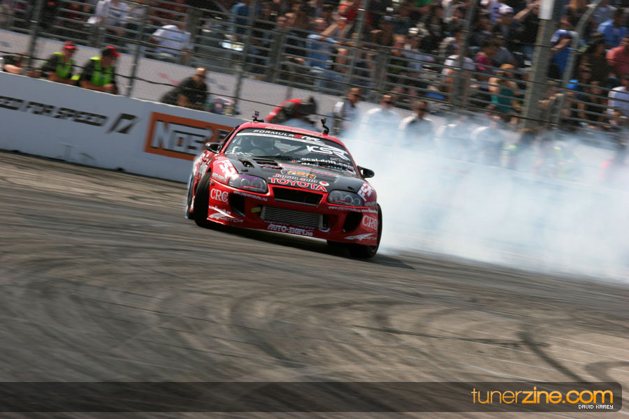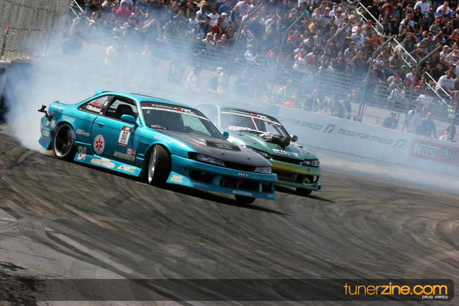 The Long Beach Grand Prix Street Course hosted the first competition of the 2010 season of Formula DRIFT. The venue was packed with reserved seating selling out before the main event opened the doors and the crowds filled the grandstands, pits, and paddock. The event also provided plenty of additional features and attractions that included the debut of the new Miss Formula DRIFT, Melyssa Grace, the One of One Car Show produced by Fatlace, and MetroPCS / Sanctioned brought out celebrity guest and world famous tattoo artist Mister Cartoon. The thousands of fans were treated to world class drifting with over 13 countries represented in the competition.