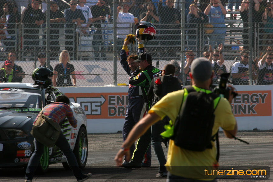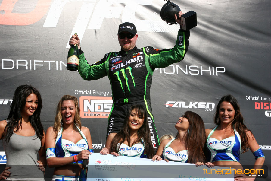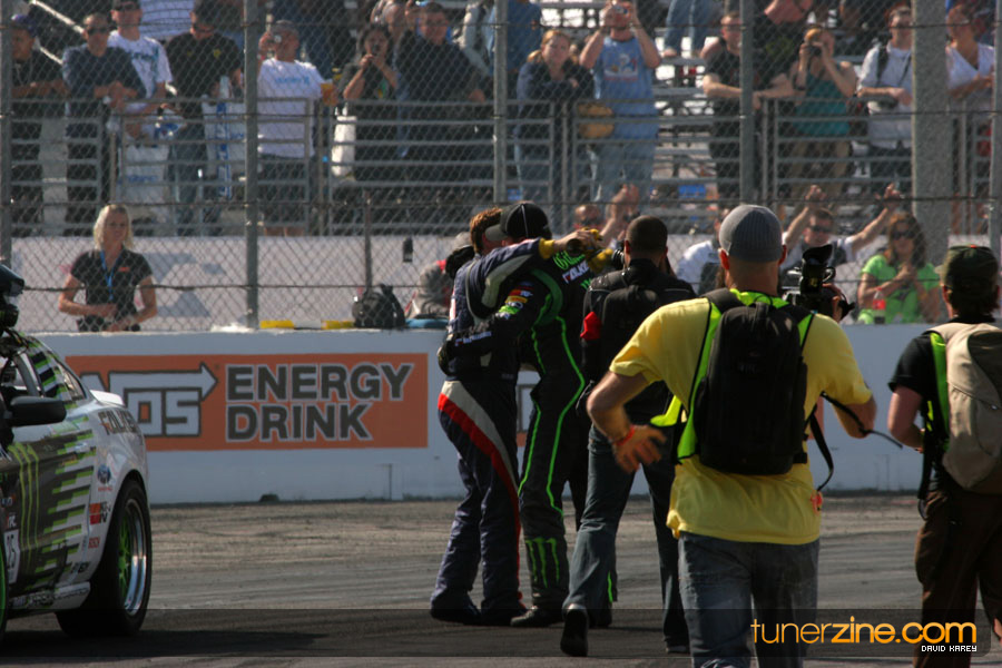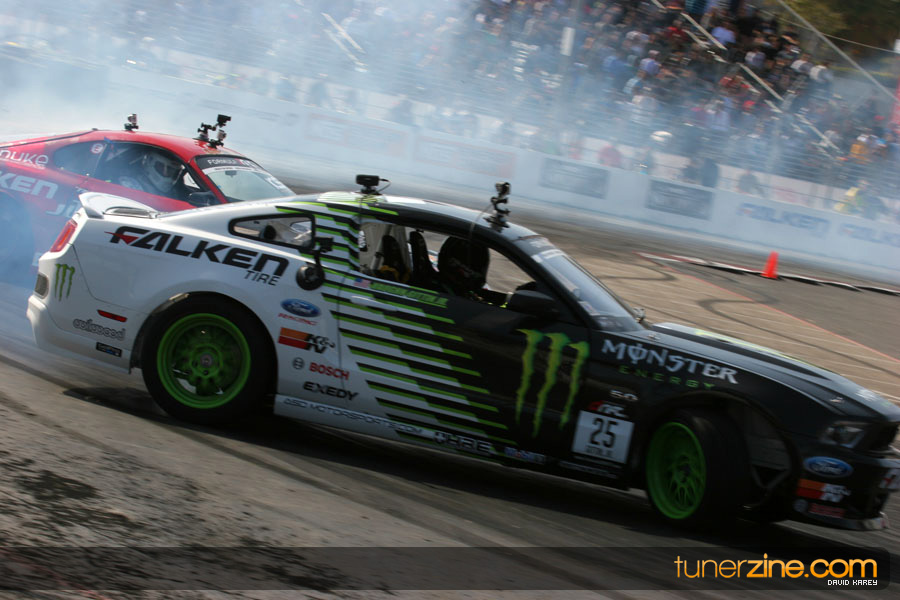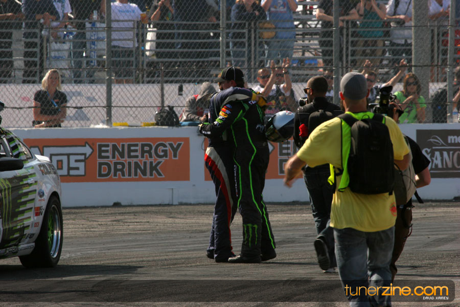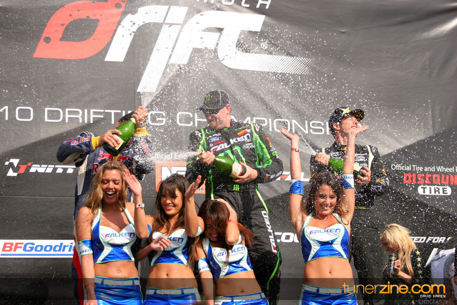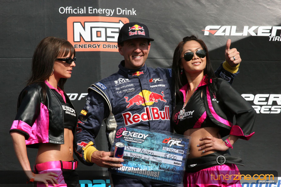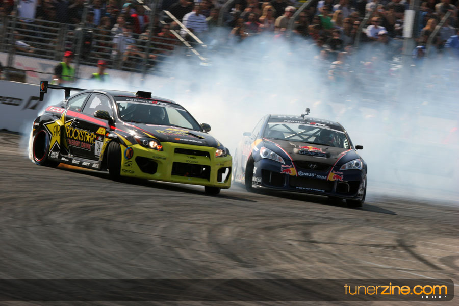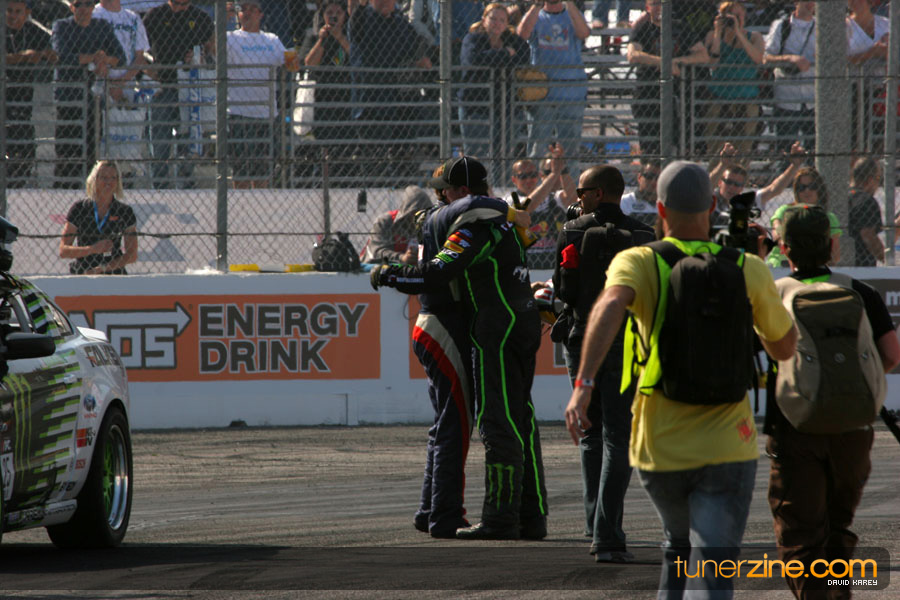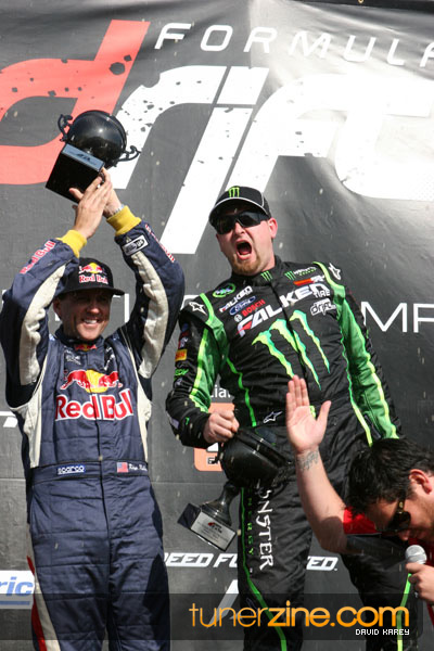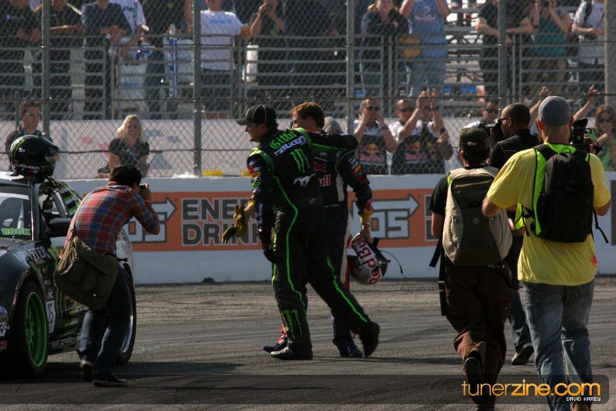1. Gittin, Vaughn Monster Energy / Falken Tire Ford Mustang 108 Points 2. Millen, Rhys RMR / Red Bull Hyundai Genesis Coupe 100 Points 3. Foust, Tanner Rockstar Energy Scion TC 82 Points 4. Aasbo, Fredric Japan Auto / FSR Toyota Supra 72 Points 5. Tuerck, Ryan Mobil 1 / Maxxis Tire / Gardella Racing Pontiac Solstice 65 Points 6. Hubinette, Samuel SHR-Dodge / BF Goodrich Dodge Challenger 64 Points 7. Mordaunt, Patrick Brian Crower / PM Racing Nissan 350Z 62 Points 8. Deane, James Falken Tire Nissan S15 61.50 Points 9. McNamara, Darren Falken Tire Saturn Sky 60 Points 10. Forsberg, Chris NOS Energy Drink / CFR Nissan 350Z 56 Points 11. Miki, Ryuji APEXi / Hankook Tire Mazda RX-7 56 Points 12. Yoshihara, Daijiro America’s Tire / Falken Tire Nissan S13 56 Points 13. Brakohiapa, Tony Cooper Tire / Sam’s Autoboy Ford Mustang 54.50 Points 14. Verdier, Stephan Royal Purple / Crawford Performace / Cooper / Subaru STI 54.50 Points 15. Wang, Forrest BF Goodrich / K&N Infiniti G35 54.50 Points 16. Takatori, Michihiro BF Goodrich / Exedy Nissan S15 54.25 Points