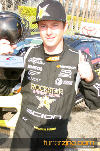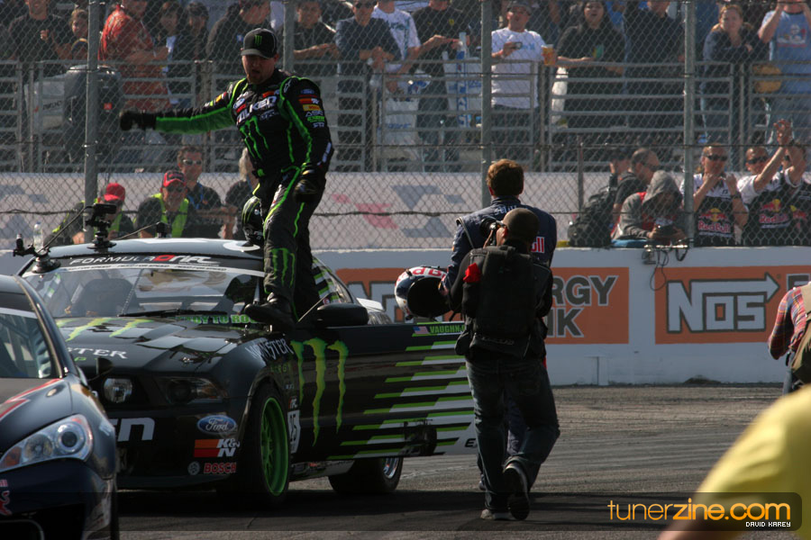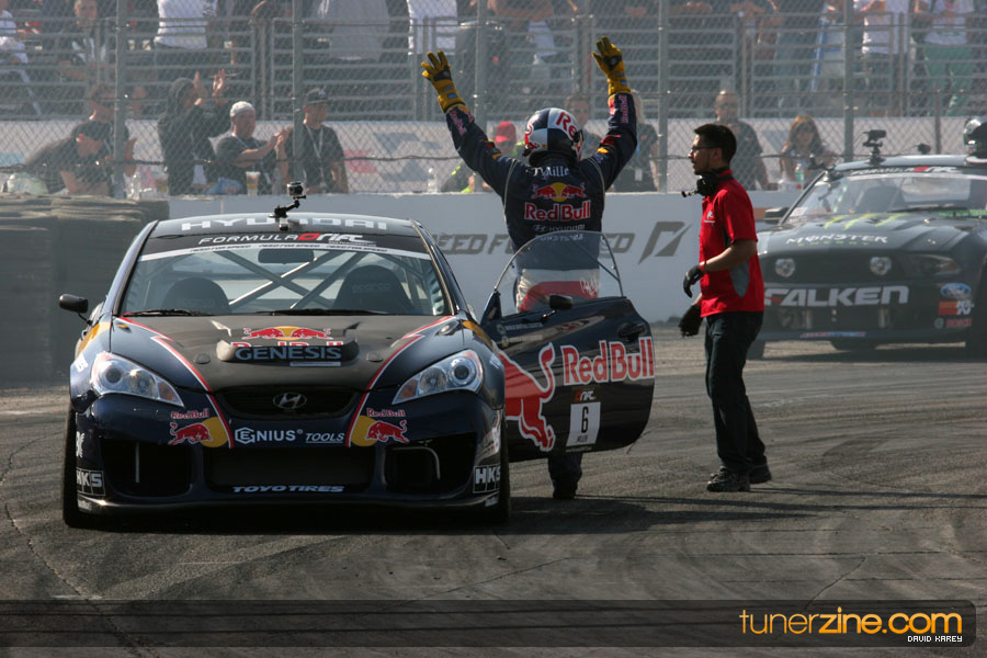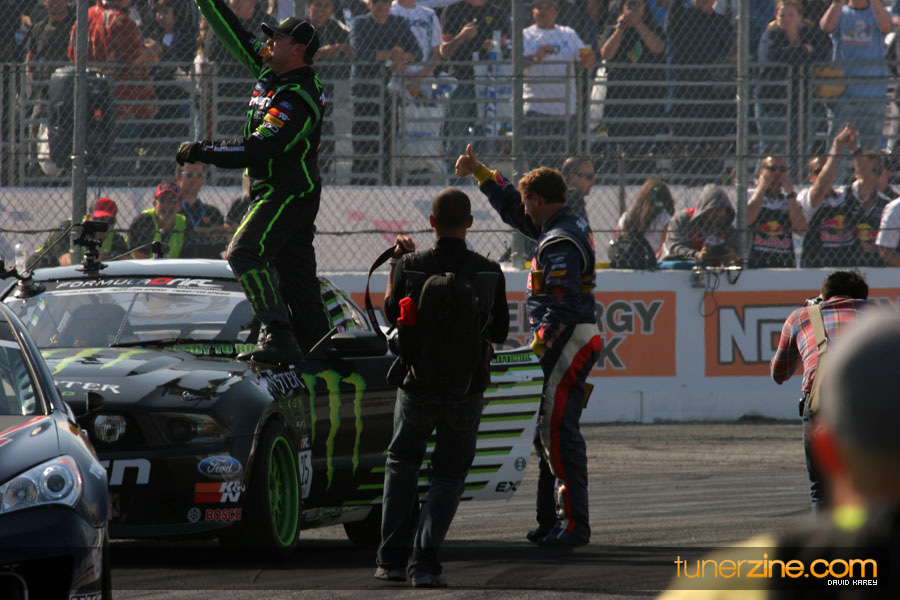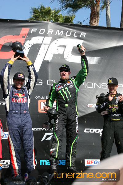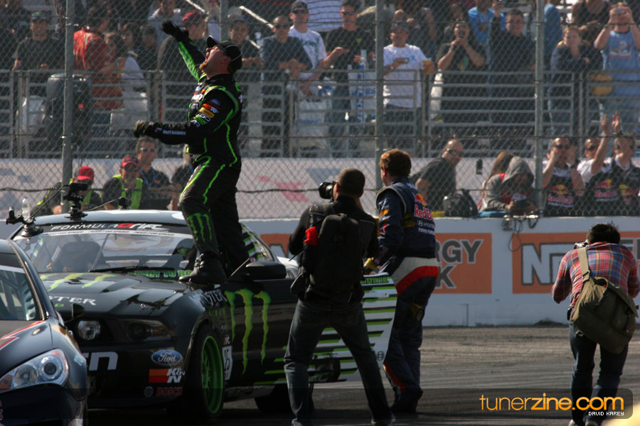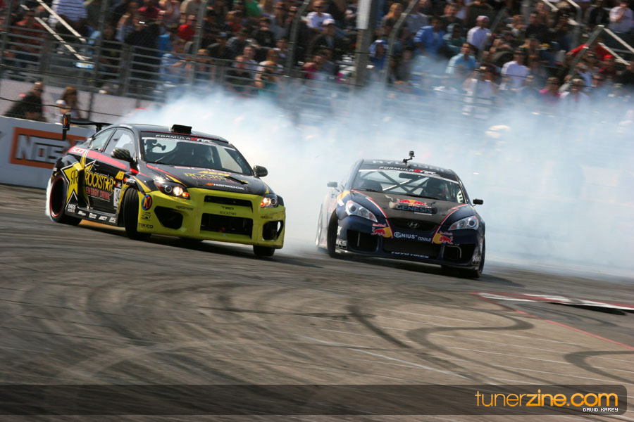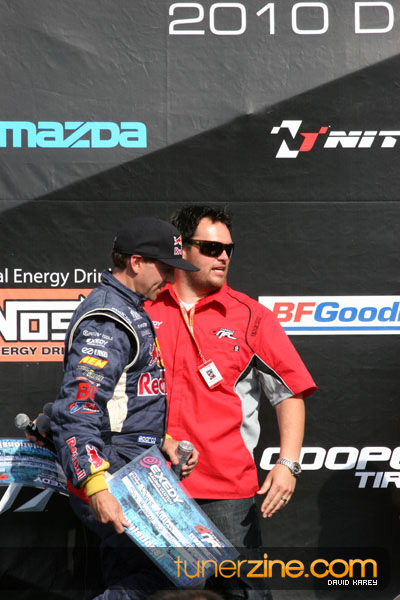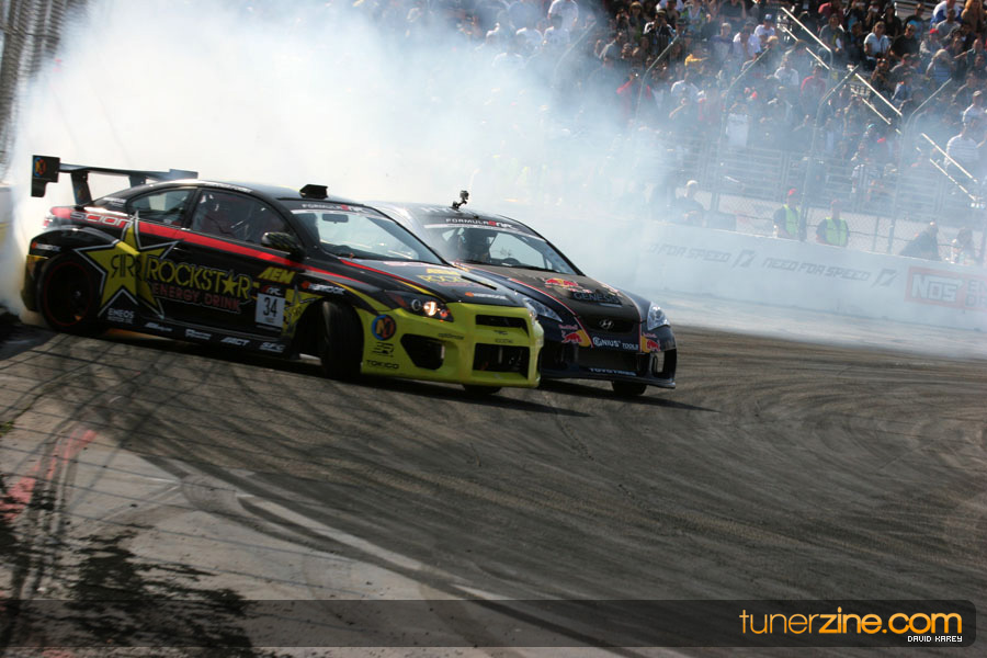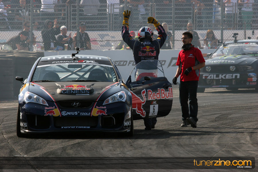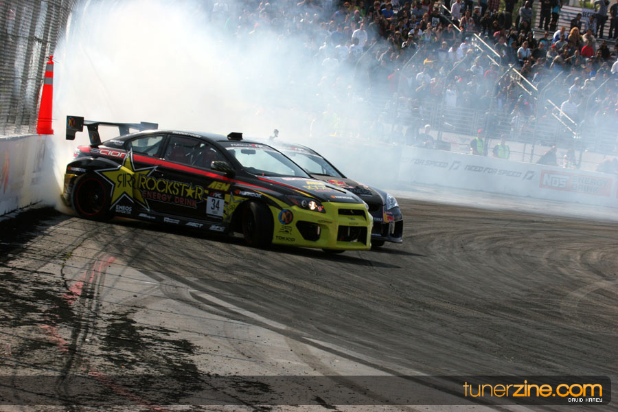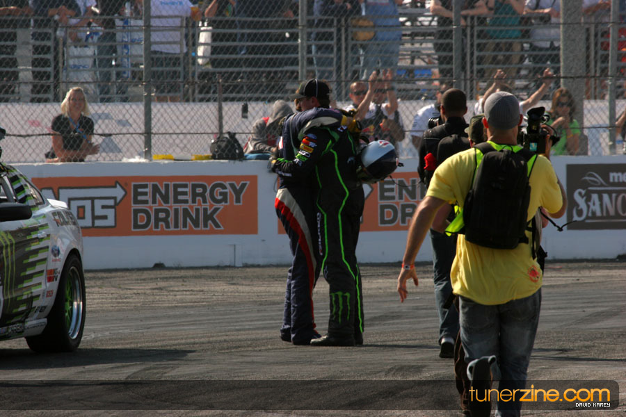 1. Gittin, Vaughn Monster Energy / Falken Tire Ford Mustang 108 Points 2. Millen, Rhys RMR / Red Bull Hyundai Genesis Coupe 100 Points 3. Foust, Tanner Rockstar Energy Scion TC 82 Points 4. Aasbo, Fredric Japan Auto / FSR Toyota Supra 72 Points 5. Tuerck, Ryan Mobil 1 / Maxxis Tire / Gardella Racing Pontiac Solstice 65 Points 6. Hubinette, Samuel SHR-Dodge / BF Goodrich Dodge Challenger 64 Points 7. Mordaunt, Patrick Brian Crower / PM Racing Nissan 350Z 62 Points 8. Deane, James Falken Tire Nissan S15 61.50 Points 9. McNamara, Darren Falken Tire Saturn Sky 60 Points 10. Forsberg, Chris NOS Energy Drink / CFR Nissan 350Z 56 Points 11. Miki, Ryuji APEXi / Hankook Tire Mazda RX-7 56 Points 12. Yoshihara, Daijiro America’s Tire / Falken Tire Nissan S13 56 Points 13. Brakohiapa, Tony Cooper Tire / Sam’s Autoboy Ford Mustang 54.50 Points 14. Verdier, Stephan Royal Purple / Crawford Performace / Cooper / Subaru STI 54.50 Points 15. Wang, Forrest BF Goodrich / K&N Infiniti G35 54.50 Points 16. Takatori, Michihiro BF Goodrich / Exedy Nissan S15 54.25 Points