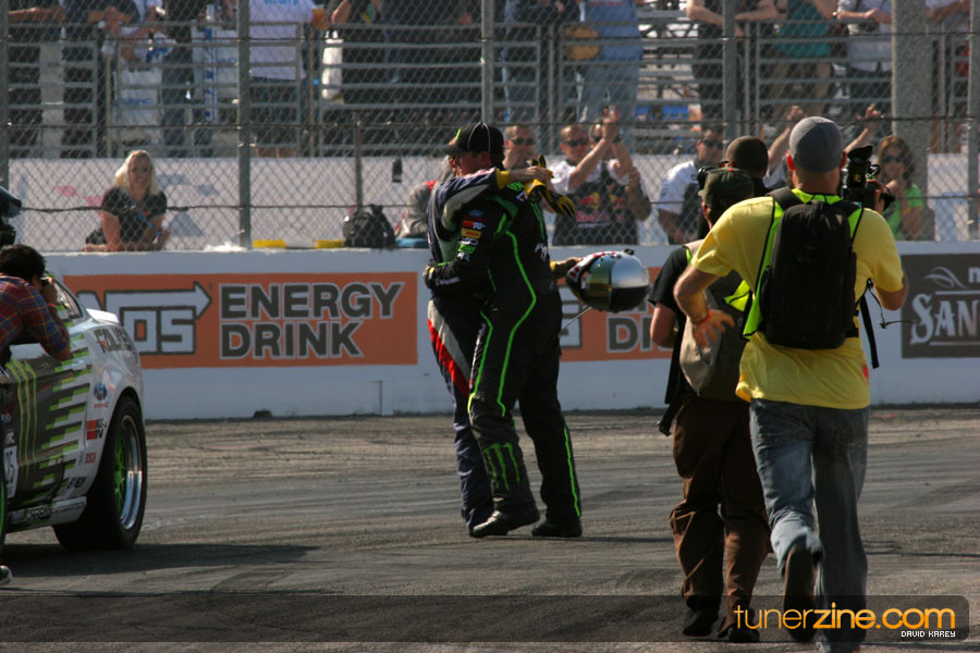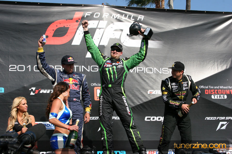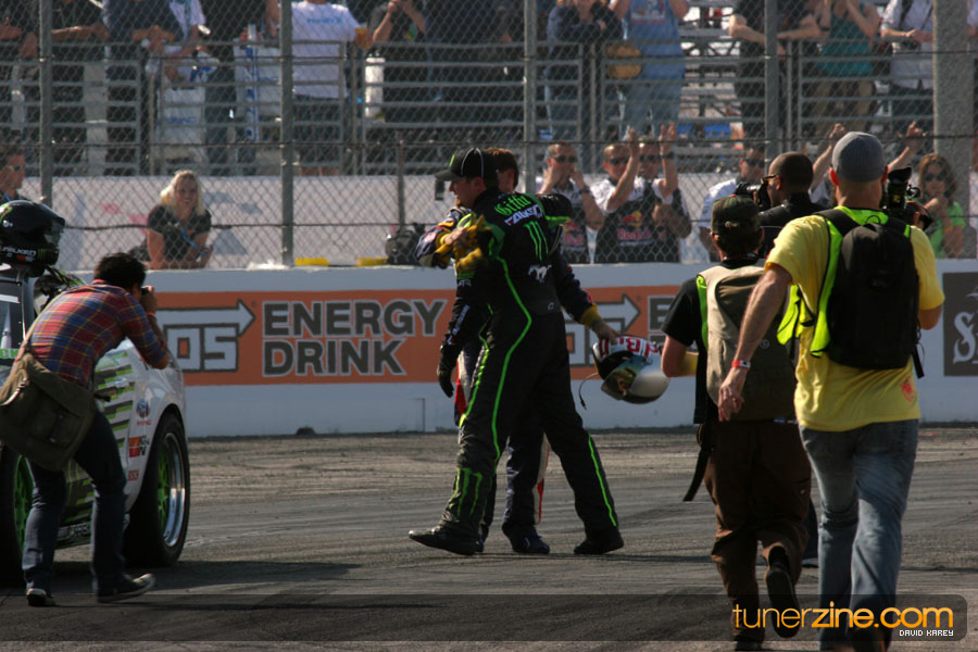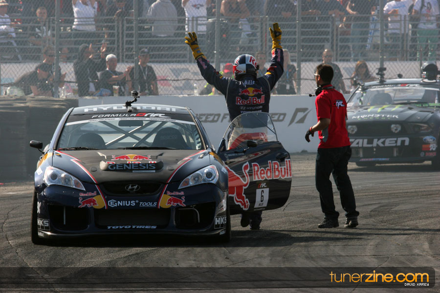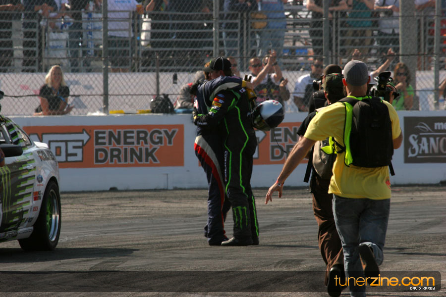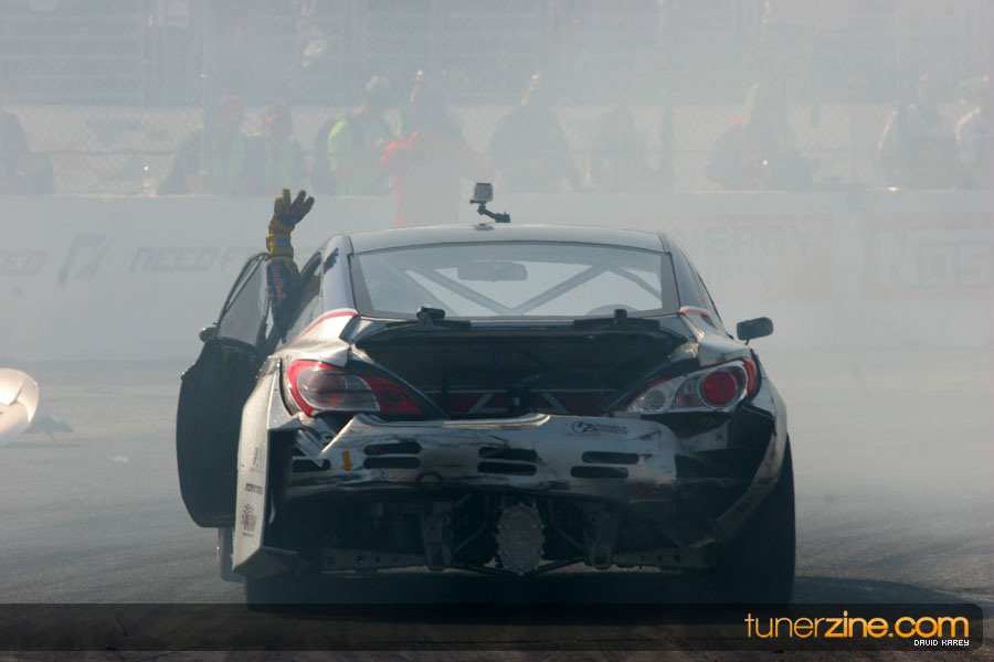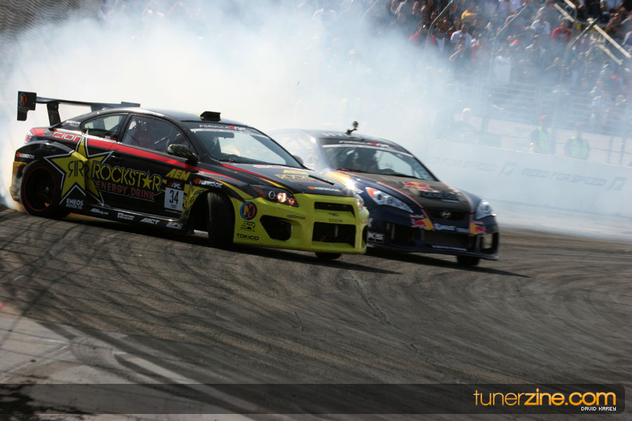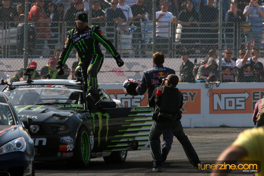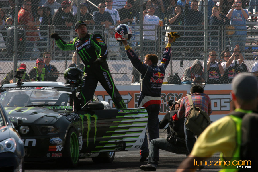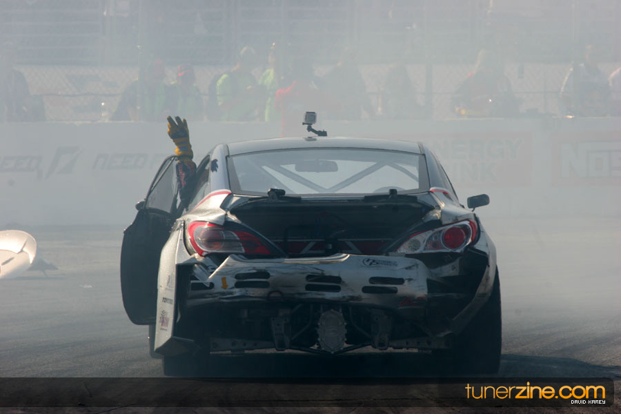 1. Gittin, Vaughn Monster Energy / Falken Tire Ford Mustang 108 Points 2. Millen, Rhys RMR / Red Bull Hyundai Genesis Coupe 100 Points 3. Foust, Tanner Rockstar Energy Scion TC 82 Points 4. Aasbo, Fredric Japan Auto / FSR Toyota Supra 72 Points 5. Tuerck, Ryan Mobil 1 / Maxxis Tire / Gardella Racing Pontiac Solstice 65 Points 6. Hubinette, Samuel SHR-Dodge / BF Goodrich Dodge Challenger 64 Points 7. Mordaunt, Patrick Brian Crower / PM Racing Nissan 350Z 62 Points 8. Deane, James Falken Tire Nissan S15 61.50 Points 9. McNamara, Darren Falken Tire Saturn Sky 60 Points 10. Forsberg, Chris NOS Energy Drink / CFR Nissan 350Z 56 Points 11. Miki, Ryuji APEXi / Hankook Tire Mazda RX-7 56 Points 12. Yoshihara, Daijiro America’s Tire / Falken Tire Nissan S13 56 Points 13. Brakohiapa, Tony Cooper Tire / Sam’s Autoboy Ford Mustang 54.50 Points 14. Verdier, Stephan Royal Purple / Crawford Performace / Cooper / Subaru STI 54.50 Points 15. Wang, Forrest BF Goodrich / K&N Infiniti G35 54.50 Points 16. Takatori, Michihiro BF Goodrich / Exedy Nissan S15 54.25 Points