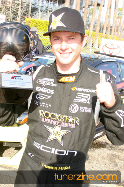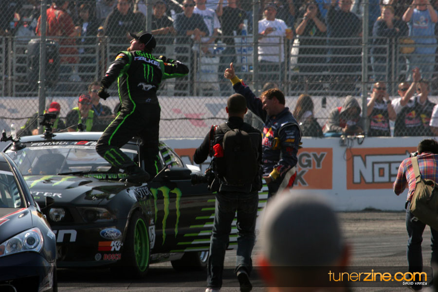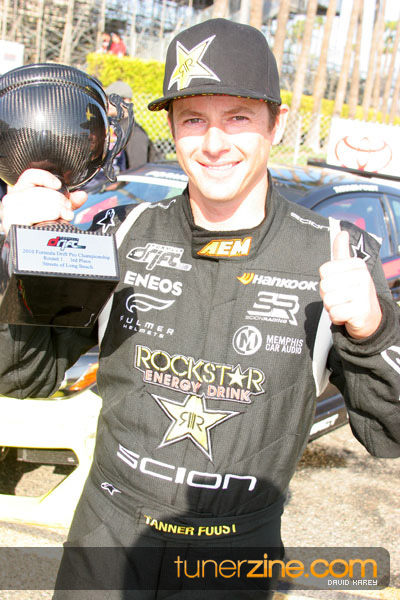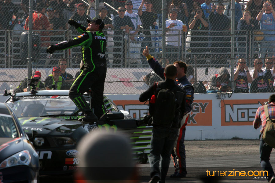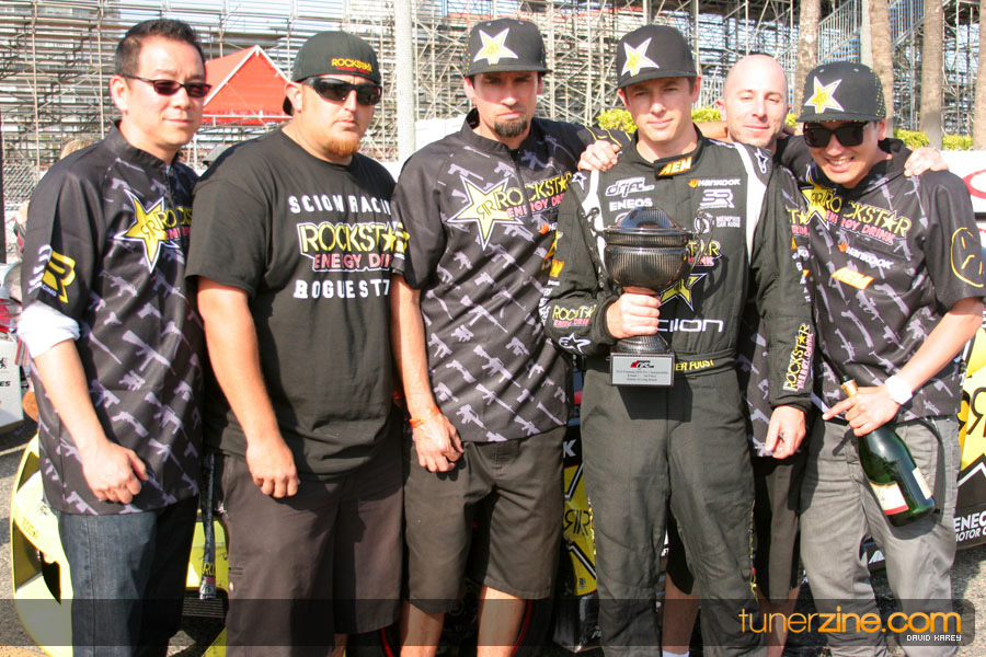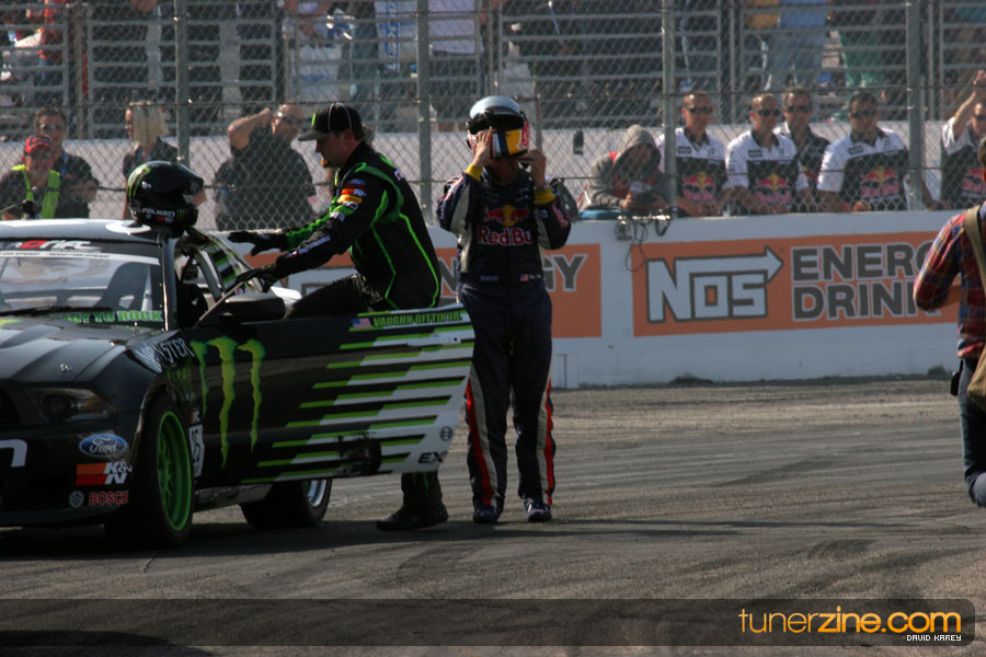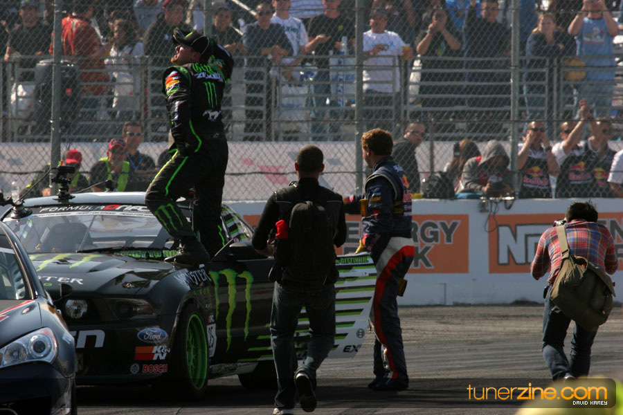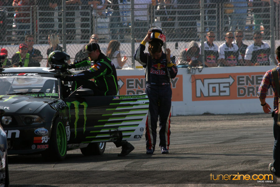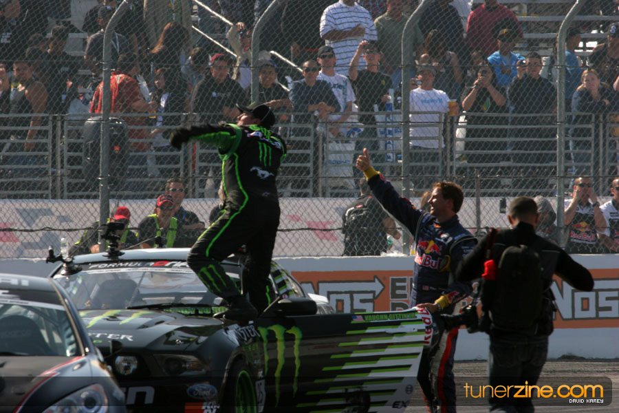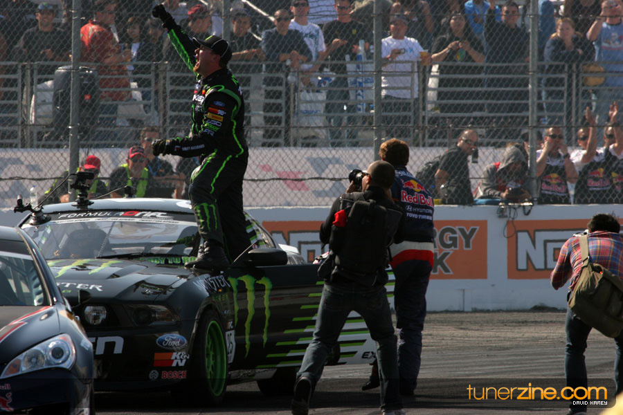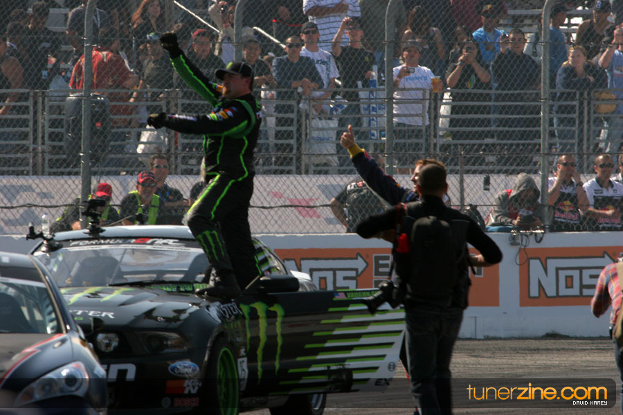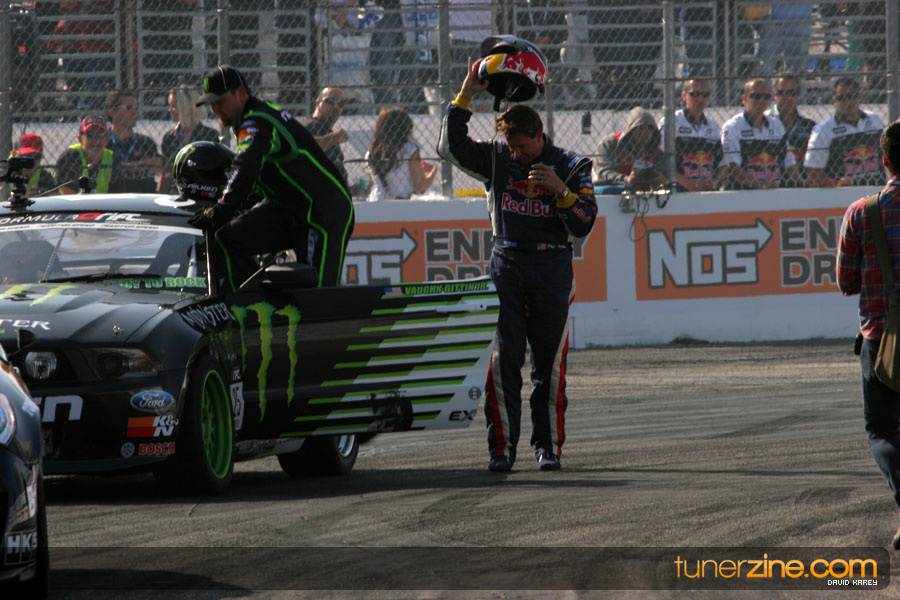 1. Gittin, Vaughn Monster Energy / Falken Tire Ford Mustang 108 Points 2. Millen, Rhys RMR / Red Bull Hyundai Genesis Coupe 100 Points 3. Foust, Tanner Rockstar Energy Scion TC 82 Points 4. Aasbo, Fredric Japan Auto / FSR Toyota Supra 72 Points 5. Tuerck, Ryan Mobil 1 / Maxxis Tire / Gardella Racing Pontiac Solstice 65 Points 6. Hubinette, Samuel SHR-Dodge / BF Goodrich Dodge Challenger 64 Points 7. Mordaunt, Patrick Brian Crower / PM Racing Nissan 350Z 62 Points 8. Deane, James Falken Tire Nissan S15 61.50 Points 9. McNamara, Darren Falken Tire Saturn Sky 60 Points 10. Forsberg, Chris NOS Energy Drink / CFR Nissan 350Z 56 Points 11. Miki, Ryuji APEXi / Hankook Tire Mazda RX-7 56 Points 12. Yoshihara, Daijiro America’s Tire / Falken Tire Nissan S13 56 Points 13. Brakohiapa, Tony Cooper Tire / Sam’s Autoboy Ford Mustang 54.50 Points 14. Verdier, Stephan Royal Purple / Crawford Performace / Cooper / Subaru STI 54.50 Points 15. Wang, Forrest BF Goodrich / K&N Infiniti G35 54.50 Points 16. Takatori, Michihiro BF Goodrich / Exedy Nissan S15 54.25 Points