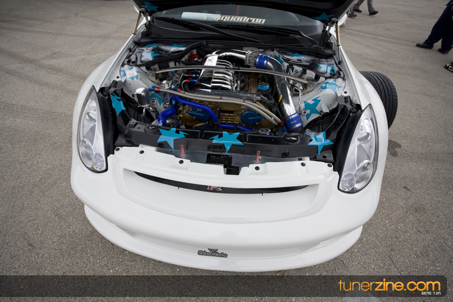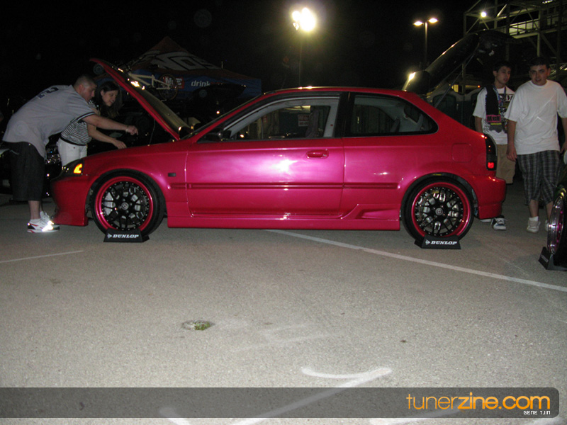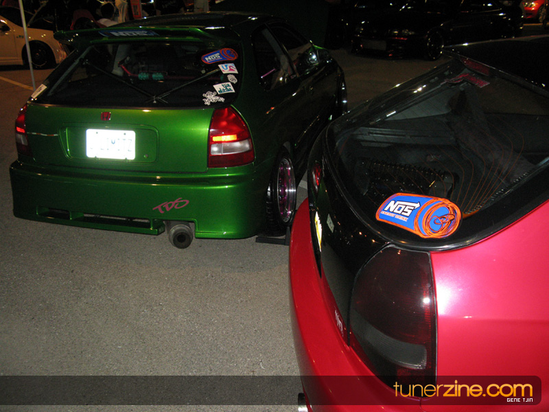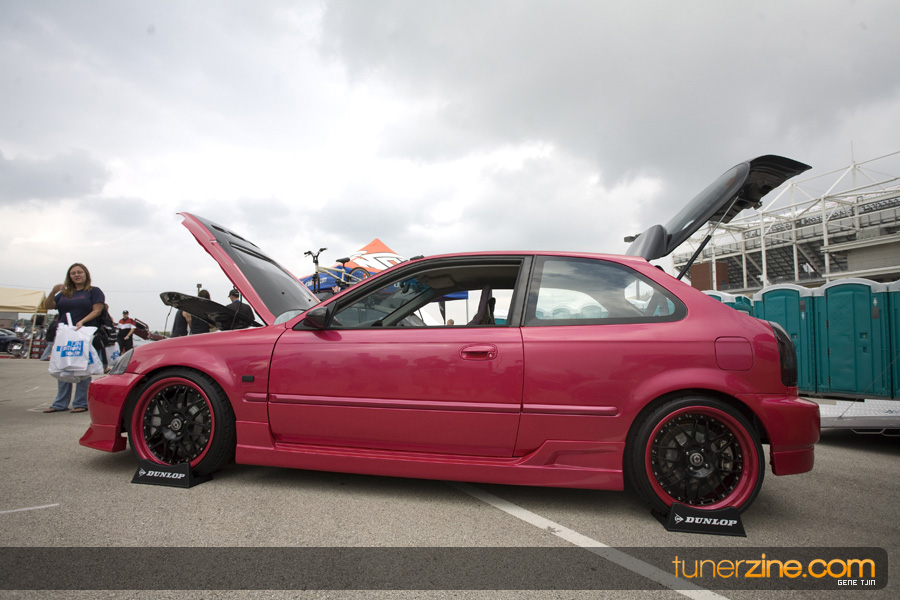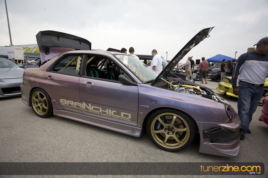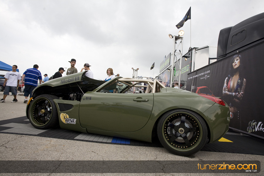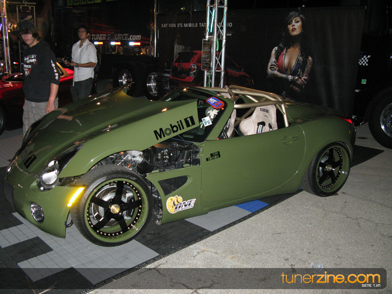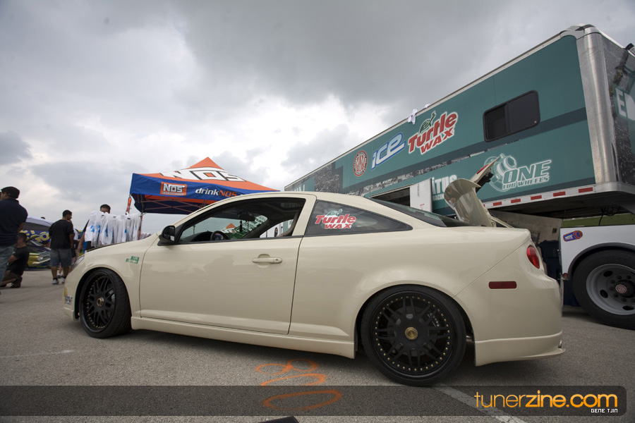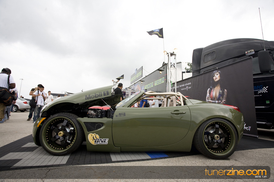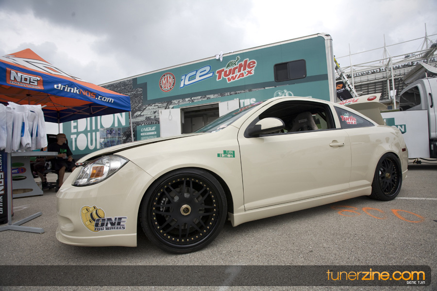 The Tjin Edition rig was located right by the front entrance and featured six of the hottest vehicles in their massive 100×30 booth. Located in the Tjin Edition booth was world famous ICE Nissan Skyline R34 Sedan, the Turtle Wax Chevy Cobalt SS, Dave Lightner’s RHD Civic HB, Justin Lim’s Civic HB, and the ACV Subaru and Saab.