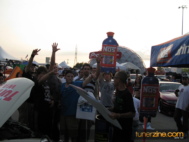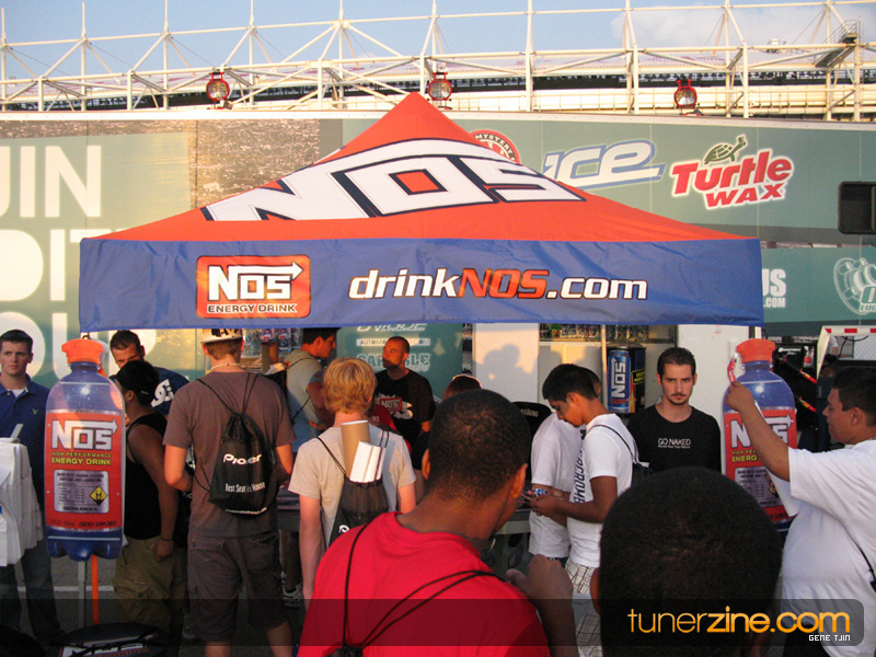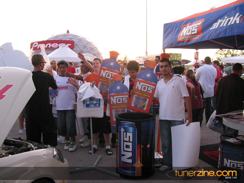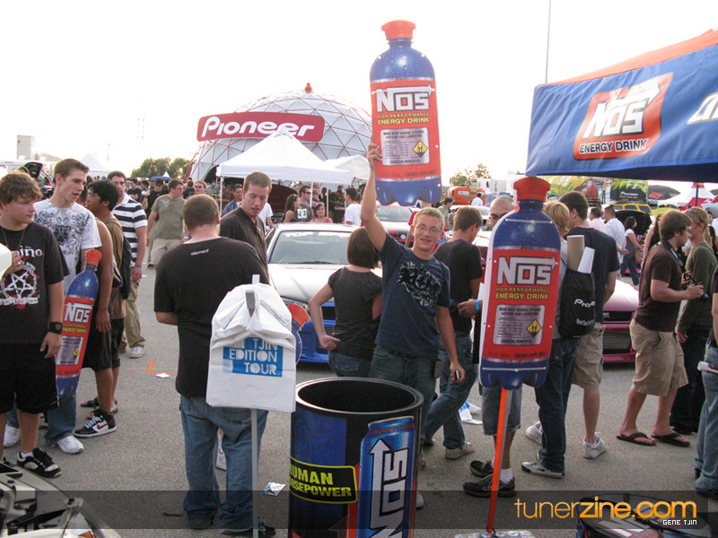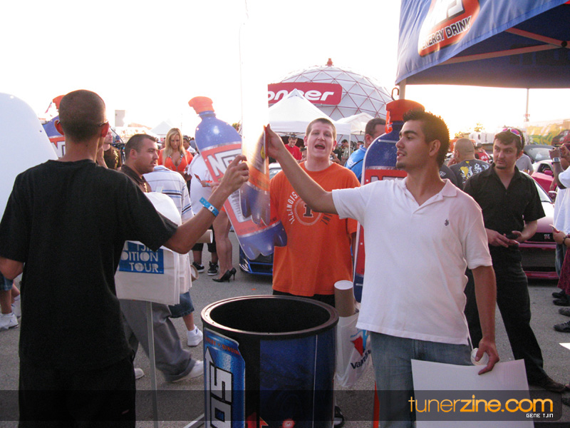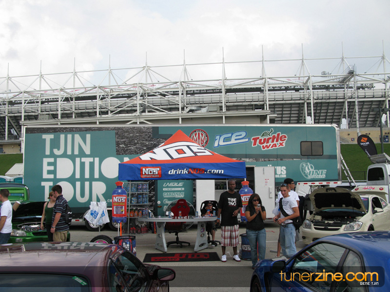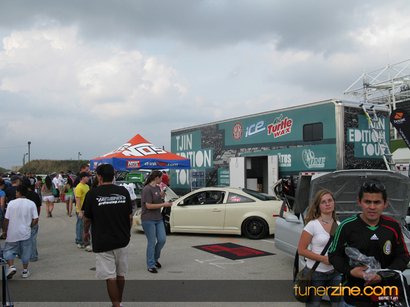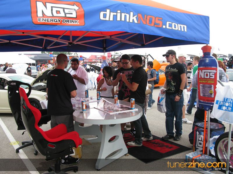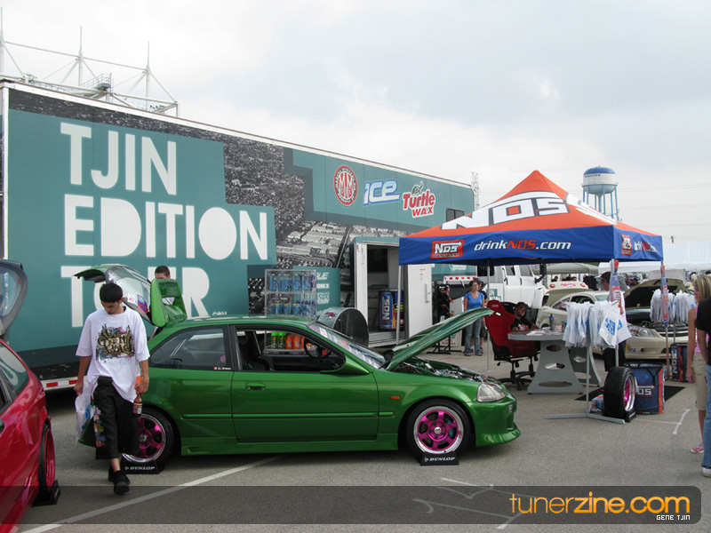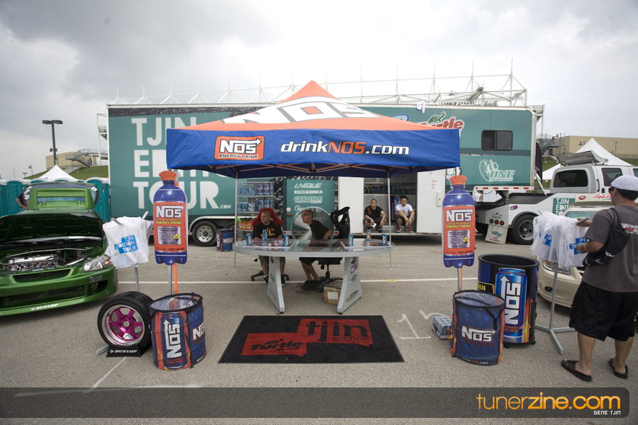 With a prime spot for their mega rig right by the front entrance of the show, the Tjin Edition booth was the place to be throughout the show. Fans, spectators, and fellow car competitors and crew stopped by to the booth to check out some of the hottest cars and to get their free Turtle Wax and ICE samples, ice-cold NOS Energy Drinks, and NOS and Function and Form t-shirts.