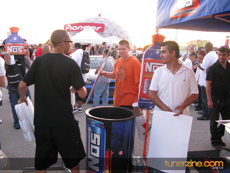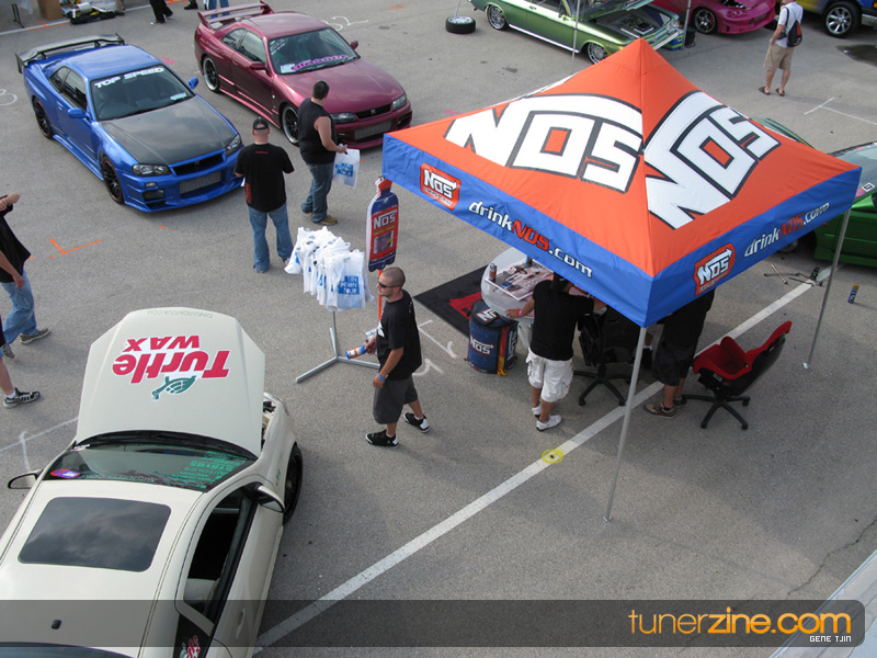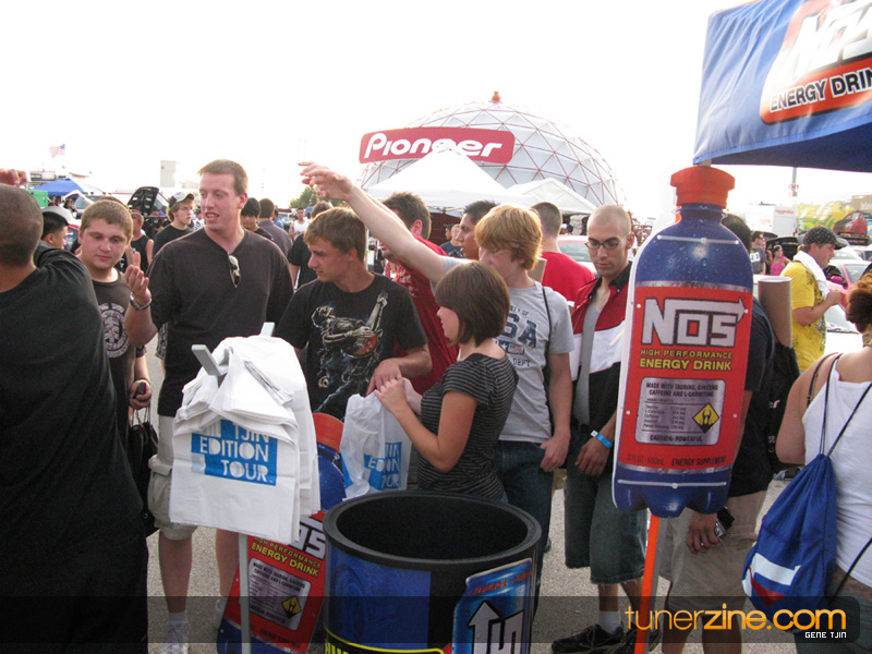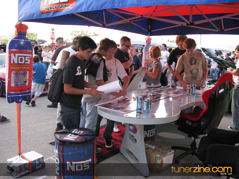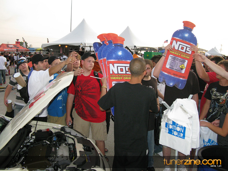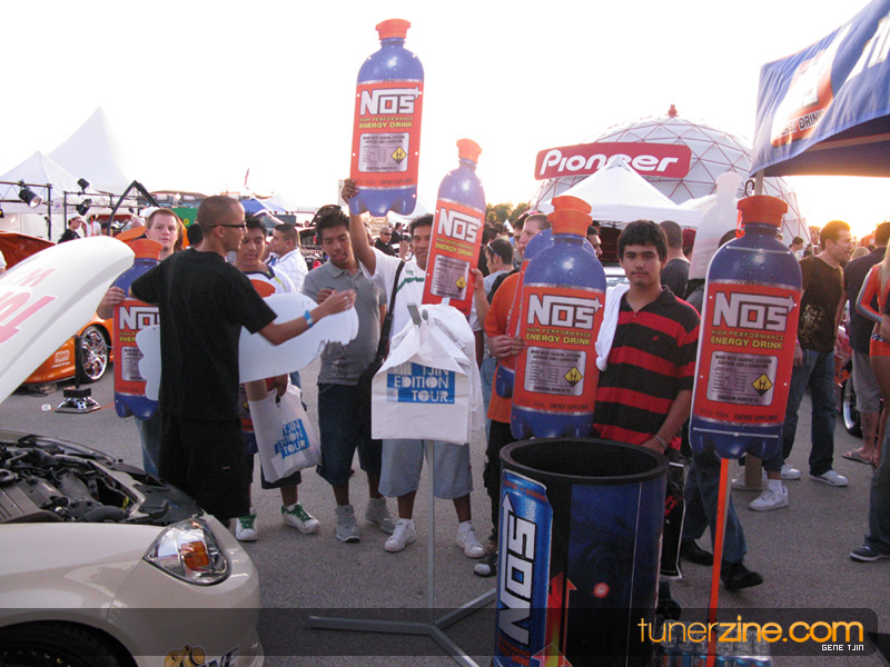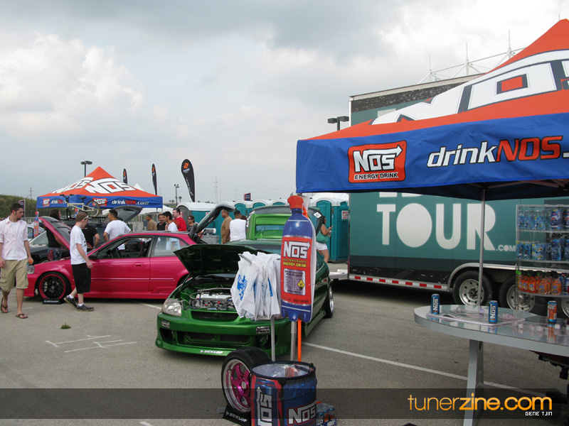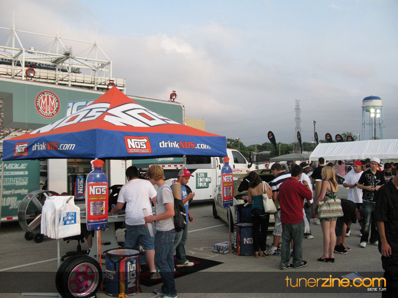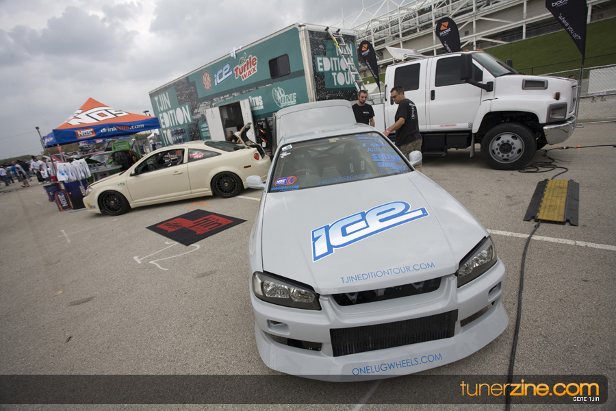 With a prime spot for their mega rig right by the front entrance of the show, the Tjin Edition booth was the place to be throughout the show. Fans, spectators, and fellow car competitors and crew stopped by to the booth to check out some of the hottest cars and to get their free Turtle Wax and ICE samples, ice-cold NOS Energy Drinks, and NOS and Function and Form t-shirts.
