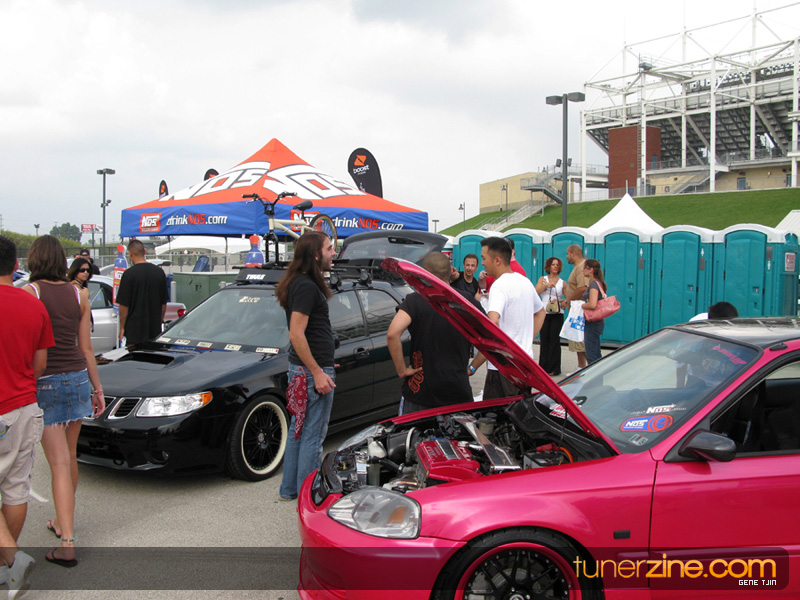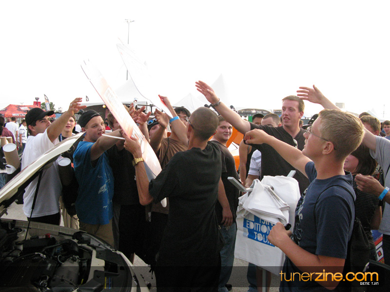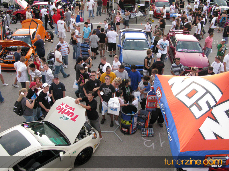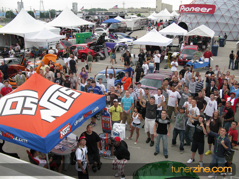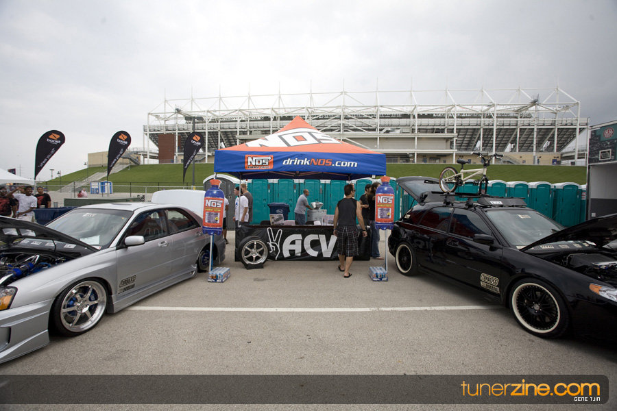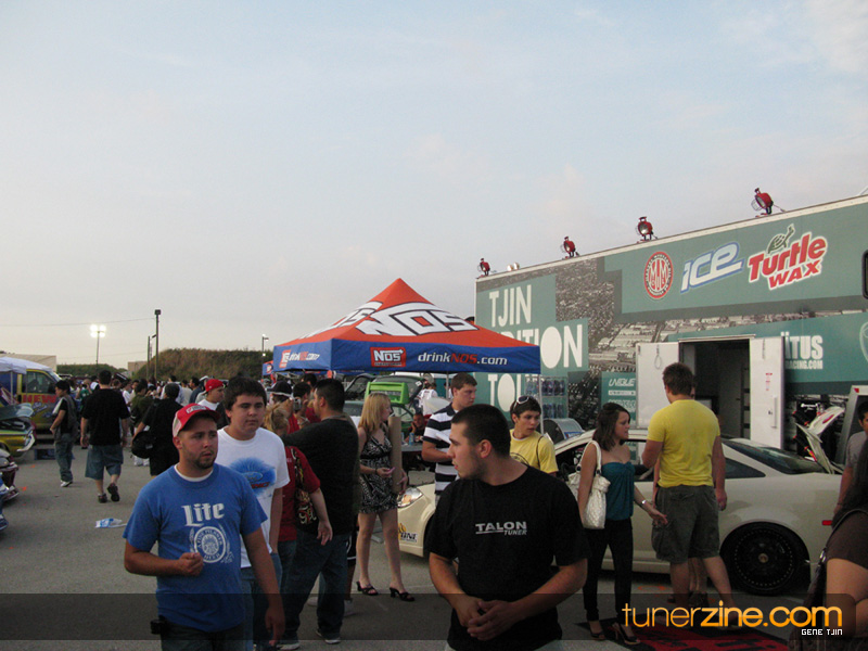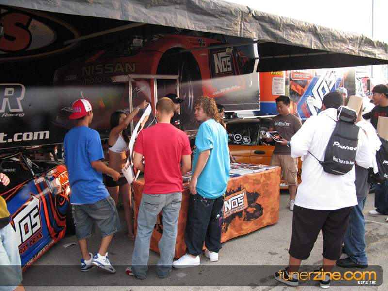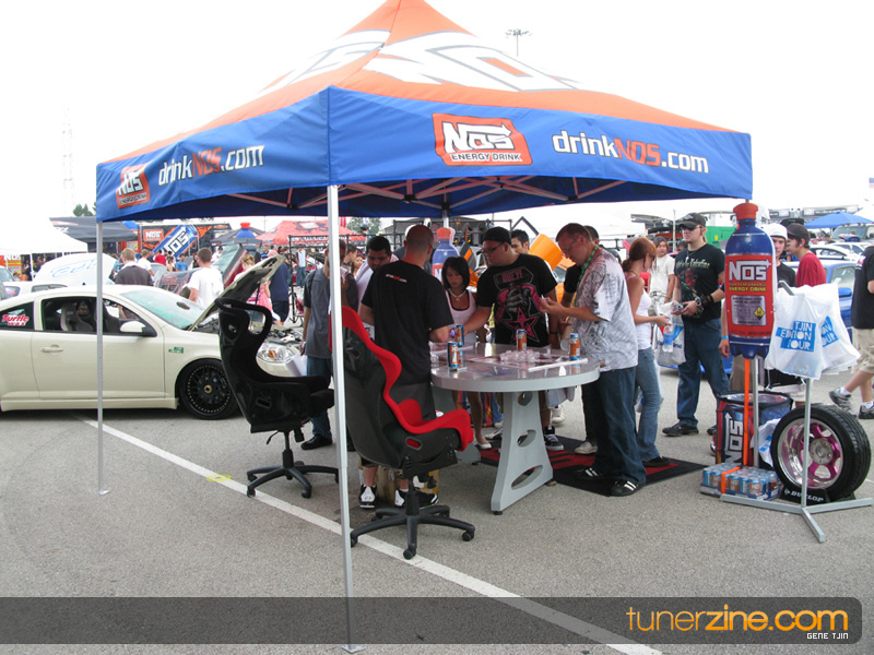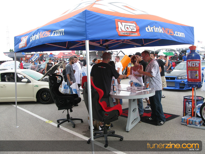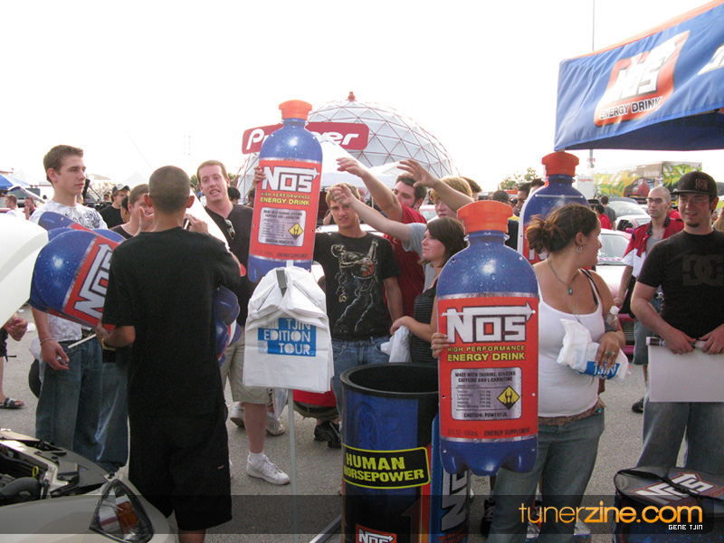 With a prime spot for their mega rig right by the front entrance of the show, the Tjin Edition booth was the place to be throughout the show. Fans, spectators, and fellow car competitors and crew stopped by to the booth to check out some of the hottest cars and to get their free Turtle Wax and ICE samples, ice-cold NOS Energy Drinks, and NOS and Function and Form t-shirts.