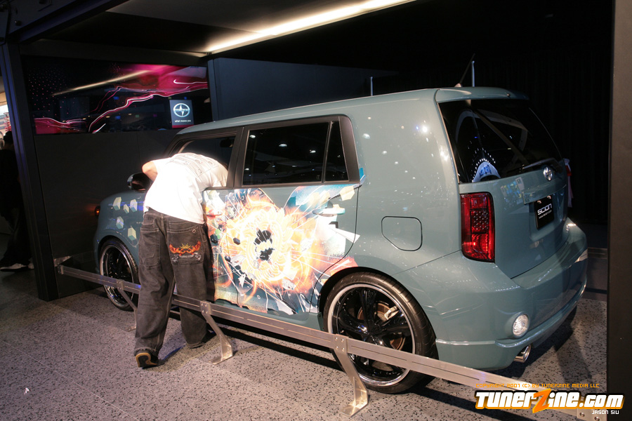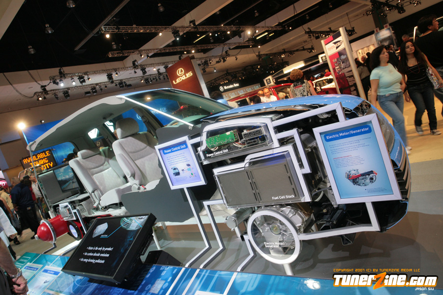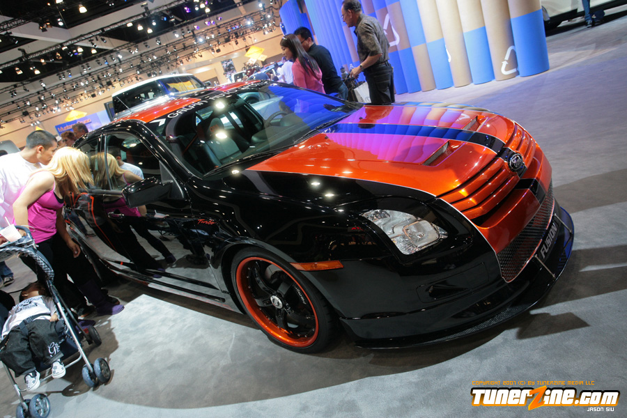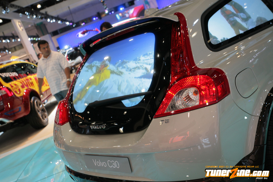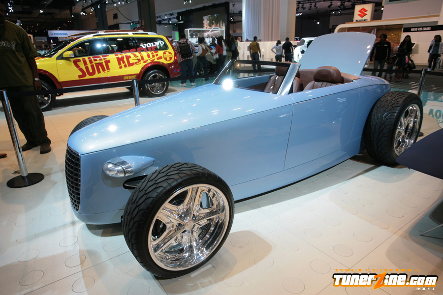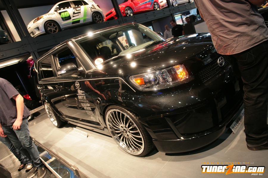 On the domestic side, the all new Camaro was on display but in convertible form! This attracted the crowds as the new Camaro not only looks bad ass, but the possibility of a convertible model makes it even more appealing. Best of all, it’s coming stock with 21’s in the front and 22’s in the rear. Wait… we hope that it’s coming! Also in the Chevy booth was a killer Corvette production courtesy of Jay Leno. This was one of the most beautiful Corvettes we’ve ever set our eyes on. Chevy had several concepts on display and they were all really neat to look at. The biggest noise in the Chevy booth was the Volt concept vehicle. They were claiming that it’ll be able to commute 40 miles a day without using an ounce on gas! We can hear it now… the excuses of missing work because you forgot to plug in your car overnight.
