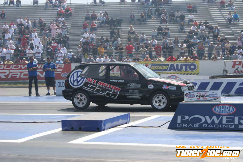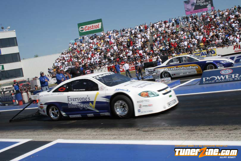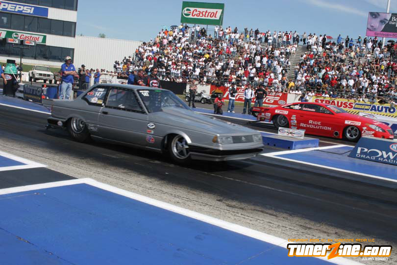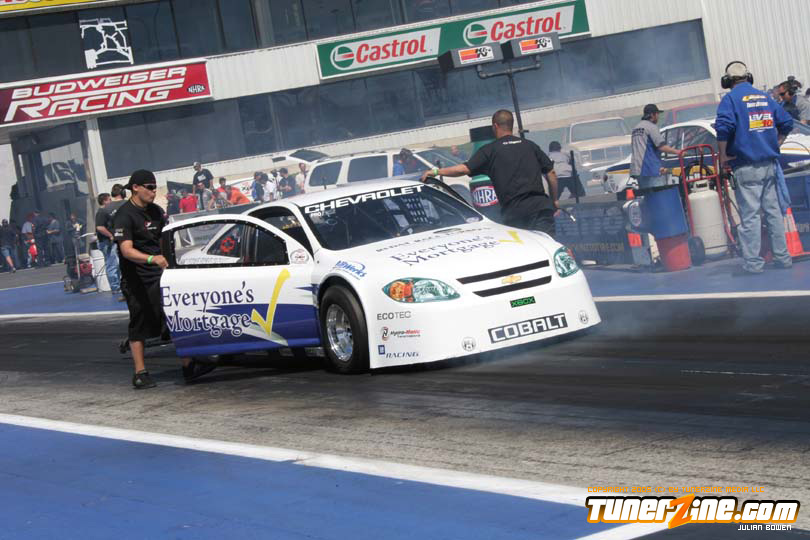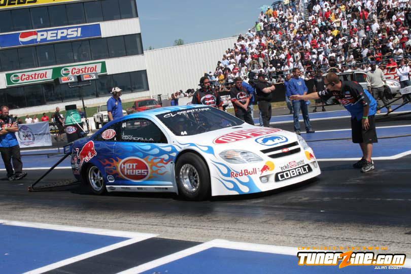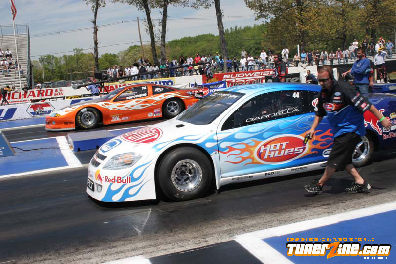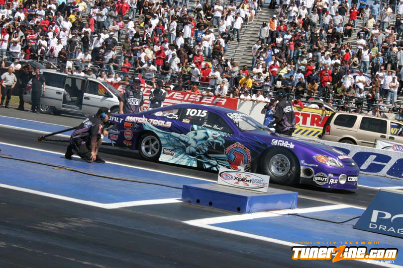 Hunt (Crofton, Md.), driving his Chevy Cobalt made a clean sweep of the Pro FWD class by being top qualifier, record setter, and winner. Hunt, who won his first Wally last year at Englishtown, won on a holeshot over points leader Ed Bergenholtz. Bergenholtz could never overcome Hunt who finished with a time of 7.52 seconds at 194.63.