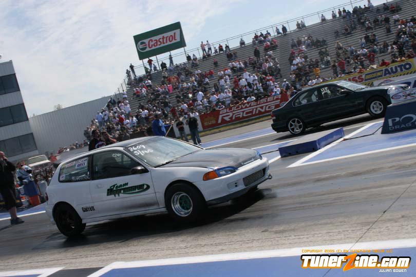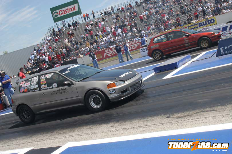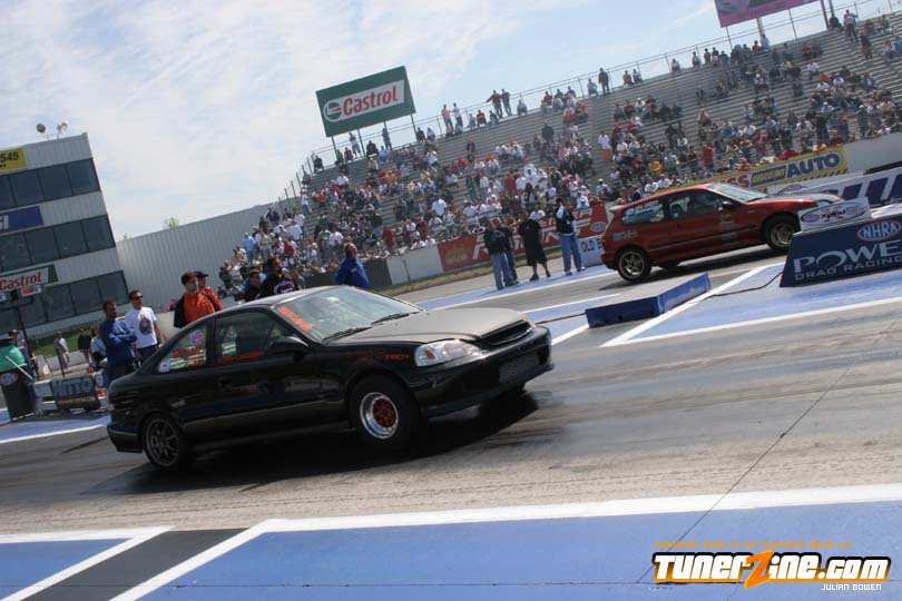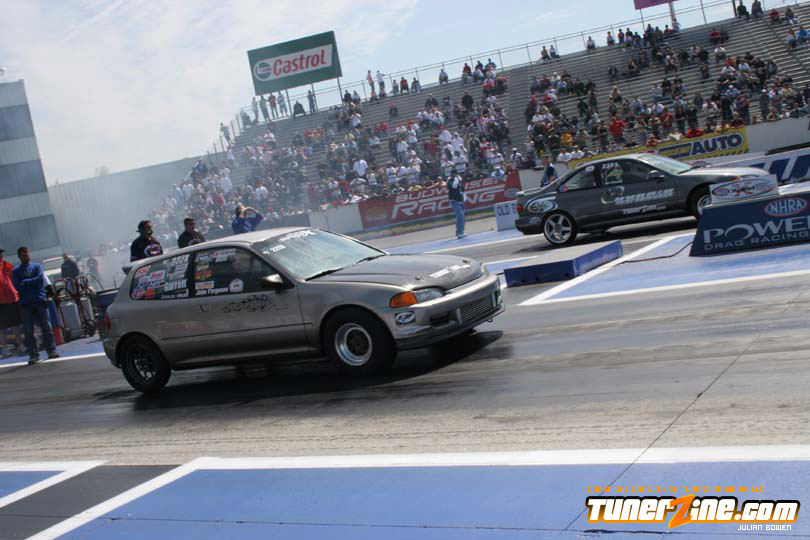 Nelson Prayoonto Prayoonto (Honda Tuning All Motor), from Springfield, Va., won his first ever race by defeating Jeremy Lookofsky. He utilized his holeshot to narrowly defeat Lookofsky who had a quicker speed and time. Prayoonto, driving his Clutchmasters Honda Insight, crossed the finish line with a time of 9.73 seconds at 139.67 mph.
