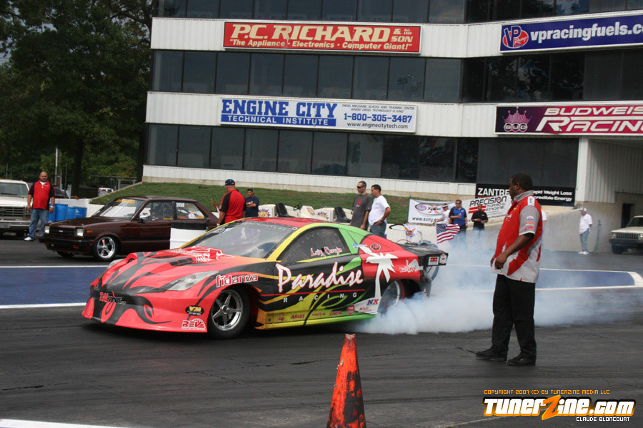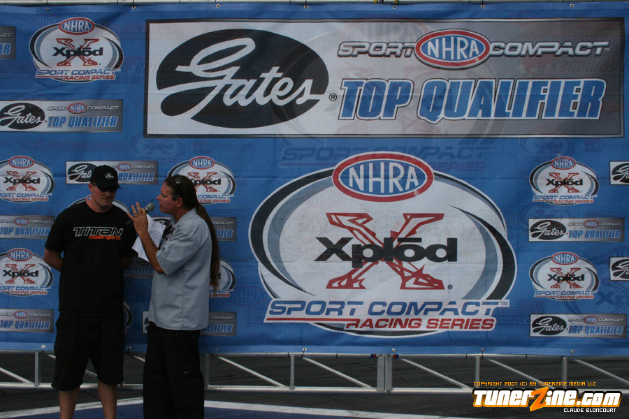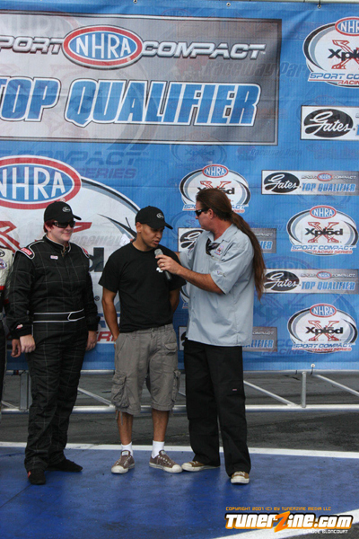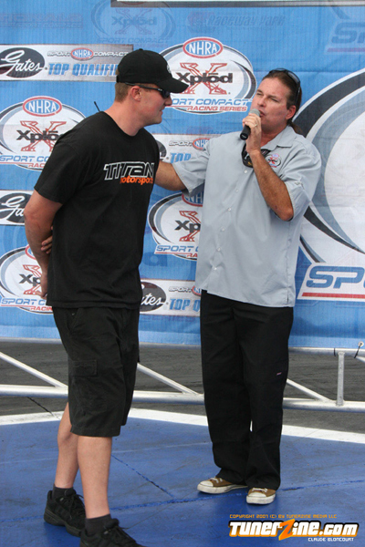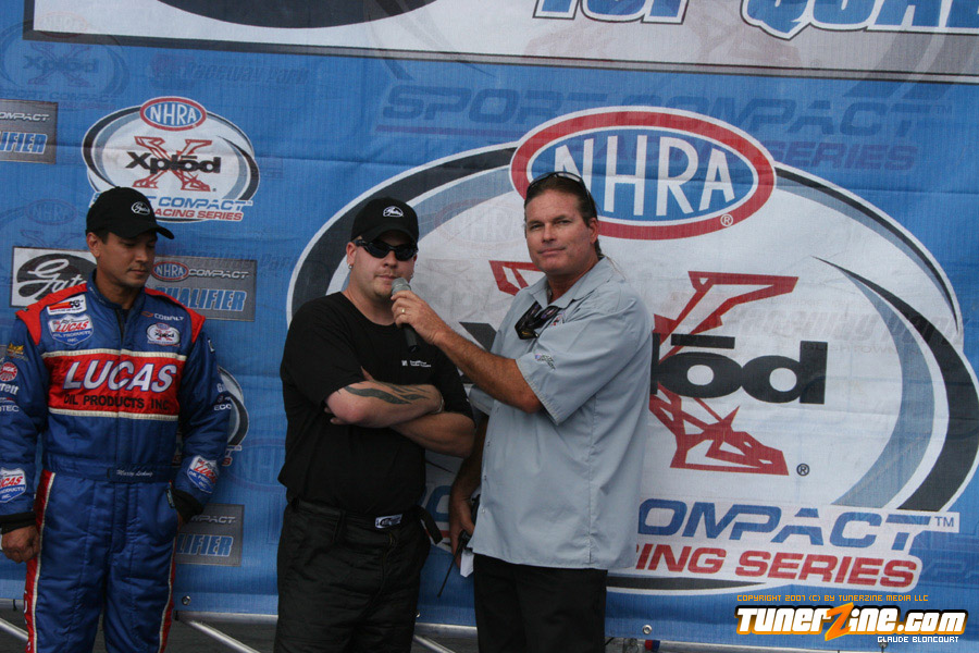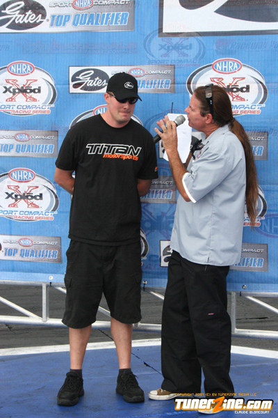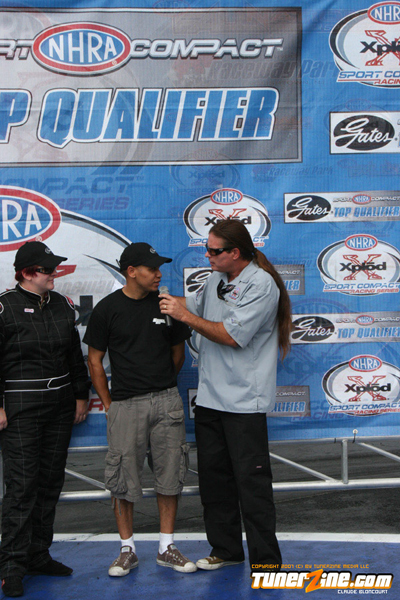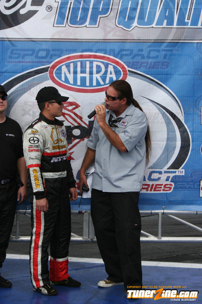 Tran kept his hopes alive for a championship by defeating his Hot Rod rival Stephanie Eggum. His Q Racing Scion tC powered him to a time 7.94 seconds at 180.00 mph. Eggum broke the transmission and was unable to make the run.