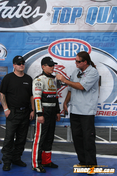 “I learned something today,” said Armendariz. “I have been stressing out and it just isn’t worth it. It wasn’t a pretty win, but I did what I set out to do. My sponsors have stuck with us. I have a bunch of sponsors to thank like Scion, AEM, Brisk USA, Calico Coatings, CP Pistons, Drive Shaft Shop, ERL Performance, EMCO, Goodyear Racing, Royal Purple, SCE Gaskets, Steen Chassis, TWM Induction, Web Camshafts and Vance & Hines Motorsports. We’ll roll with the momentum and see where it takes us.”