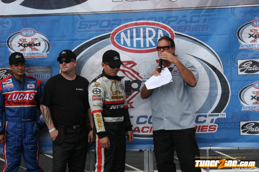 The professional winners were Brad Personett (Pro RWD) Leslie Armendariz (Honda Tuning Magazine All Motor), Gary Gardella (Pro FWD), Rafael Fuentes (Modified) and Kenny Tran (Hot Rod).