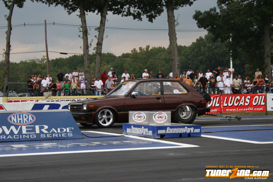 There was a new winner in Modified. Rafael Fuentes from Corozal, Puerto Rico, ran hard all weekend and defeated tough cars to earn his first career Wally trophy. He ran unopposed in the final round. His opponent, Brent Rau, had engine problems in the previous round and was unable to fix it before the final. Fuentes easily drove his Starlet to the finish line in 8.51 seconds at 147.55 mph.