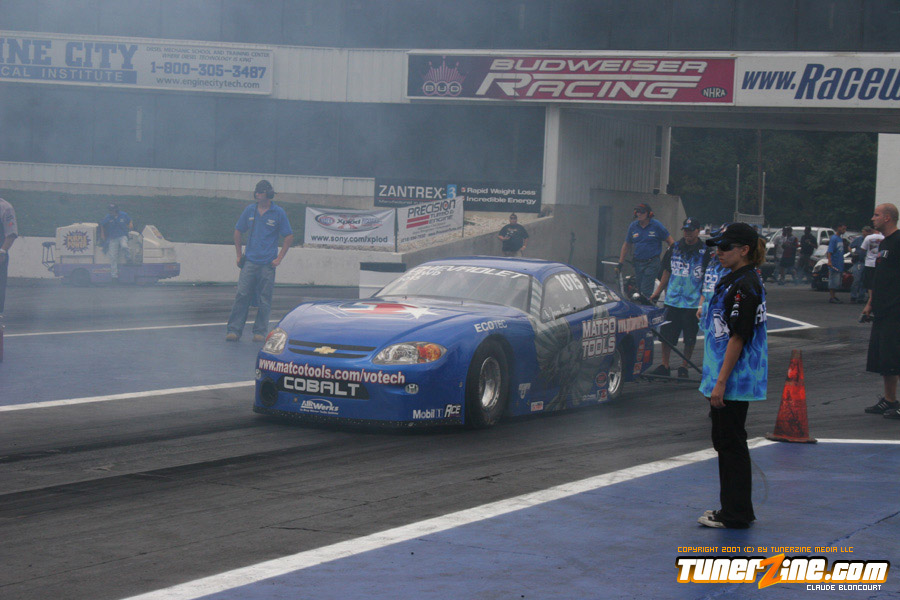 Gardella has been the driver to beat in Pro FWD in the second half of the season. He is driving like another Chevy Cobalt driver by the name of Dave Connolly on the POWERade Series. On the same day that Connolly earned his fifth win in a row, Gardella drove to his fourth win in a row (Two Indianapolis’, Dallas and Englishtown). By qualifying number two he came up one point short of the maximum number of points available at an event (138). He set the record at 7.15 seconds.