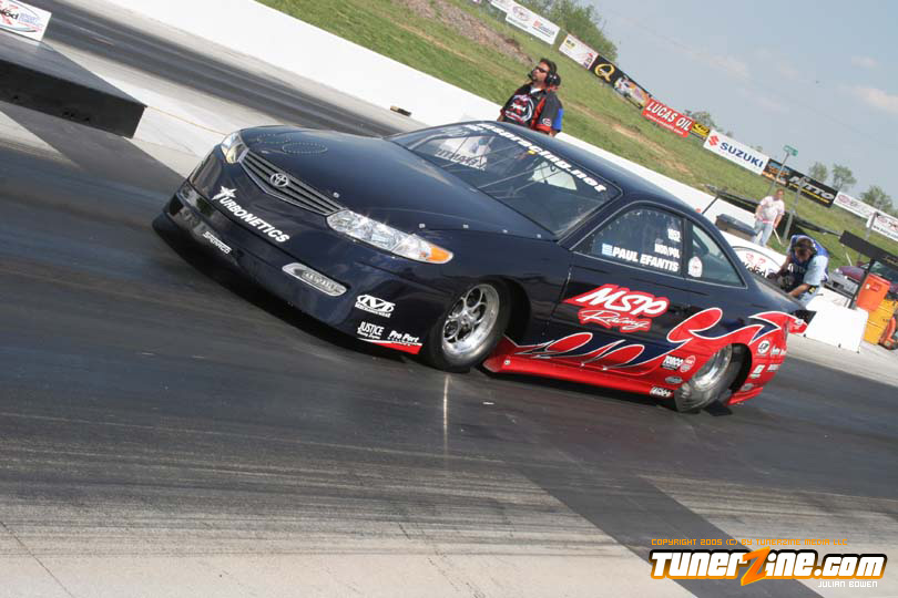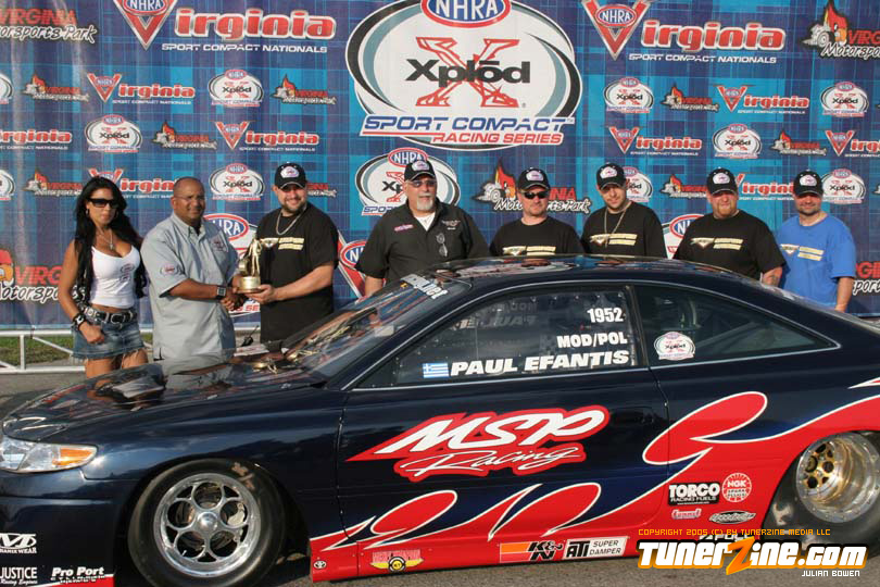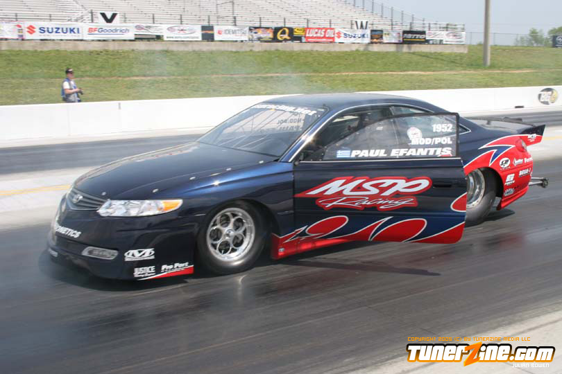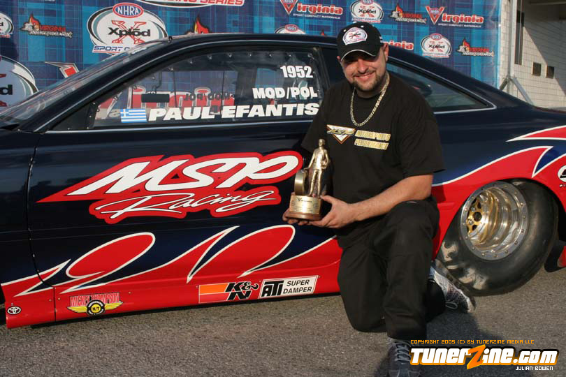Paul Efantis The other record setter of the day was Paul Efantis in the Modified class. He set both ends of the national record. In the final Efantis, in which he earned his twelth Wally, drove his Solara to a record time of 7.60 seconds, to beat Mike Lowe. Lowe, driving his Mazda, had the holeshot against Efantis, but Efantis reeled him in with the class fastest time of 180.74 mph.